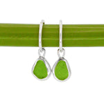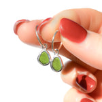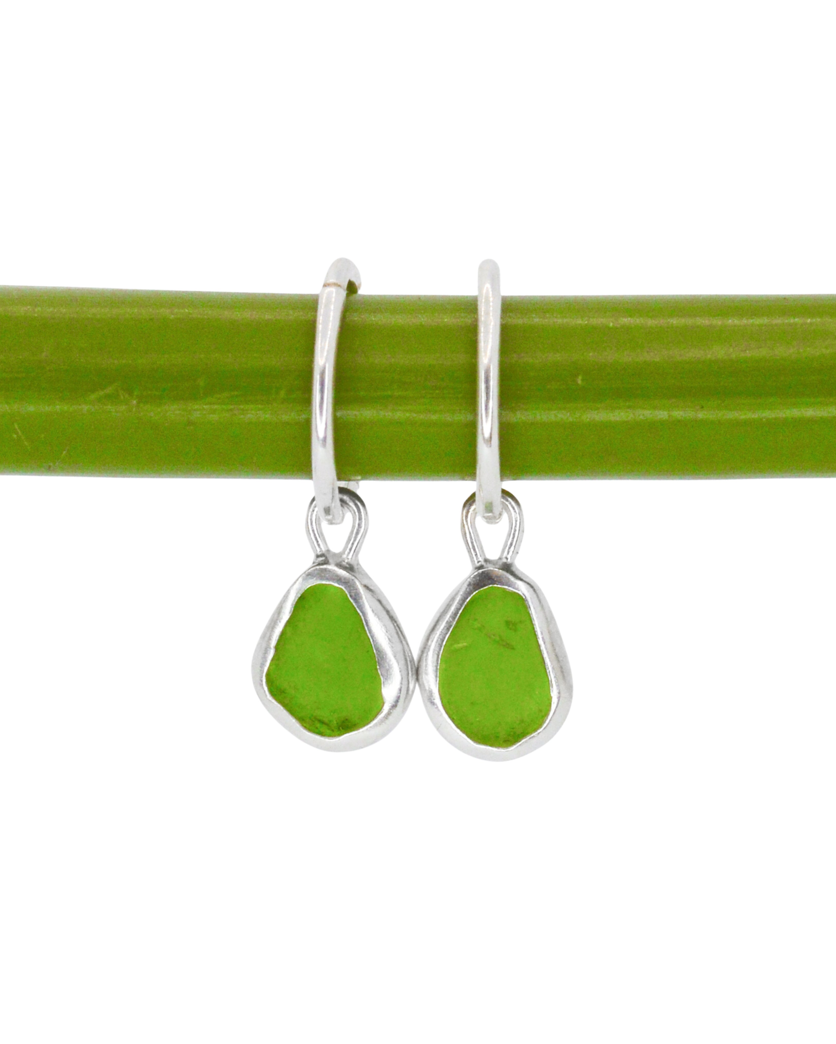 Green Sea Glass Hoops - Handmade from 925 sterling silver