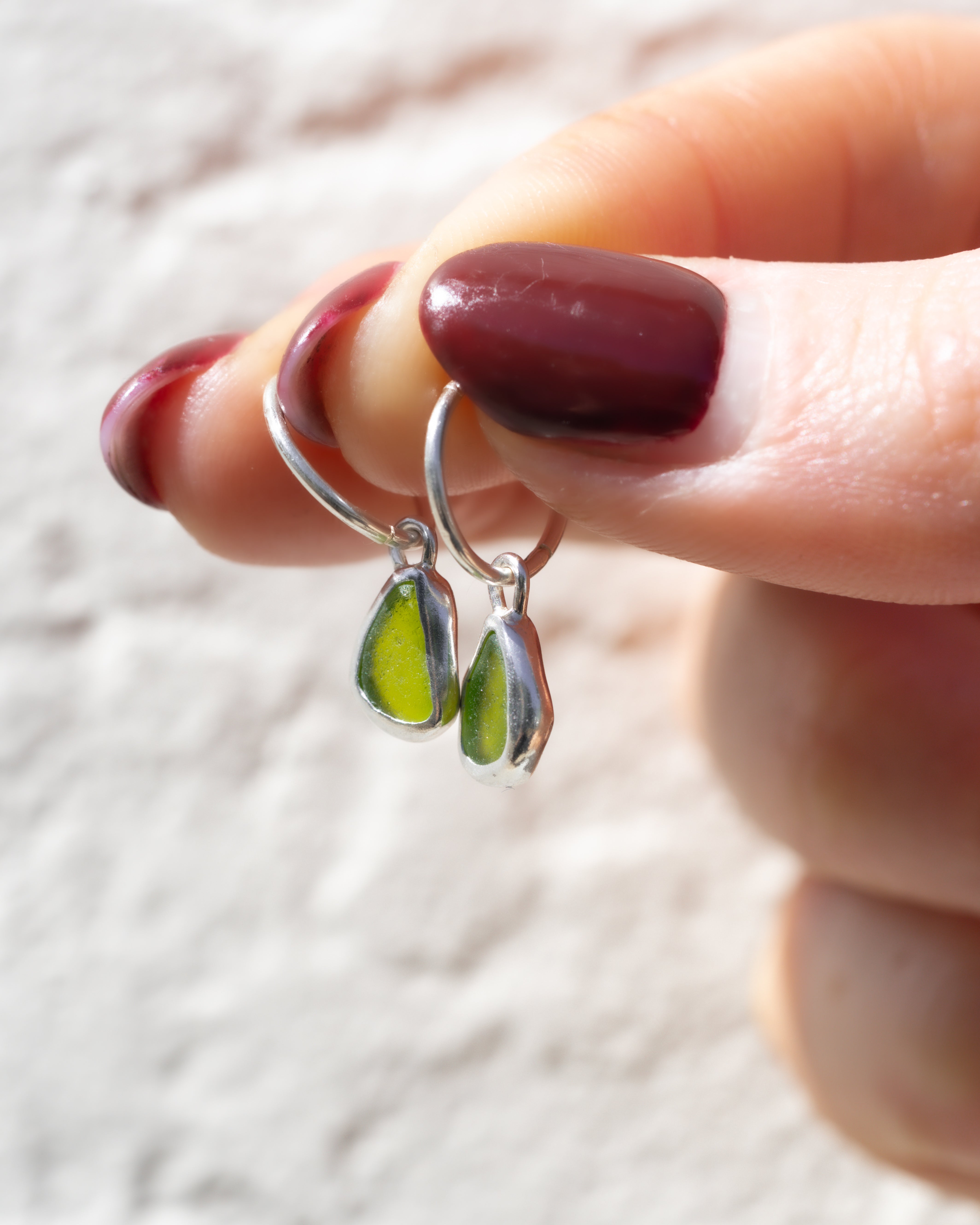 Each piece of sea glass jewellery is naturally shaped by the ocean and carefully set by hand. Every piece of glass has its own unique shape, tone and texture, making each design truly one of a kind.