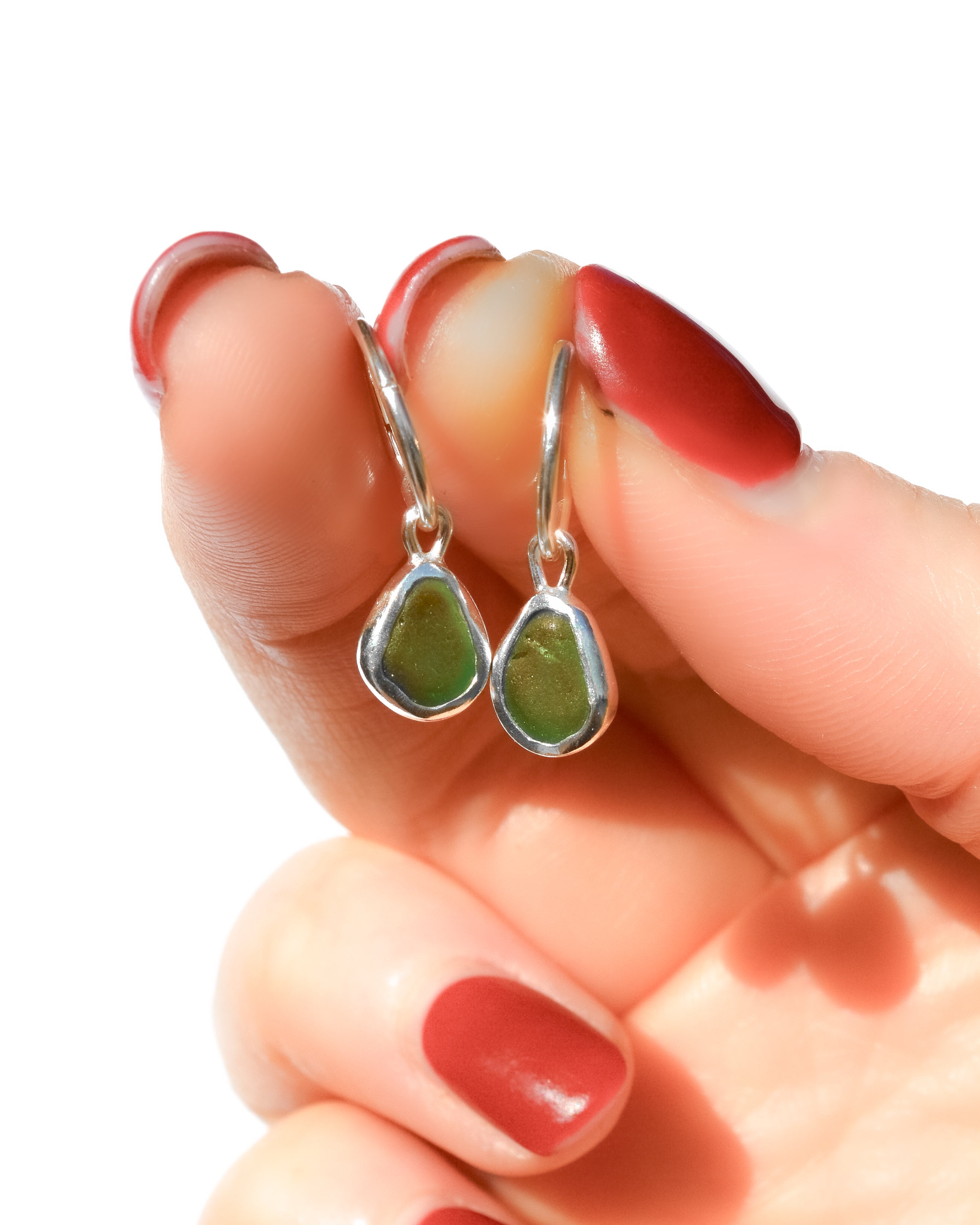 Sea Glass Jewellery (Closed Back Designs) - Closed back sea glass pieces should be kept out of water whenever possible. As the glass is transparent, moisture may affect the colouring due to the silver underneath, mainly the lighter shades. To help preserve their beauty, we recommend removing them before showering or swimming.