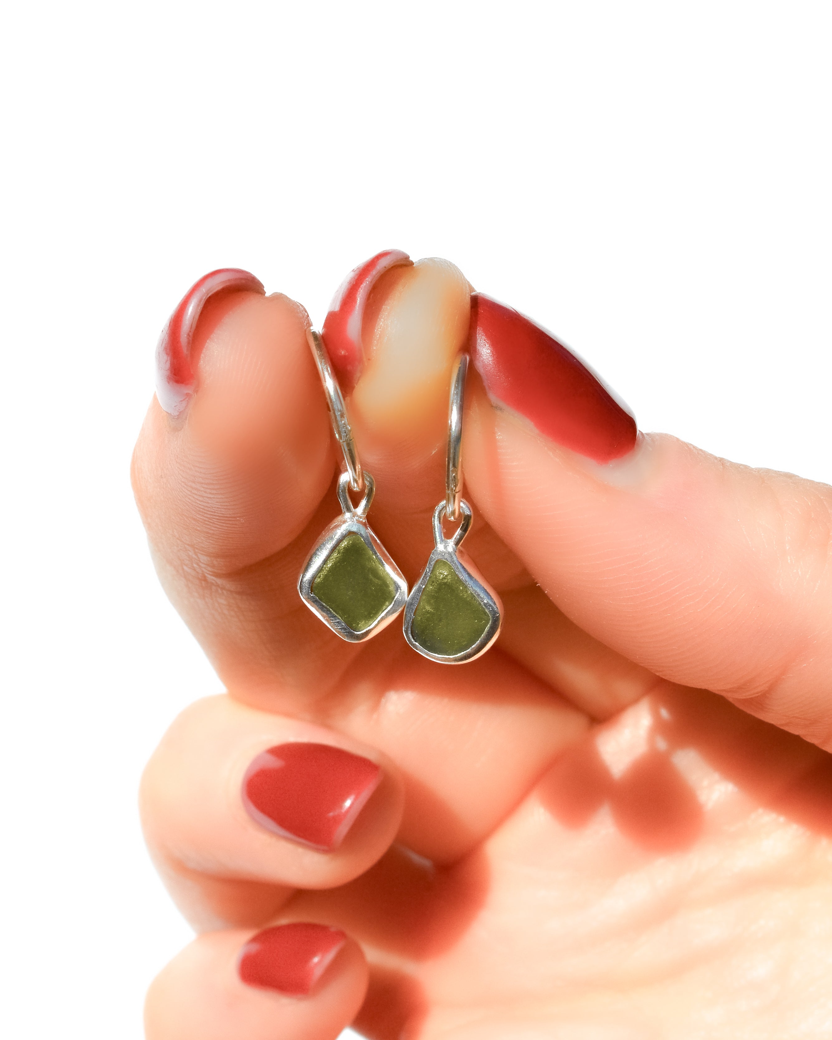 Sea Glass Jewellery (Closed Back Designs) - Closed back sea glass pieces should be kept out of water whenever possible. As the glass is transparent, moisture may affect the colouring due to the silver underneath, mainly the lighter shades. To help preserve their beauty, we recommend removing them before showering or swimming.