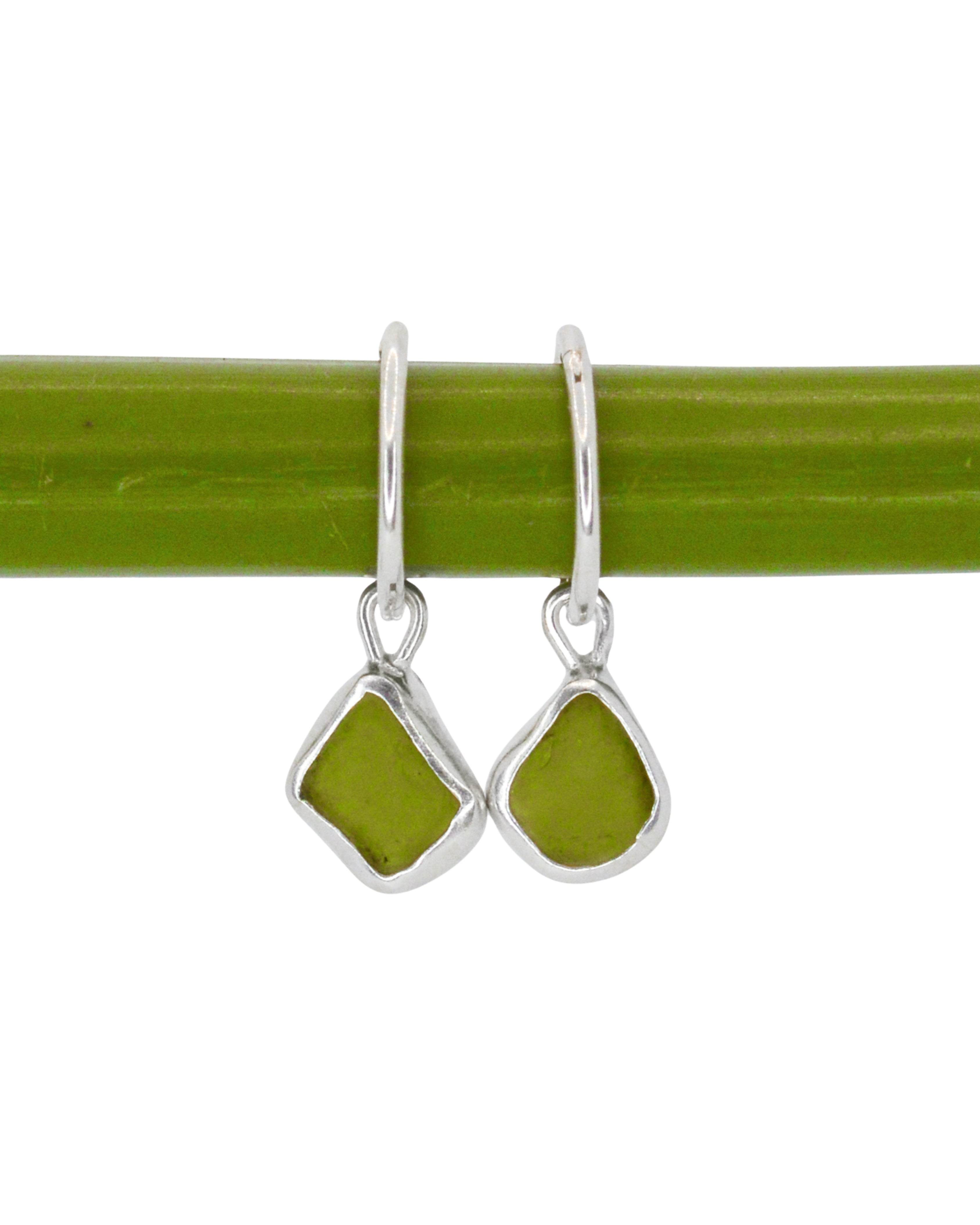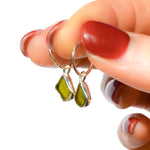 Green Sea Glass Hoops - Handmade from 925 sterling silver