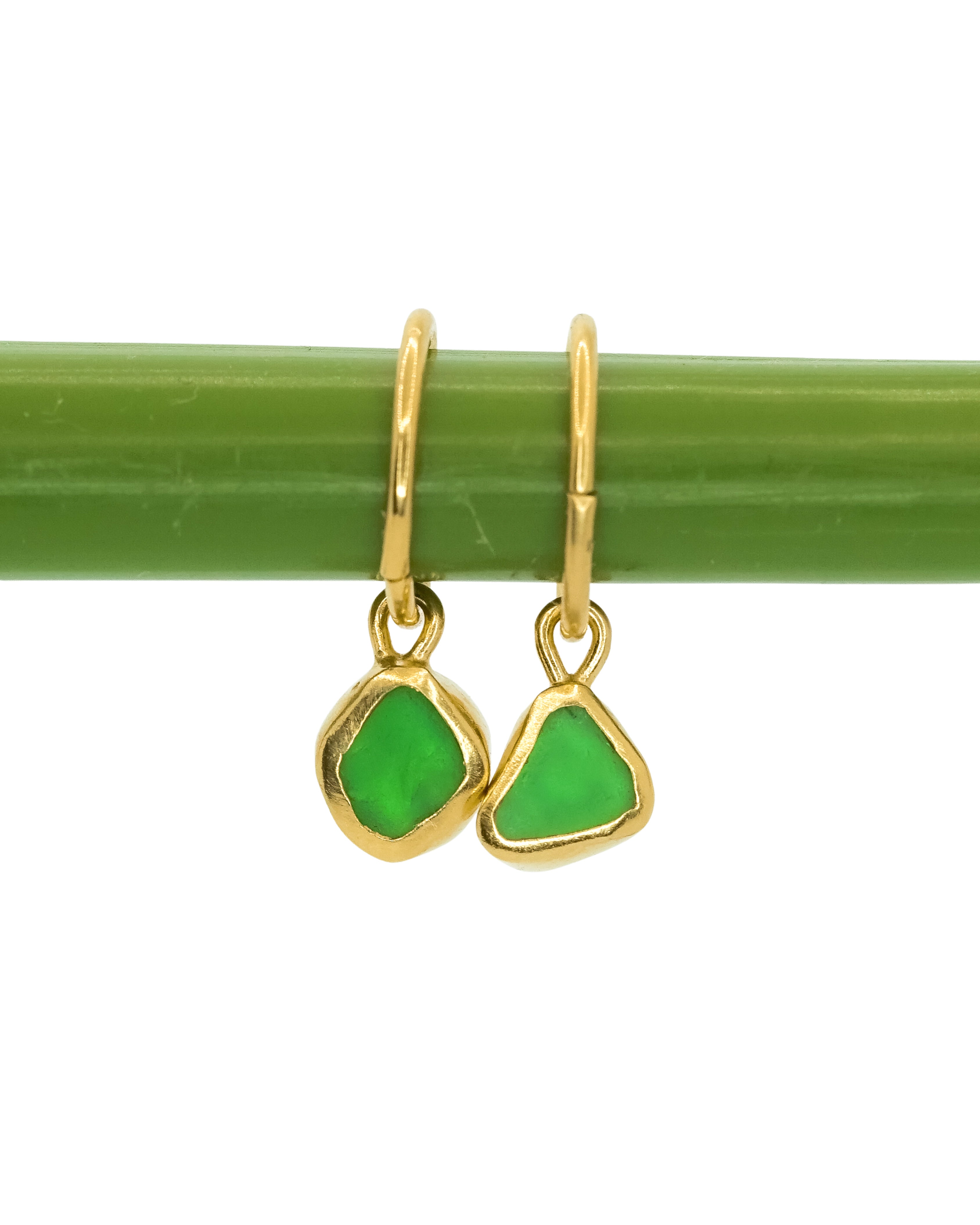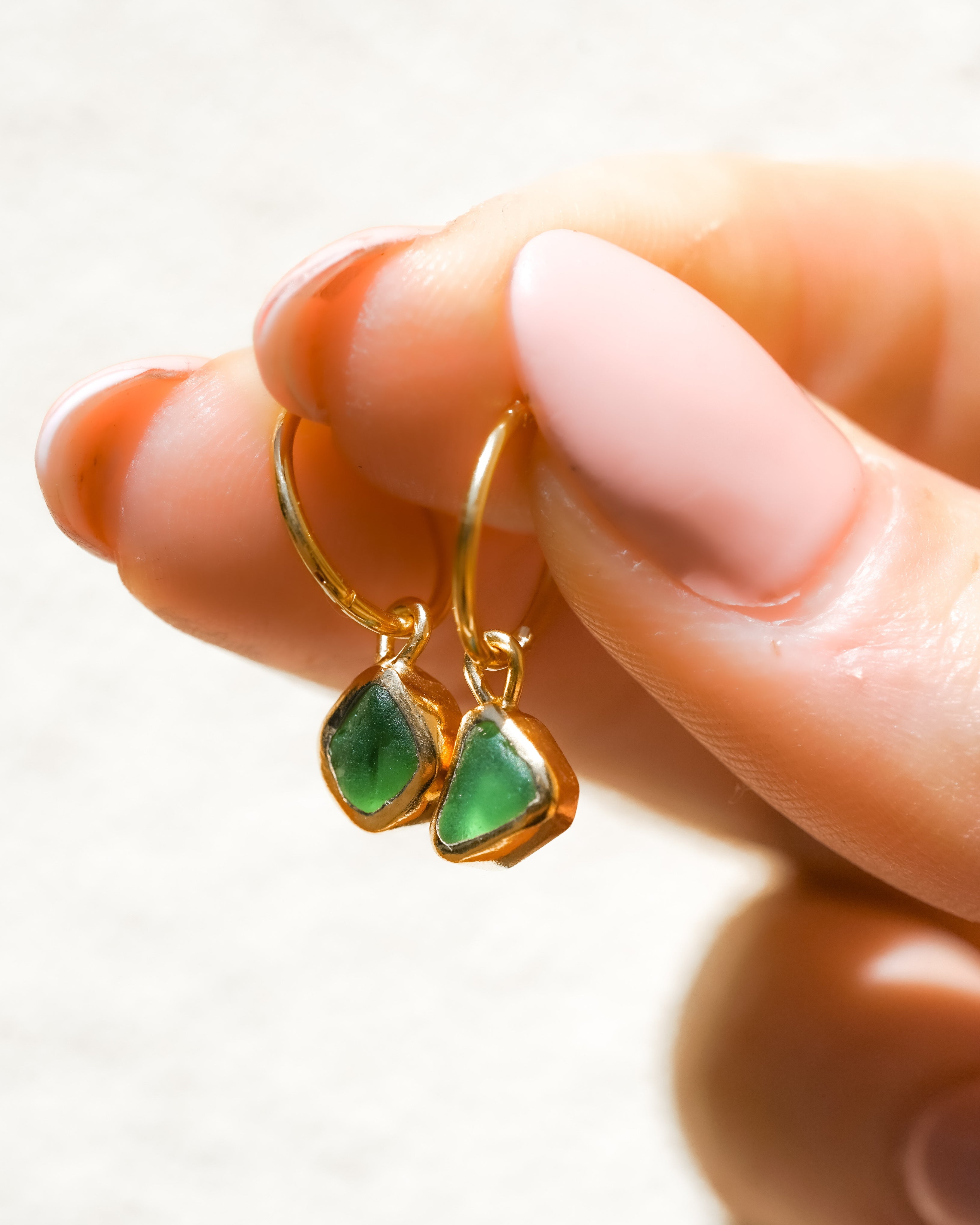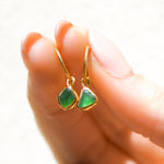 Green Sea Glass Hoops - Gold Vermeil