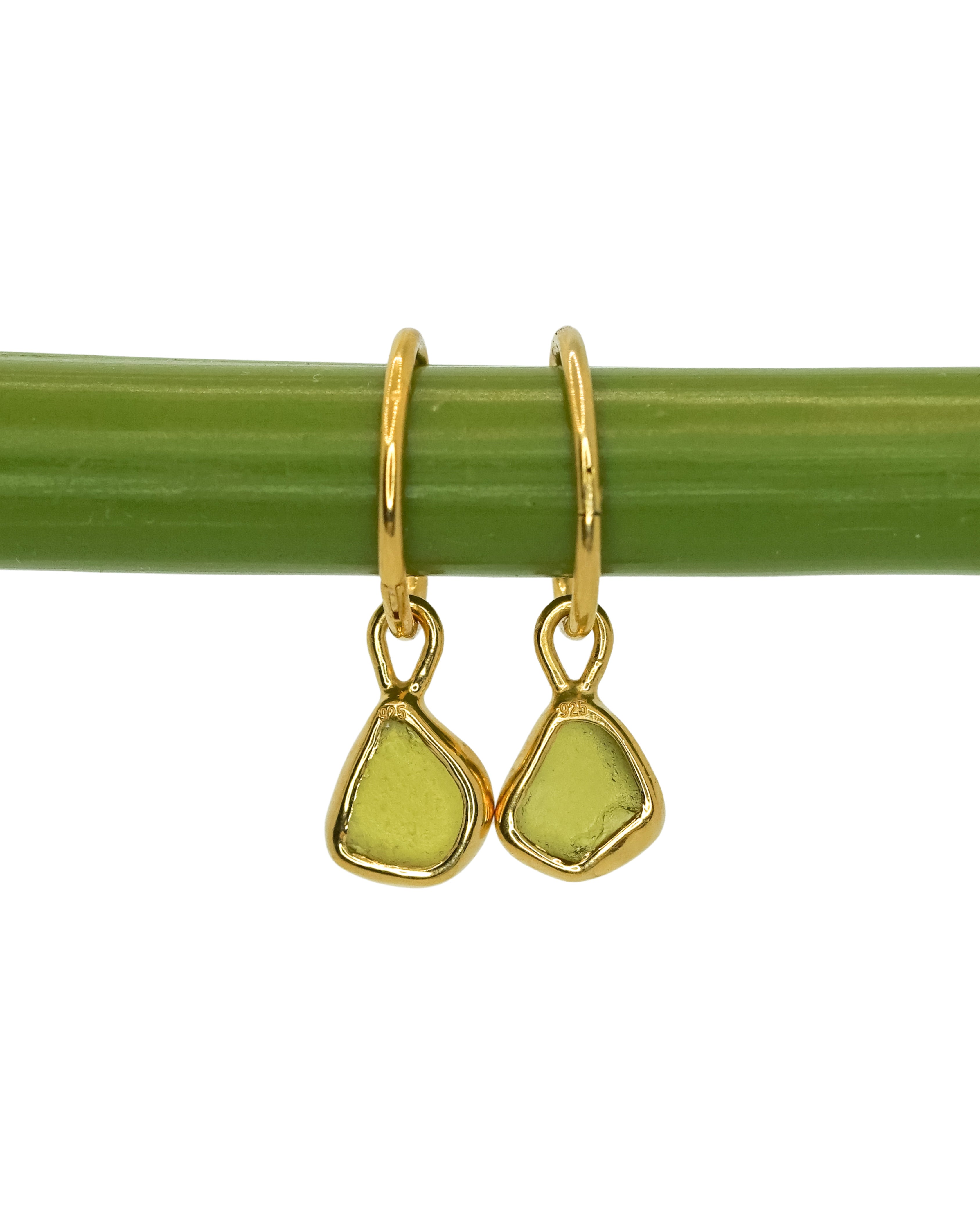 Green Sea Glass Hoops - Handmade from 925 Sterling Silver plated with a 10 micron thick and hard layer of 24K (Gold Vermeil)