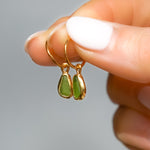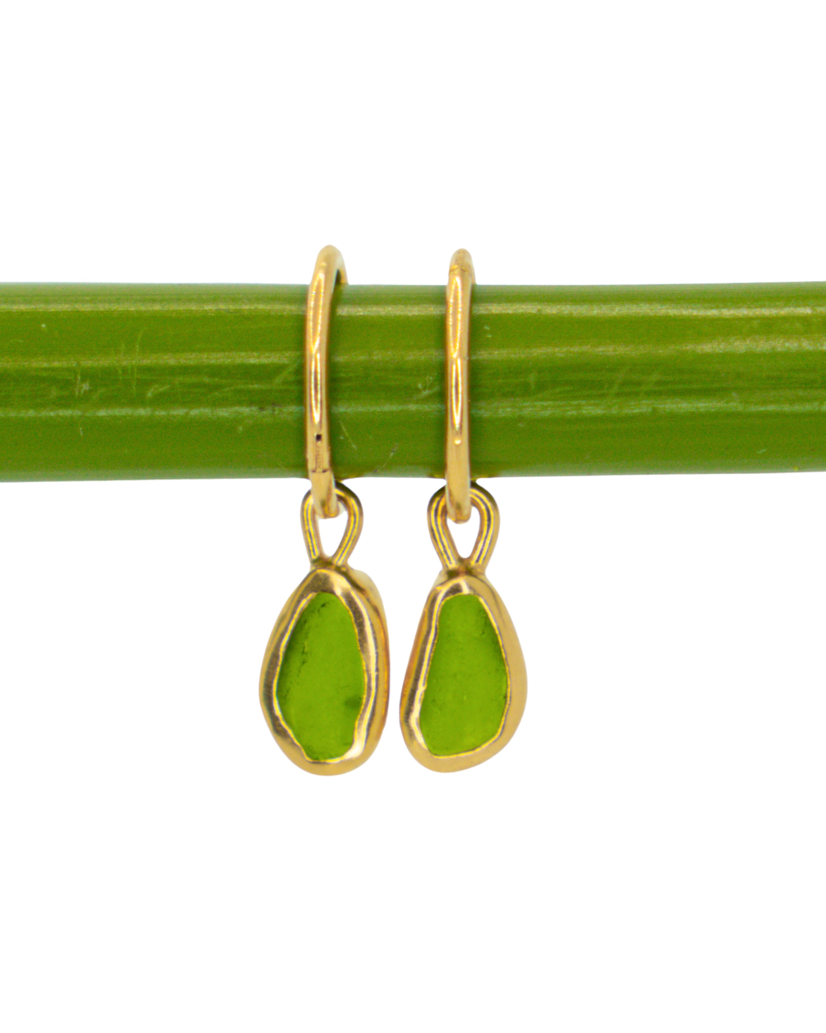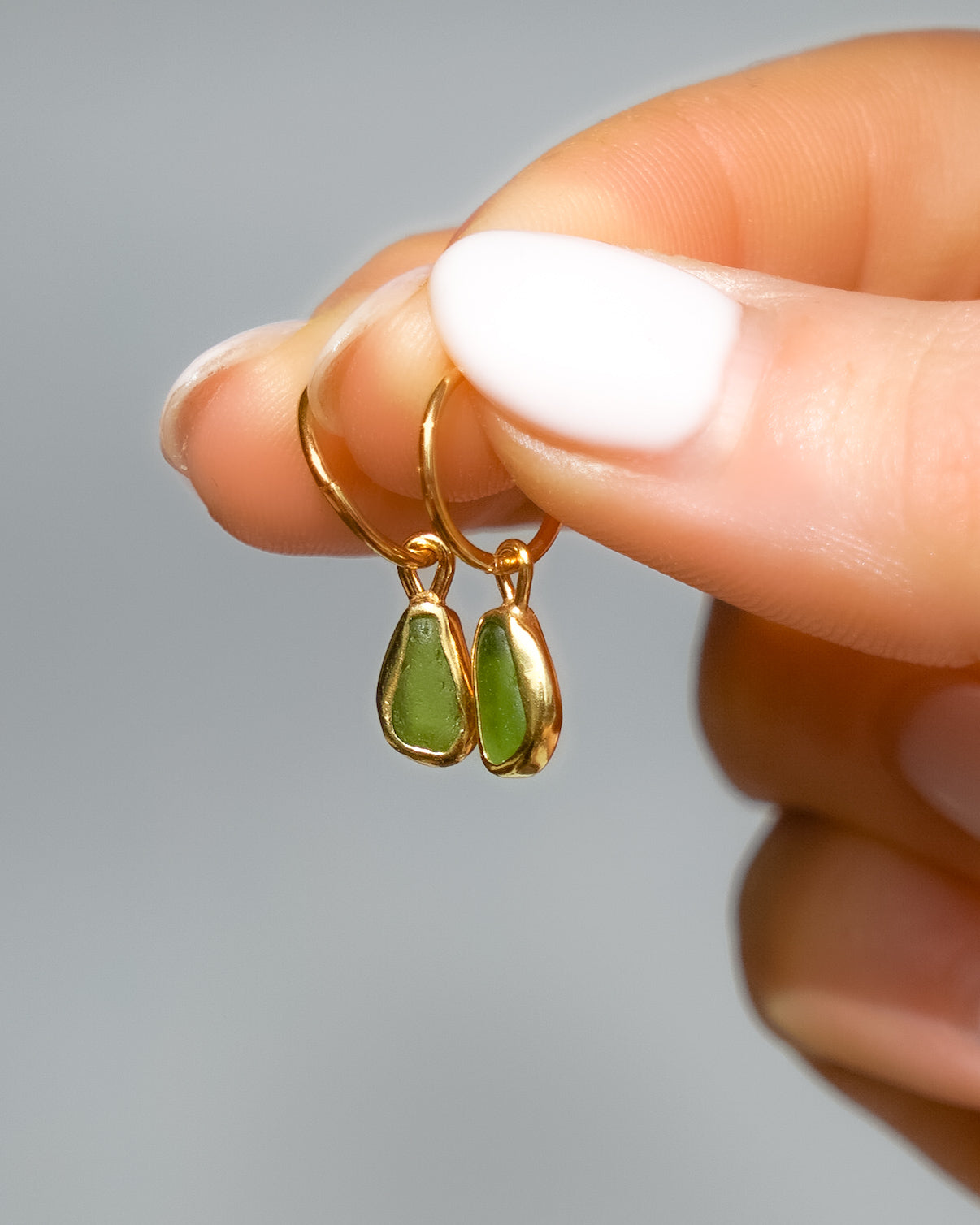 Green Sea Glass Hoops - Handmade from 925 Sterling Silver plated with a 10 micron thick and hard layer of 24K (Gold Vermeil)
