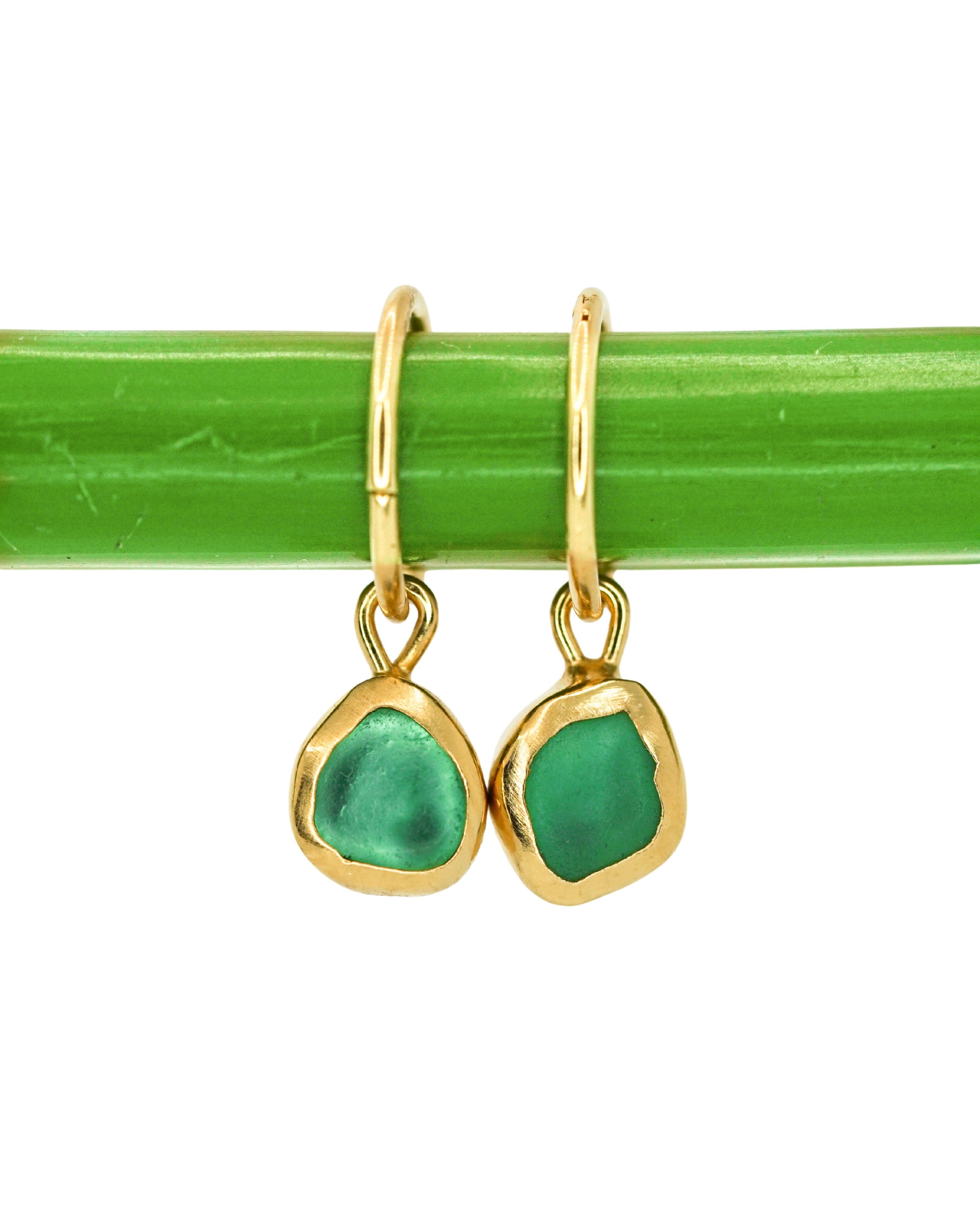 Green Sea Glass Hoops - Gold Vermeil