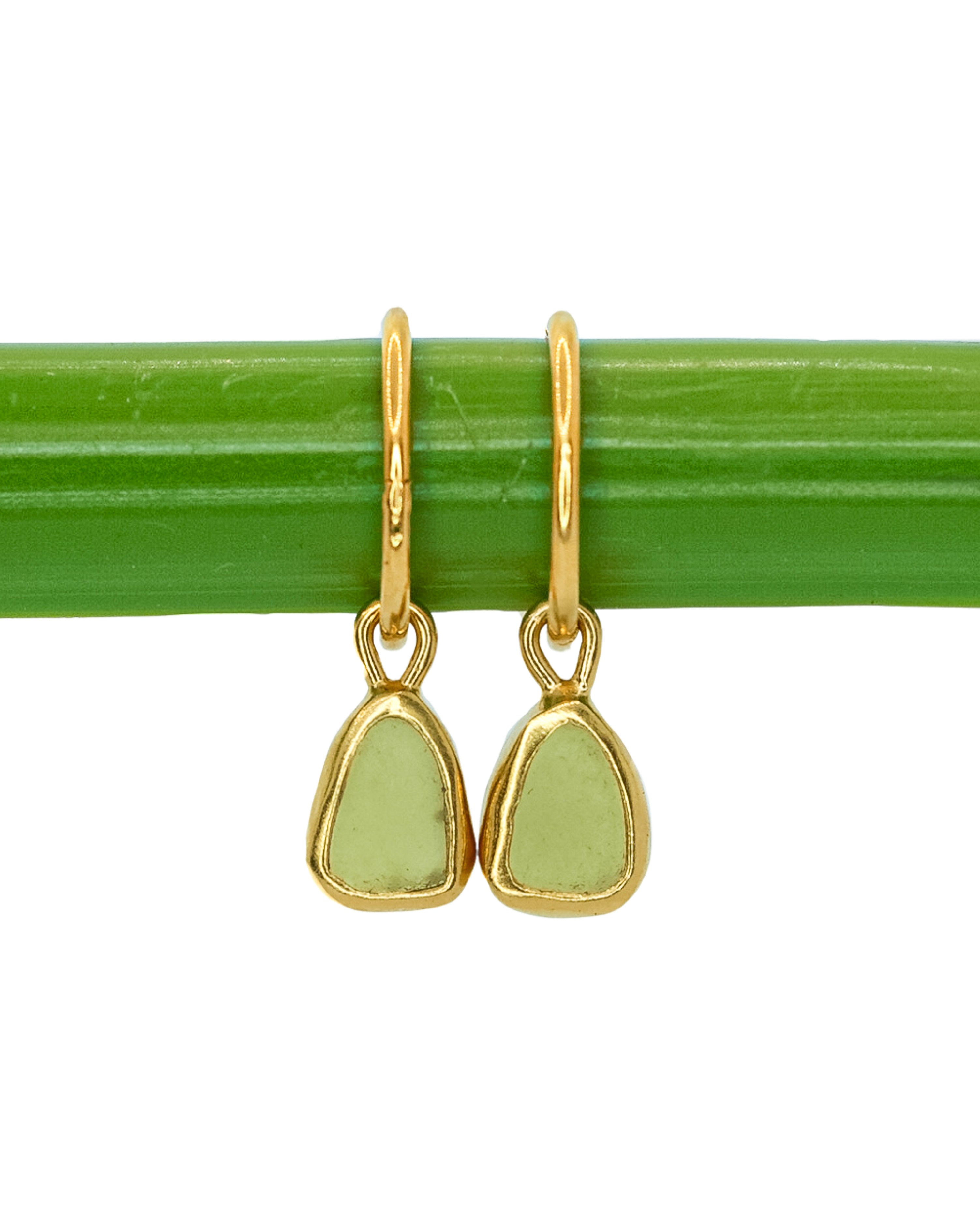Green Sea Glass Hoops - Gold Vermeil