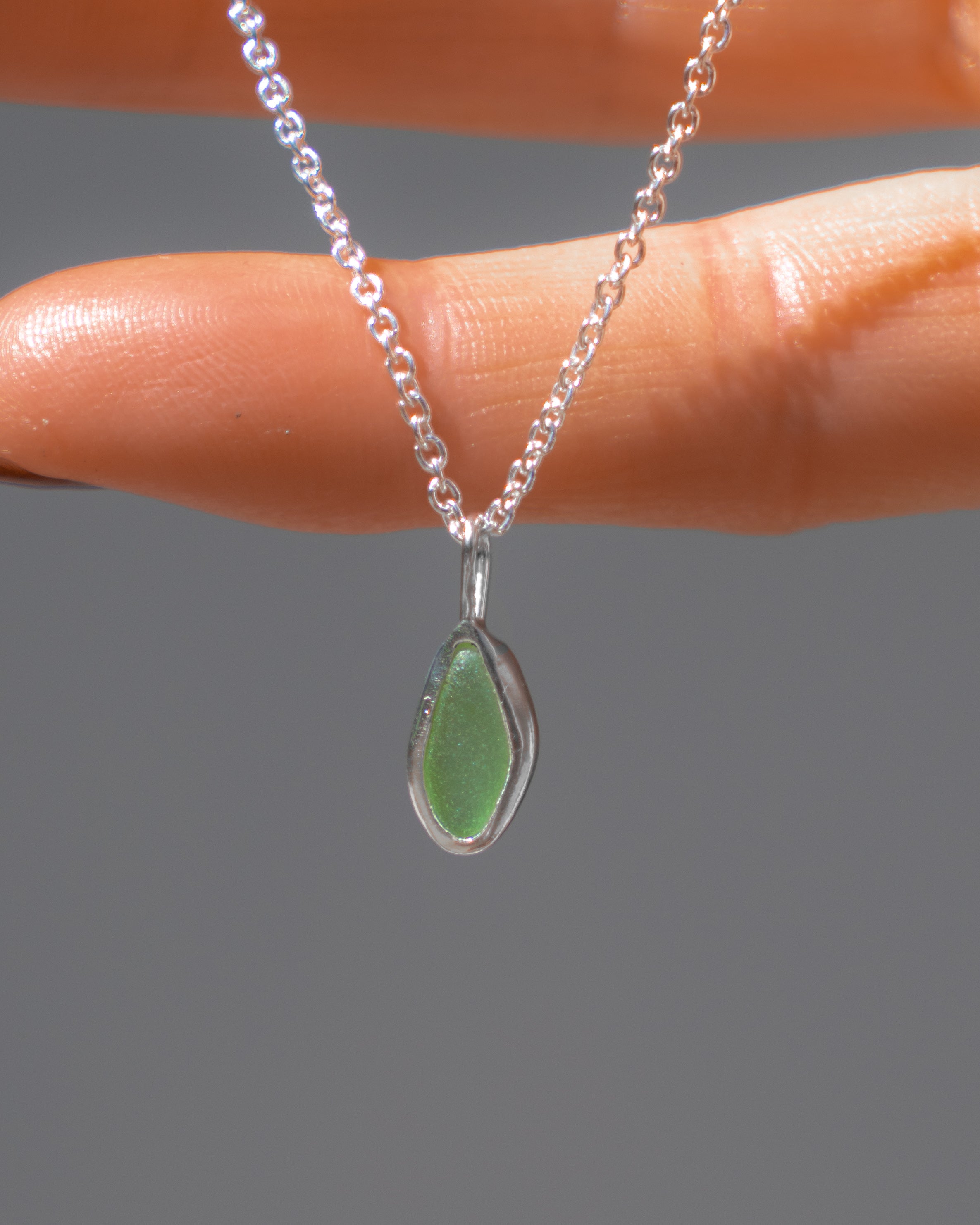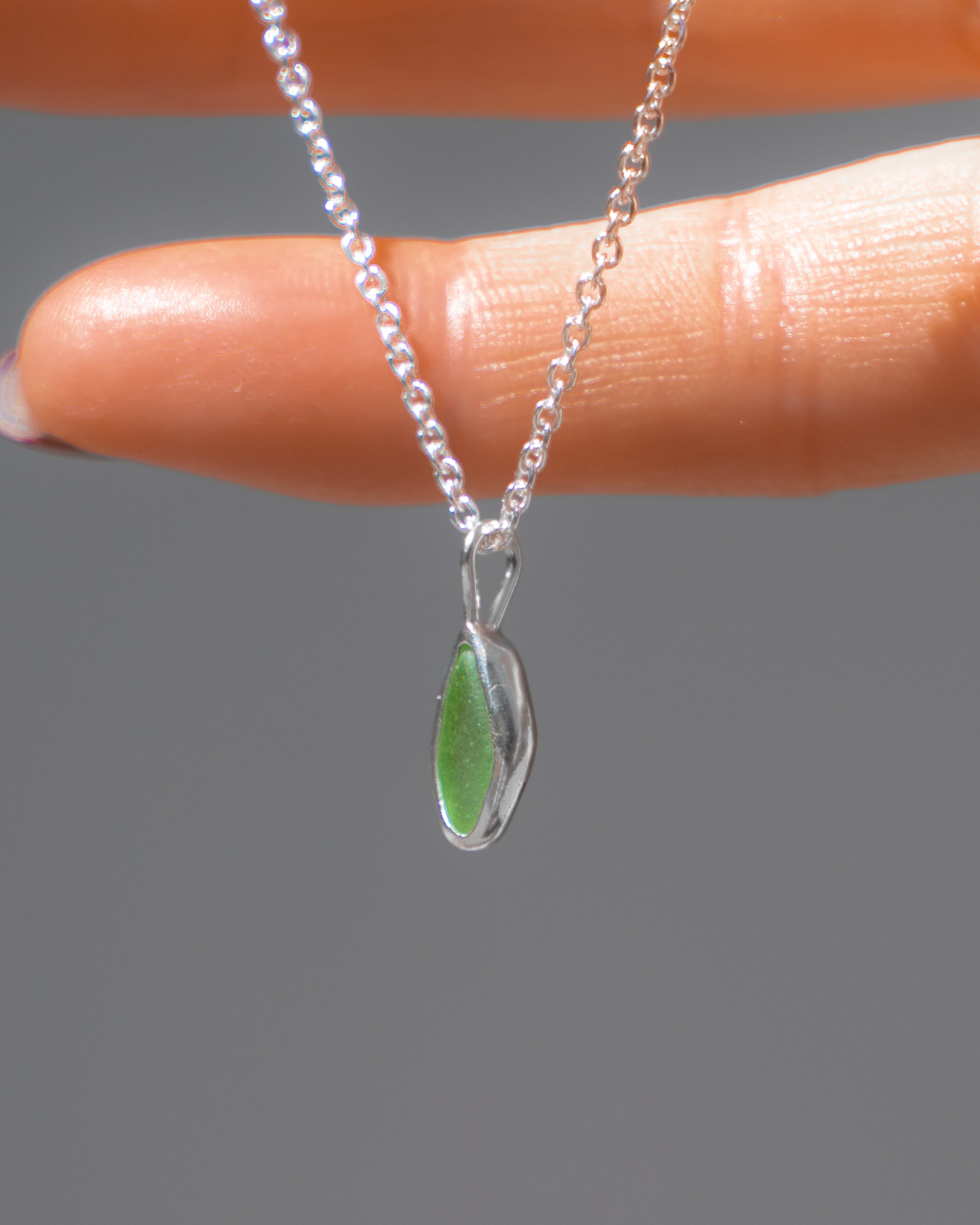 Each piece of sea glass jewellery is naturally shaped by the ocean and carefully set by hand. Every piece of glass has its own unique shape, tone and texture, making each design truly one of a kind.