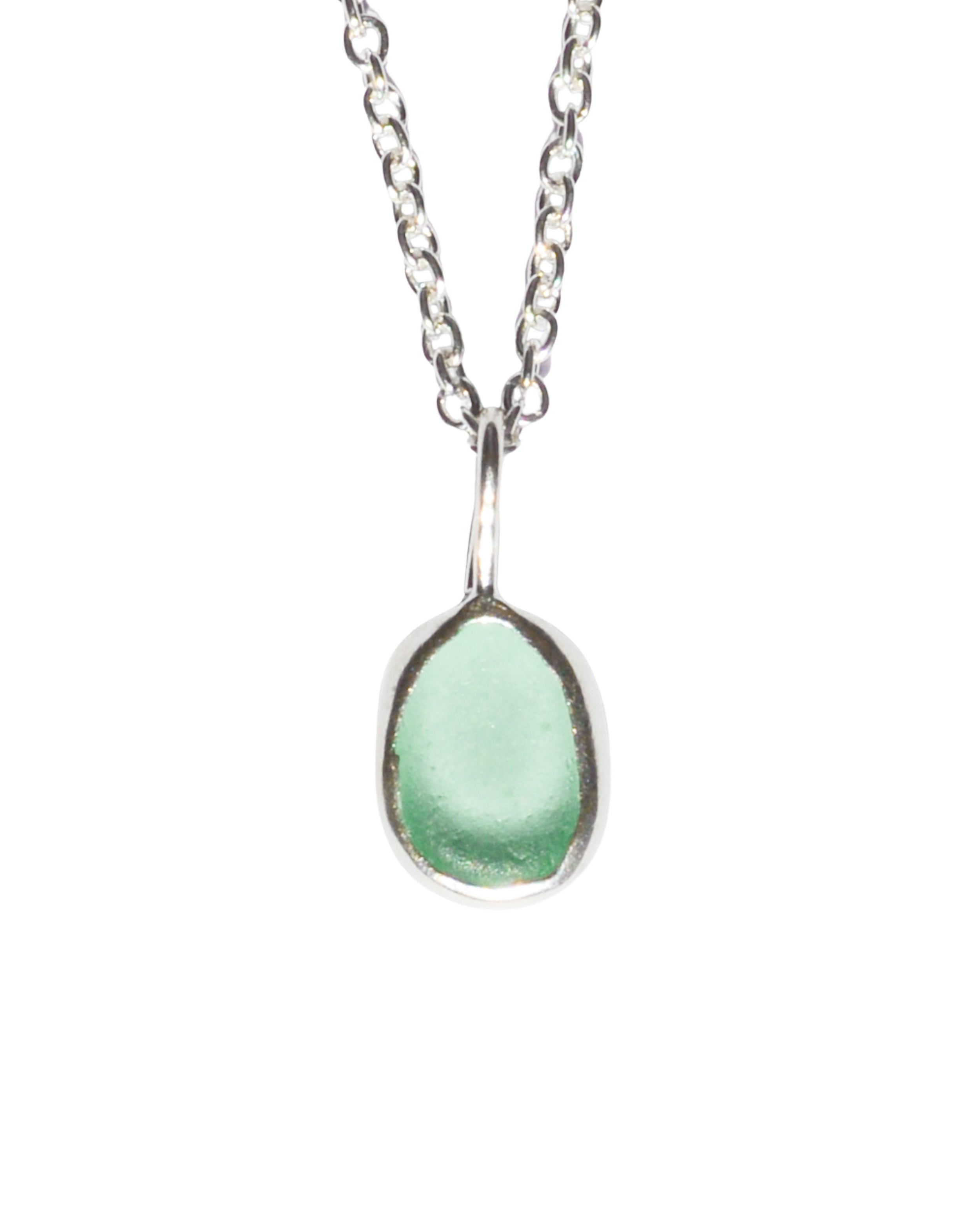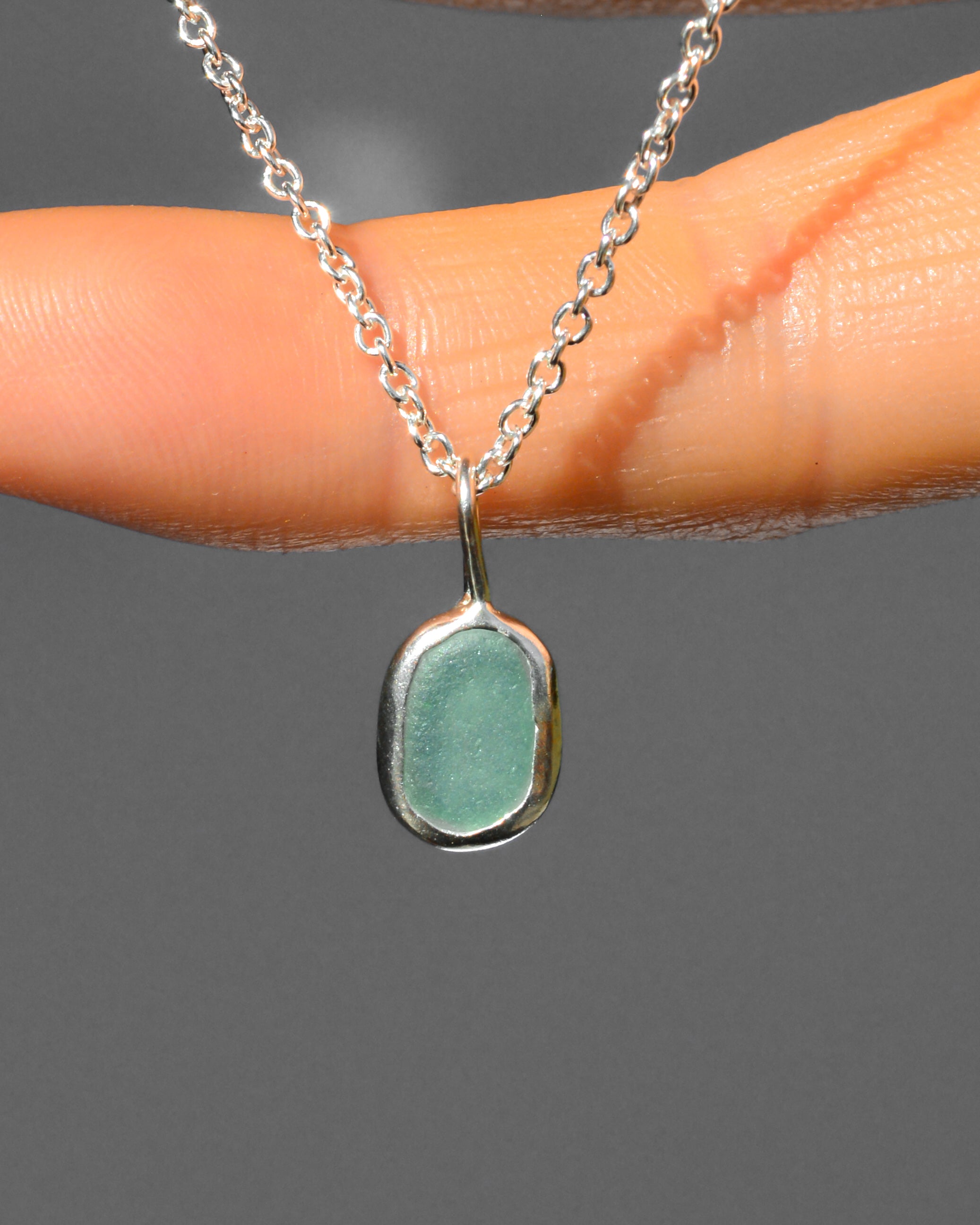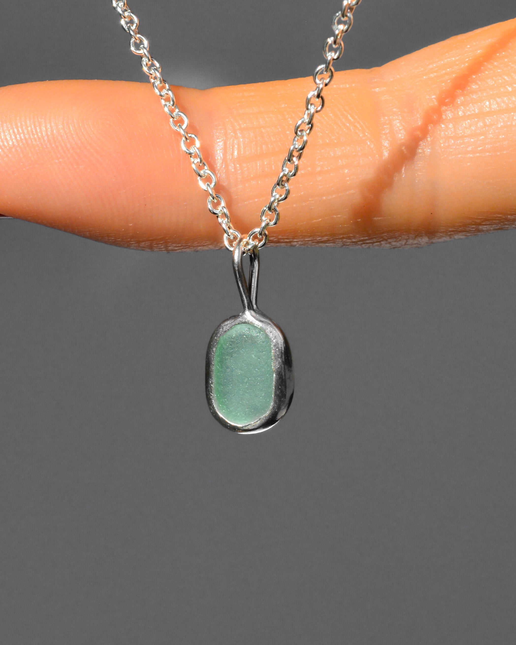 Green Sea Glass Necklace - Handmade from 925 sterling silver