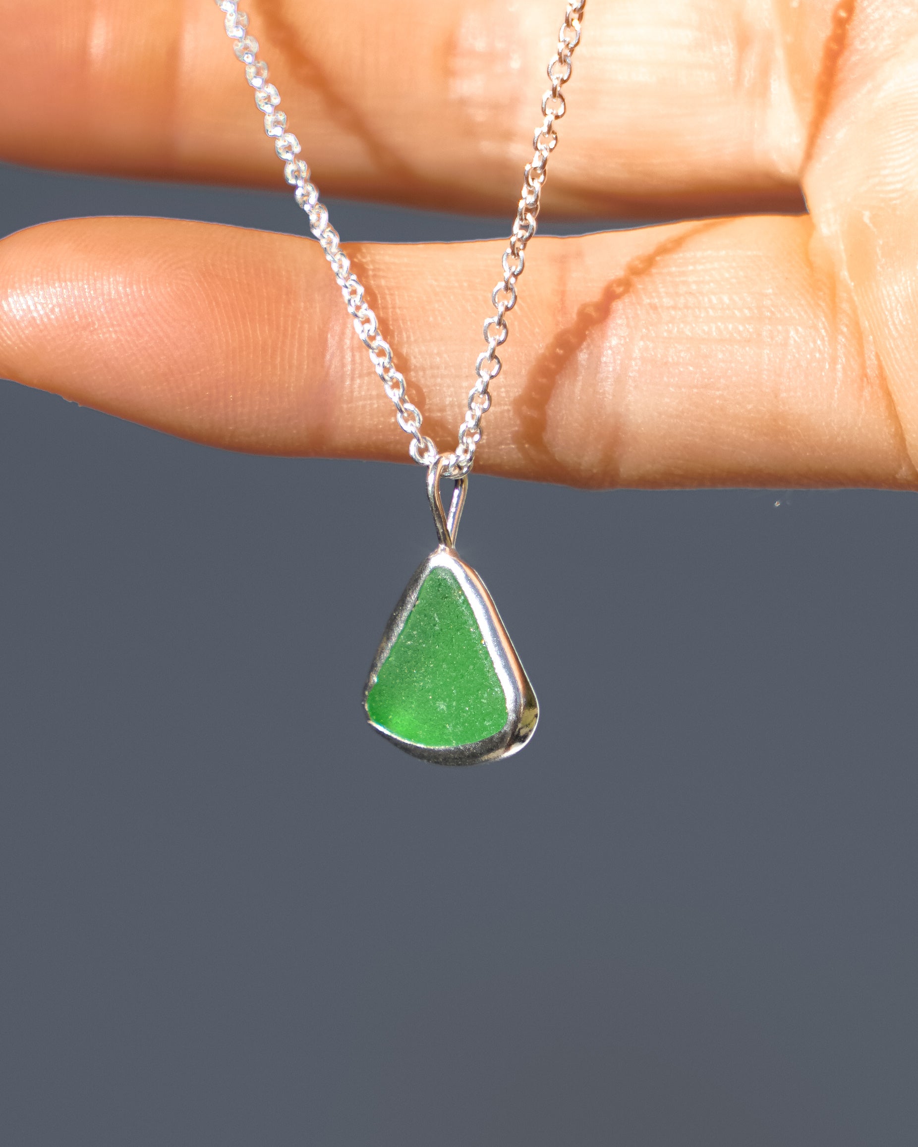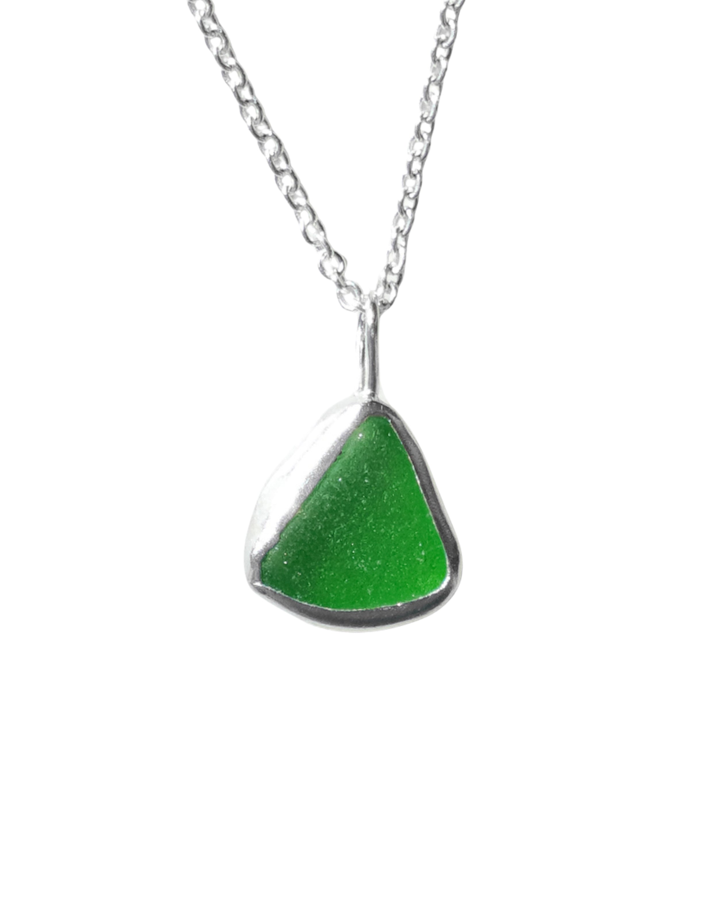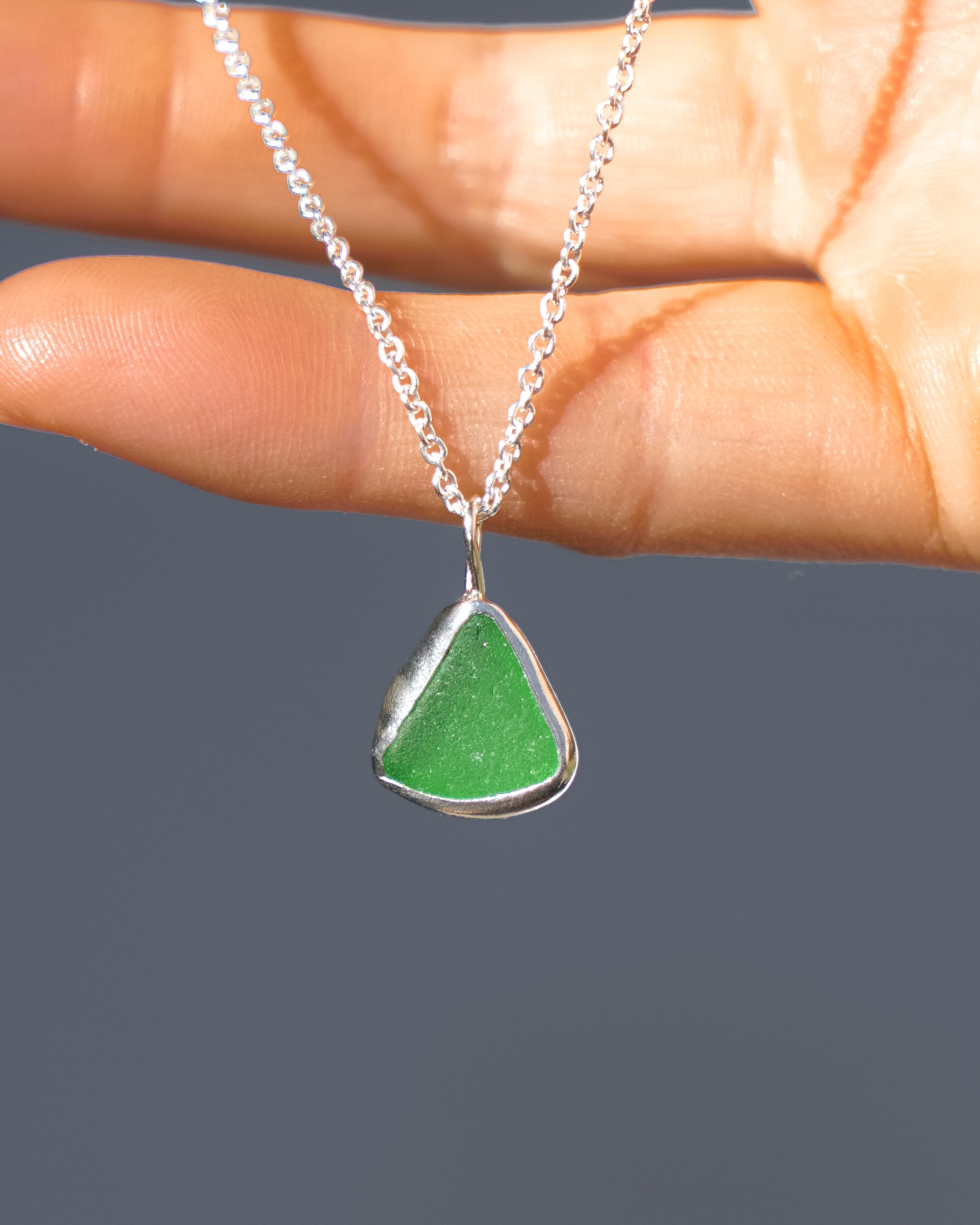 Green Sea Glass Necklace - Handmade from 925 sterling silver