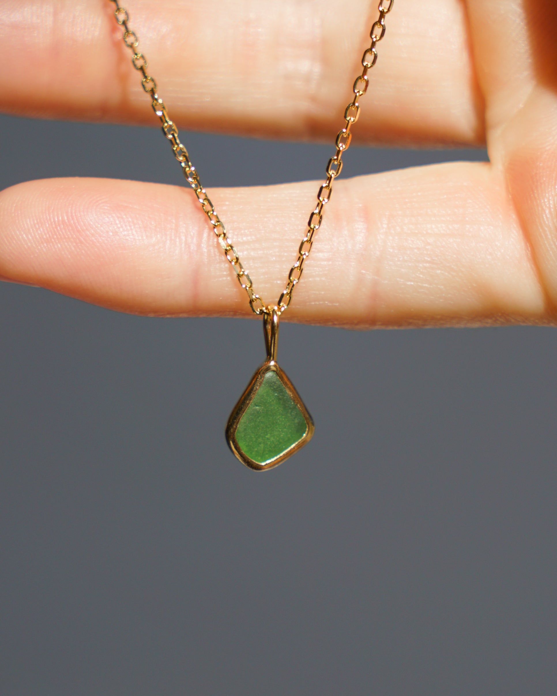 Green Sea Glass Necklace - Gold Vermeil