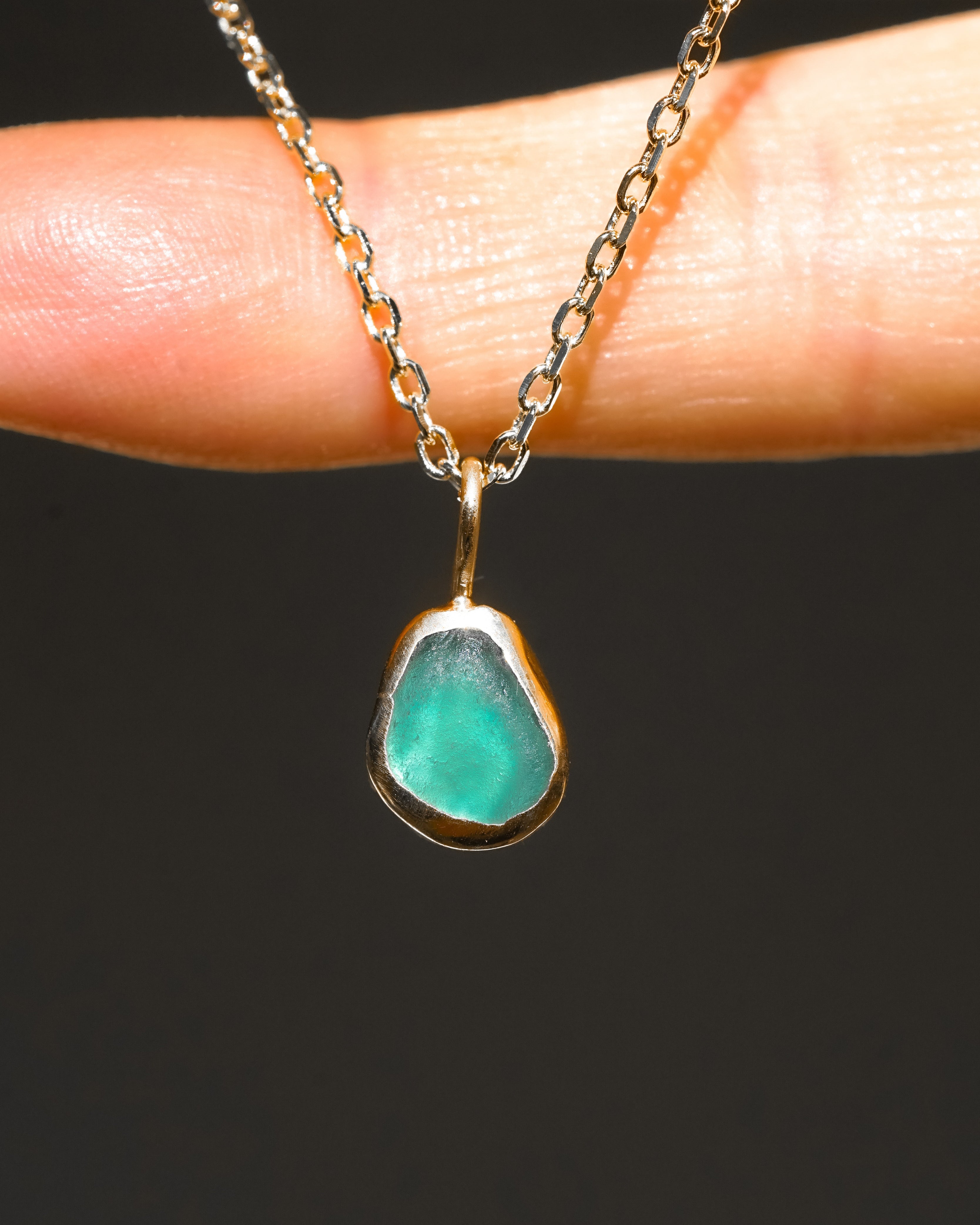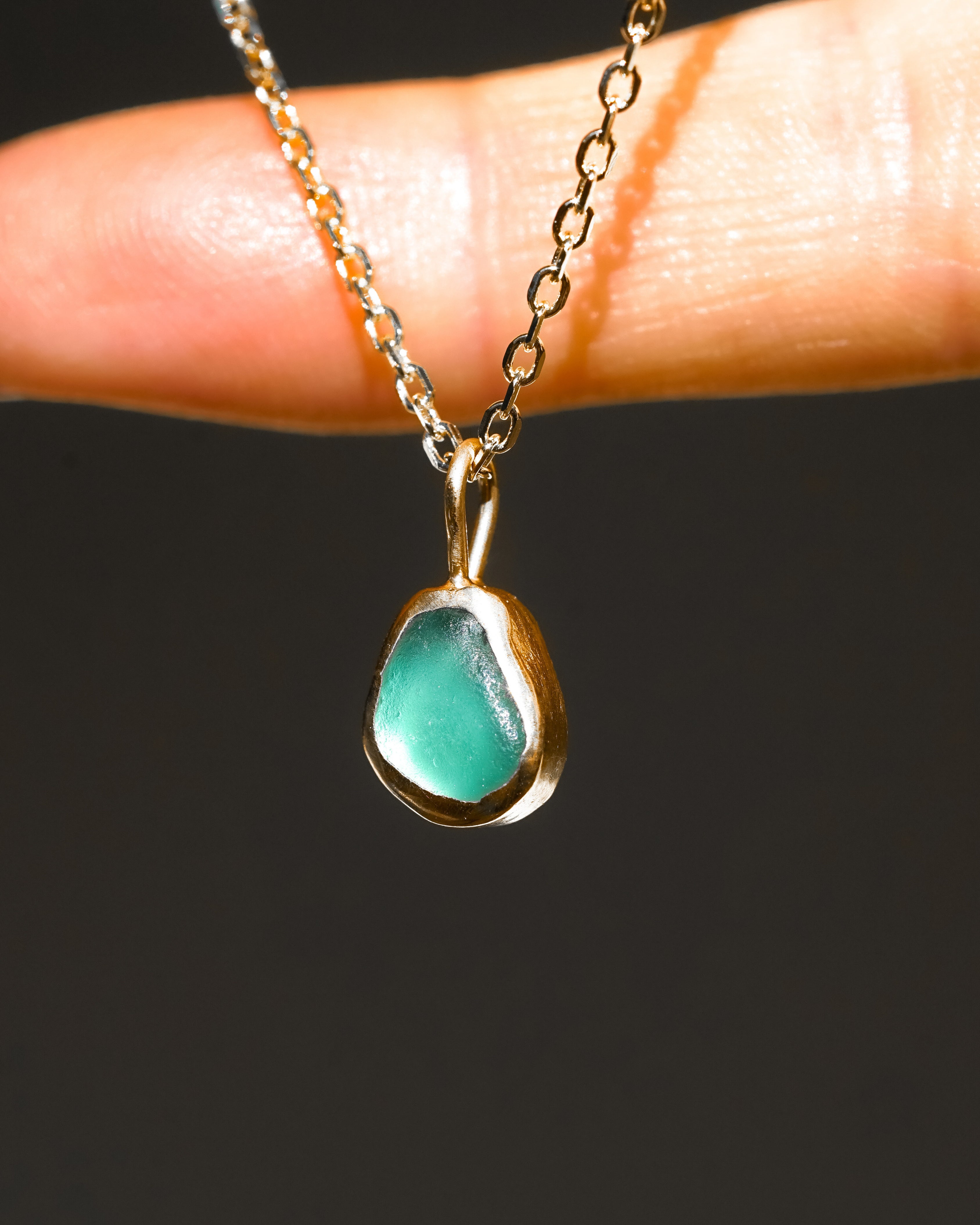 Sea Glass Jewellery (Open Back Designs) - Our open back sea glass pieces are made with an open setting to really show the true colour of the glass. This design also makes them safe to wear in water, allowing the natural beauty of the glass to shine through.