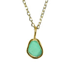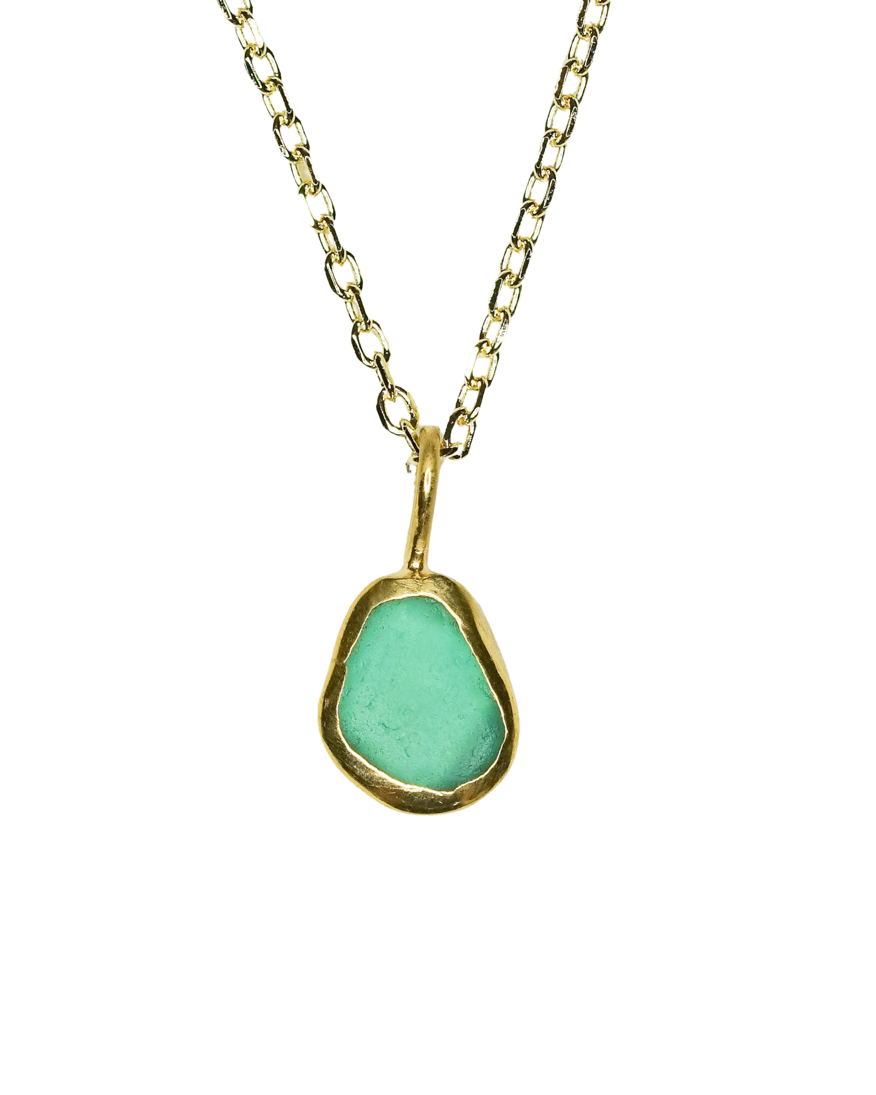 Green Sea Glass Necklace - Handmade from 925 Sterling Silver plated with a 10 micron thick and hard layer of 24K (Gold Vermeil)