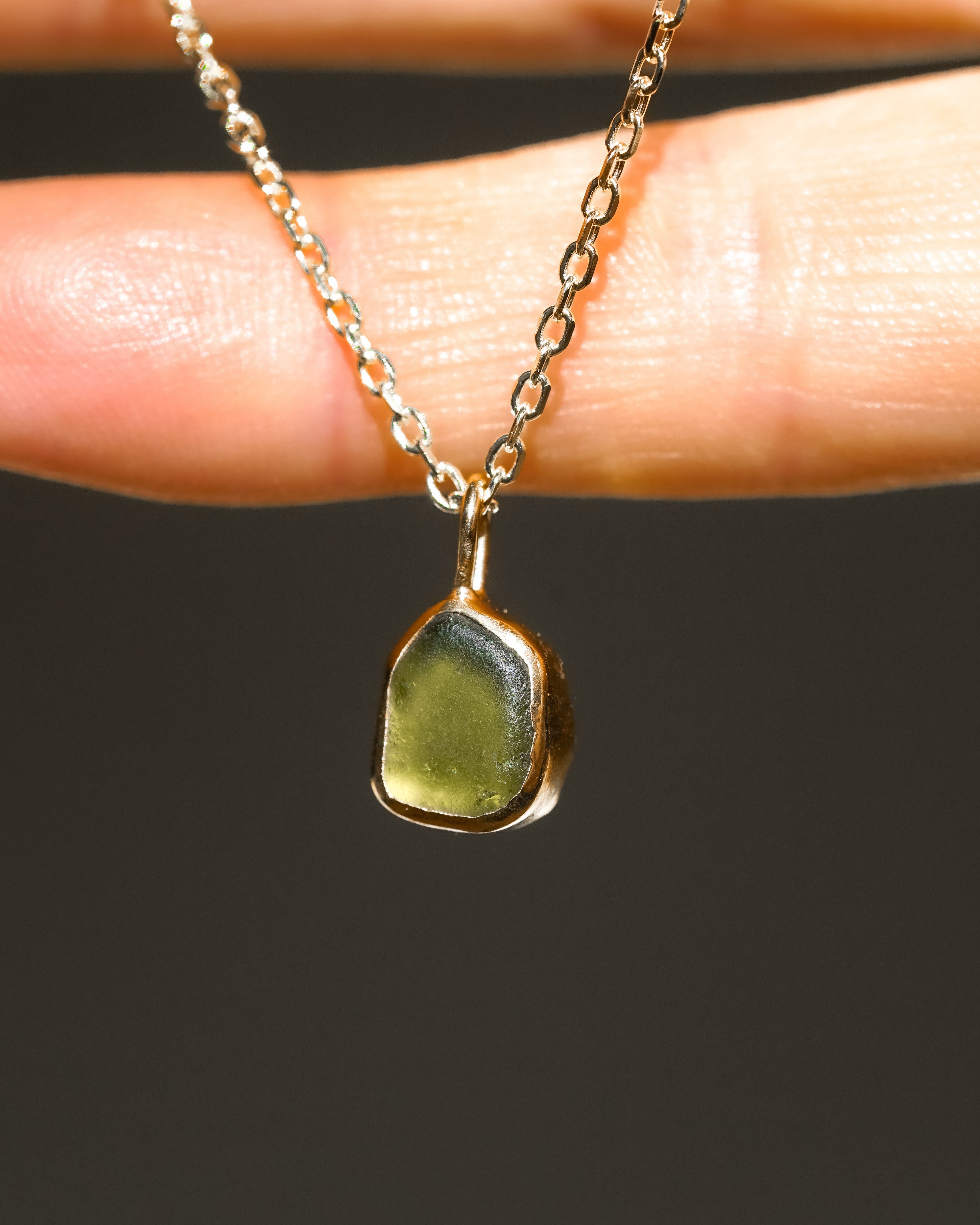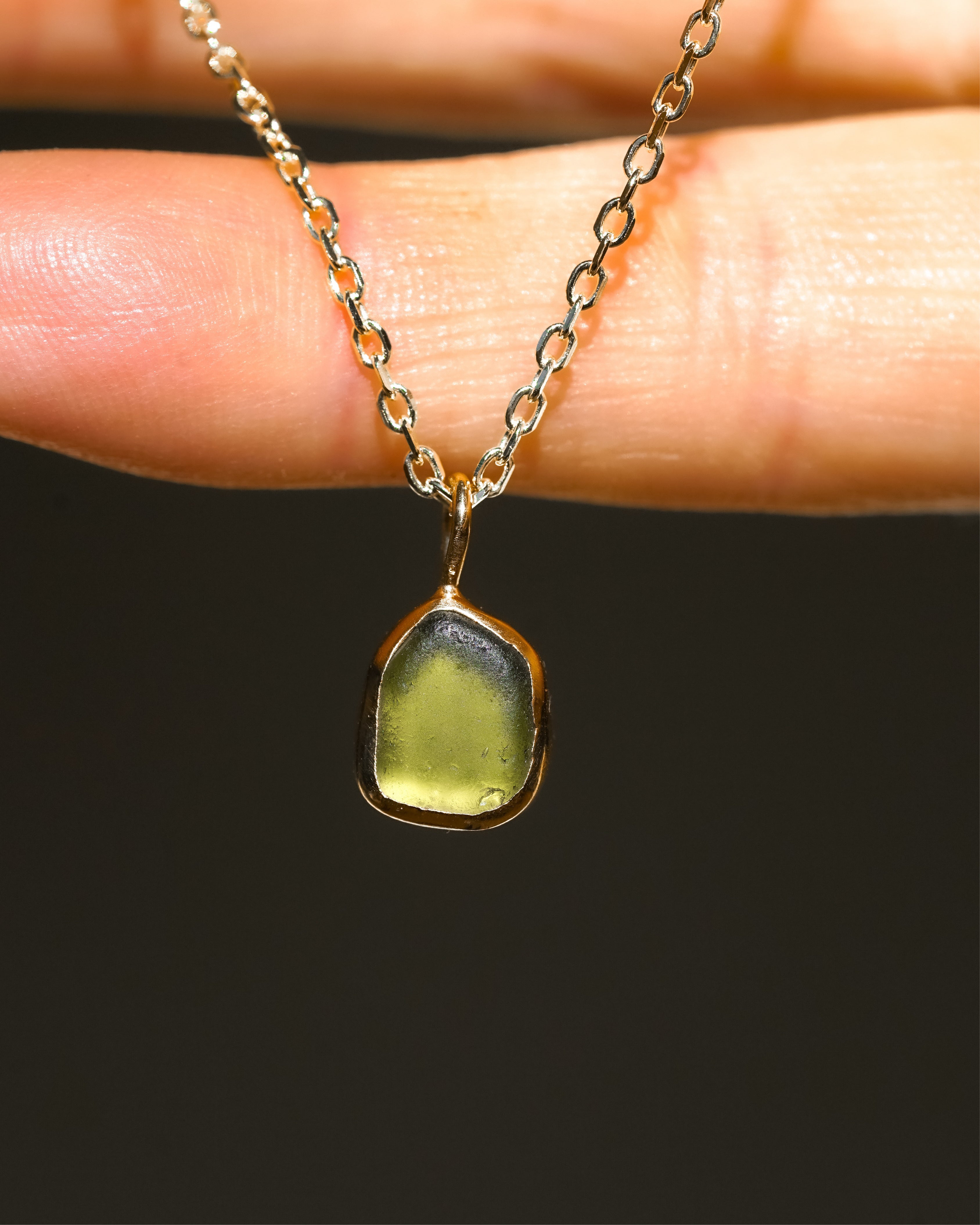Green Sea Glass Necklace - Handmade from 925 Sterling Silver plated with a 10 micron thick and hard layer of 24K (Gold Vermeil)