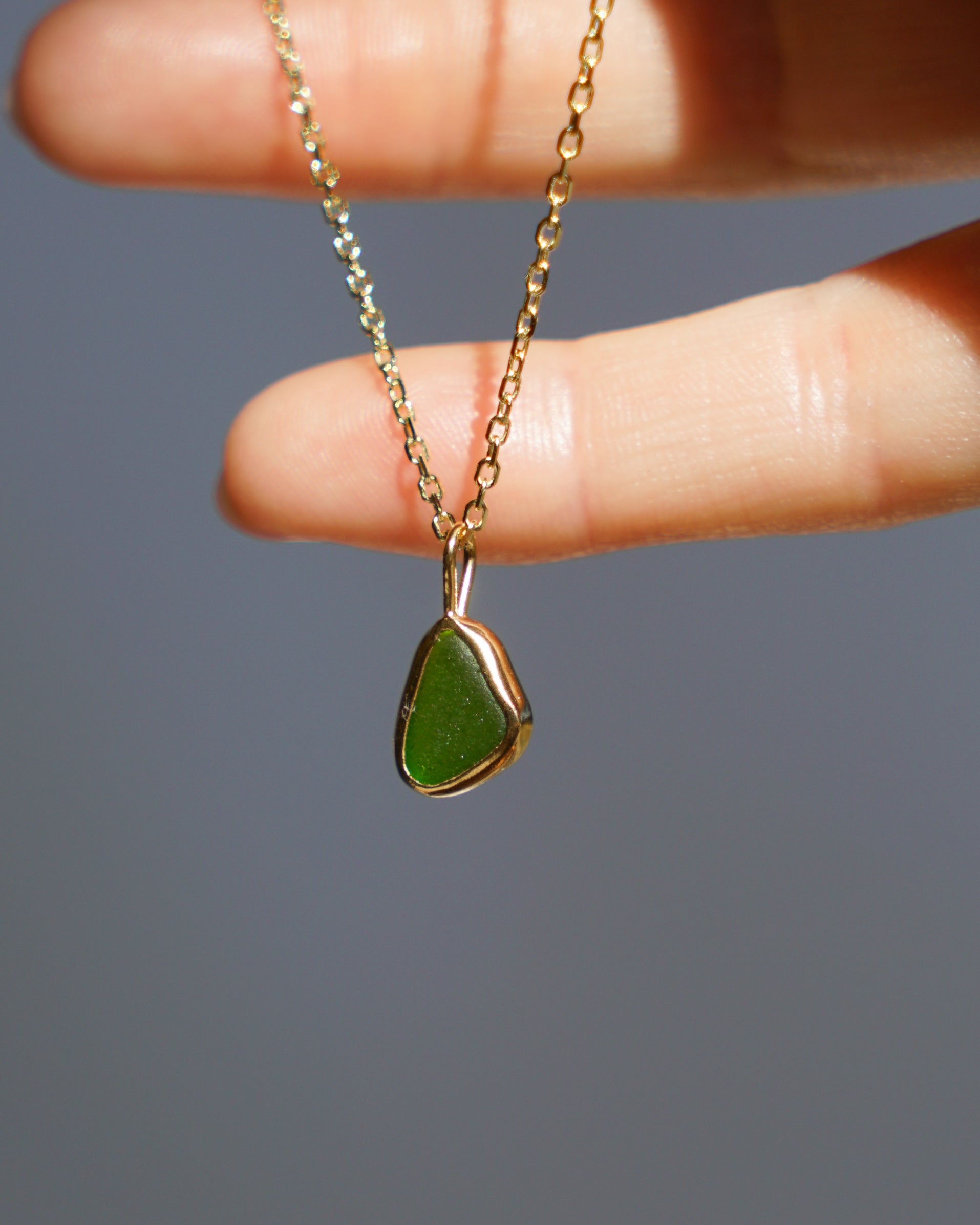 Green Sea Glass Necklace - Gold Vermeil