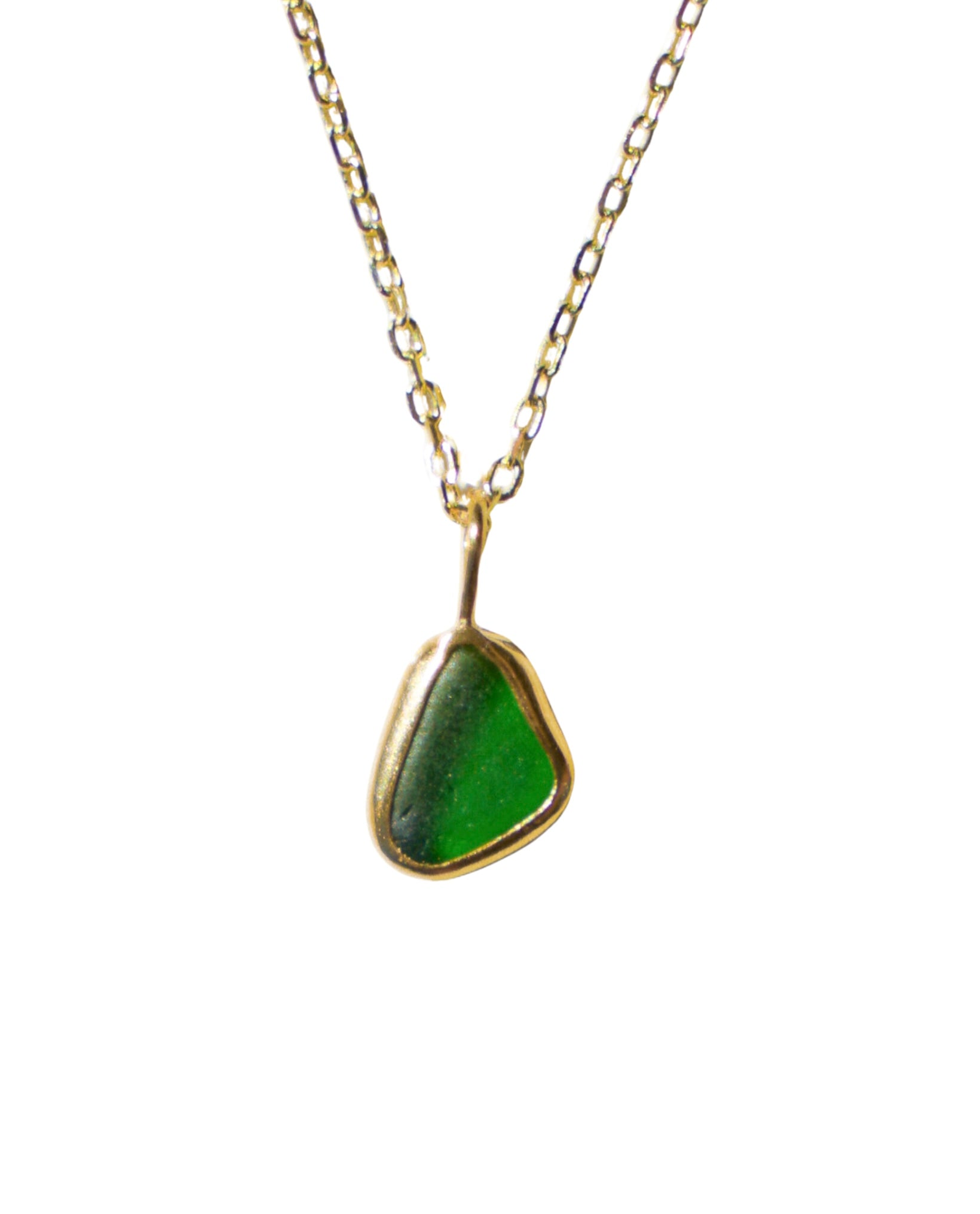Green Sea Glass Necklace - Handmade from 925 Sterling Silver plated with a 10 micron thick and hard layer of 24K (Gold Vermeil)