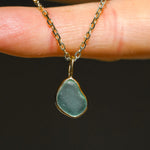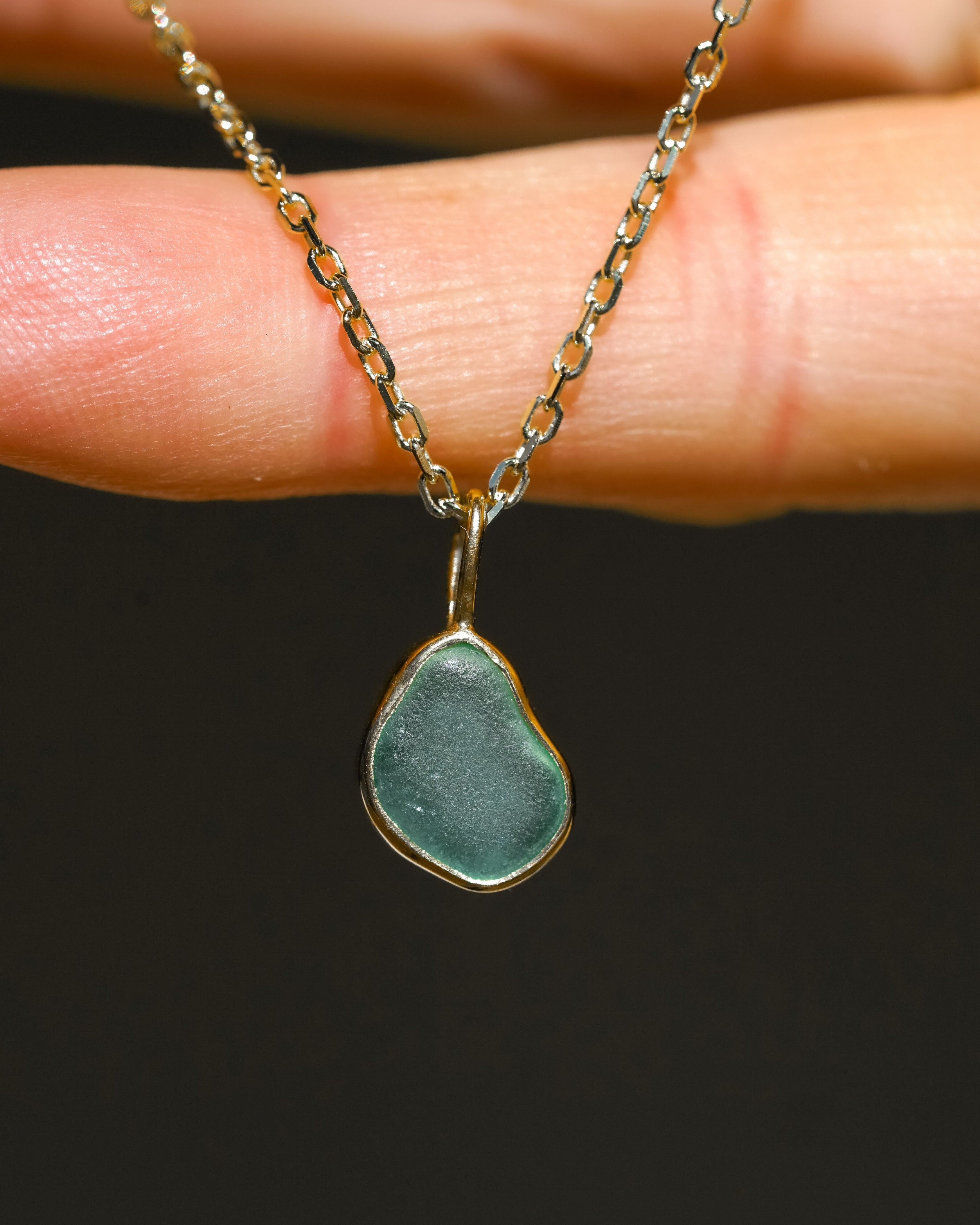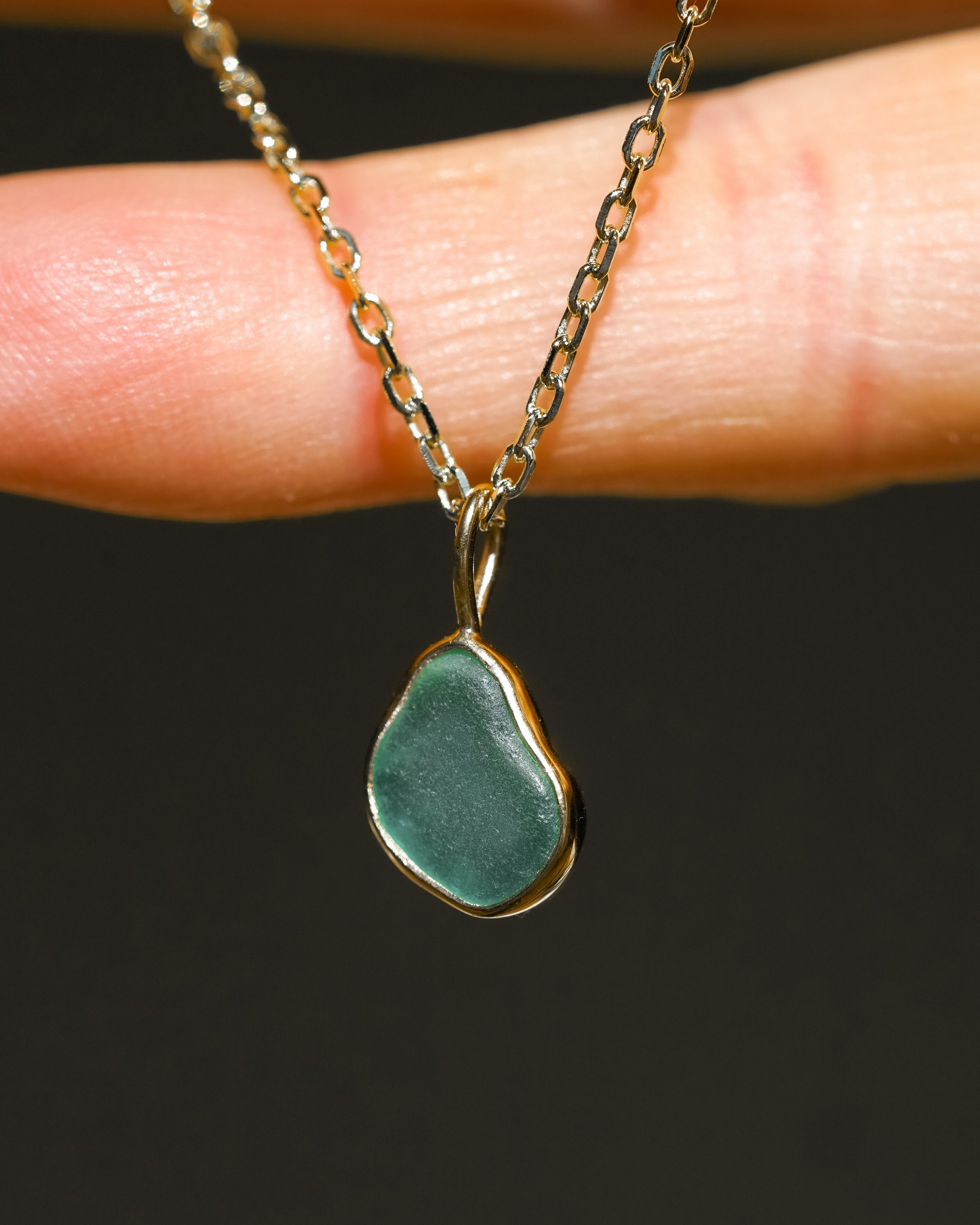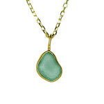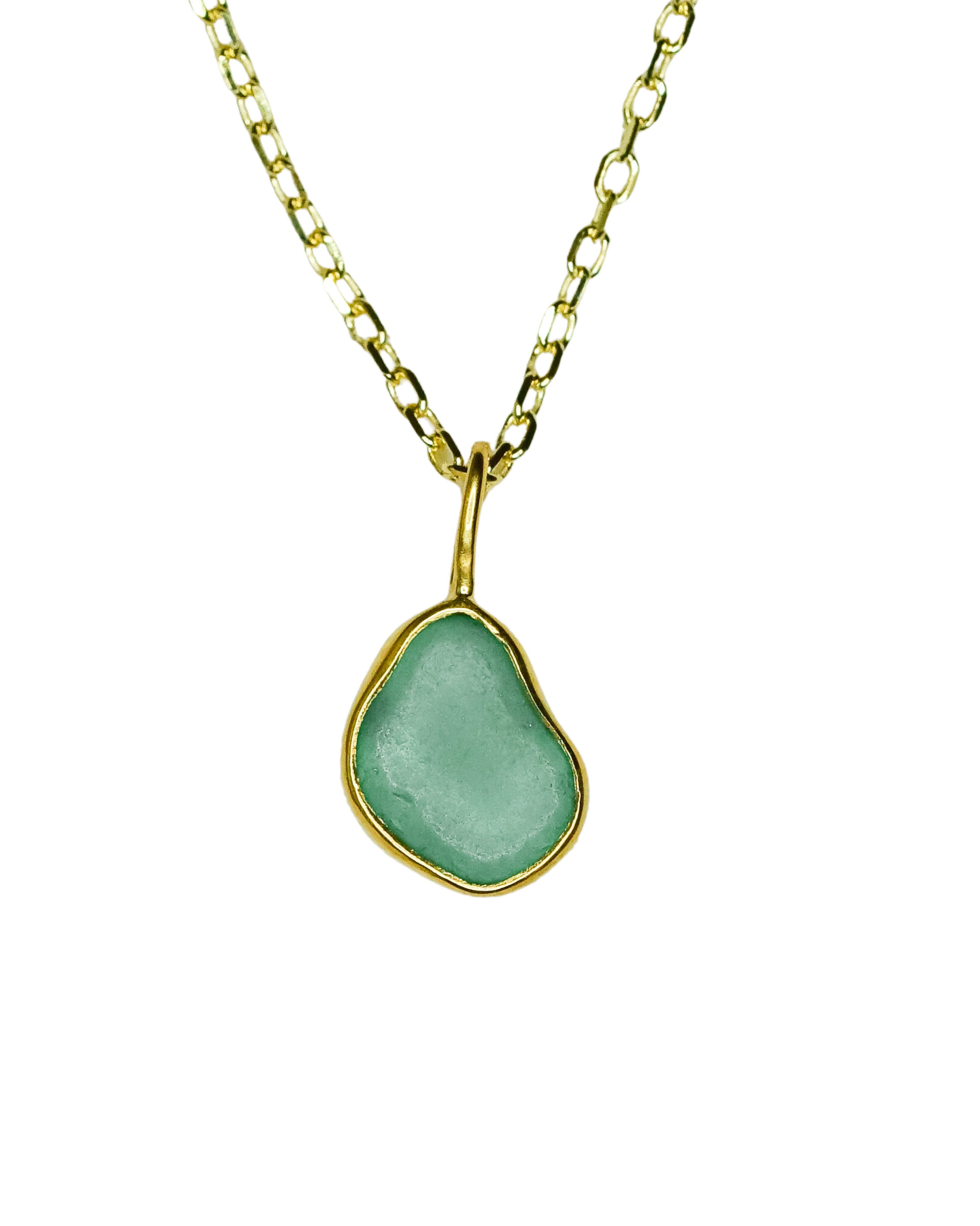 Green Sea Glass Necklace - Handmade from 925 Sterling Silver plated with a 10 micron thick and hard layer of 24K (Gold Vermeil)