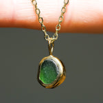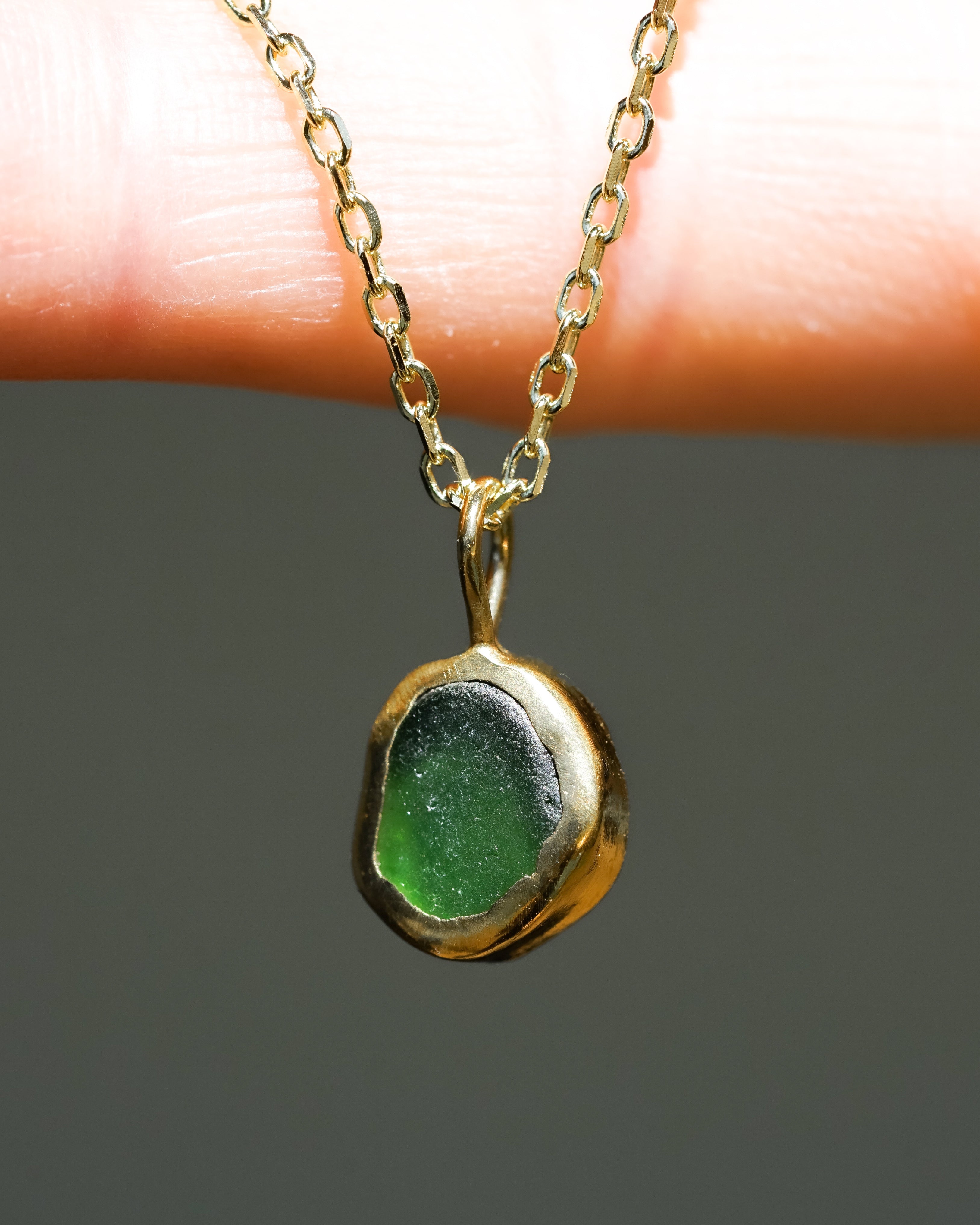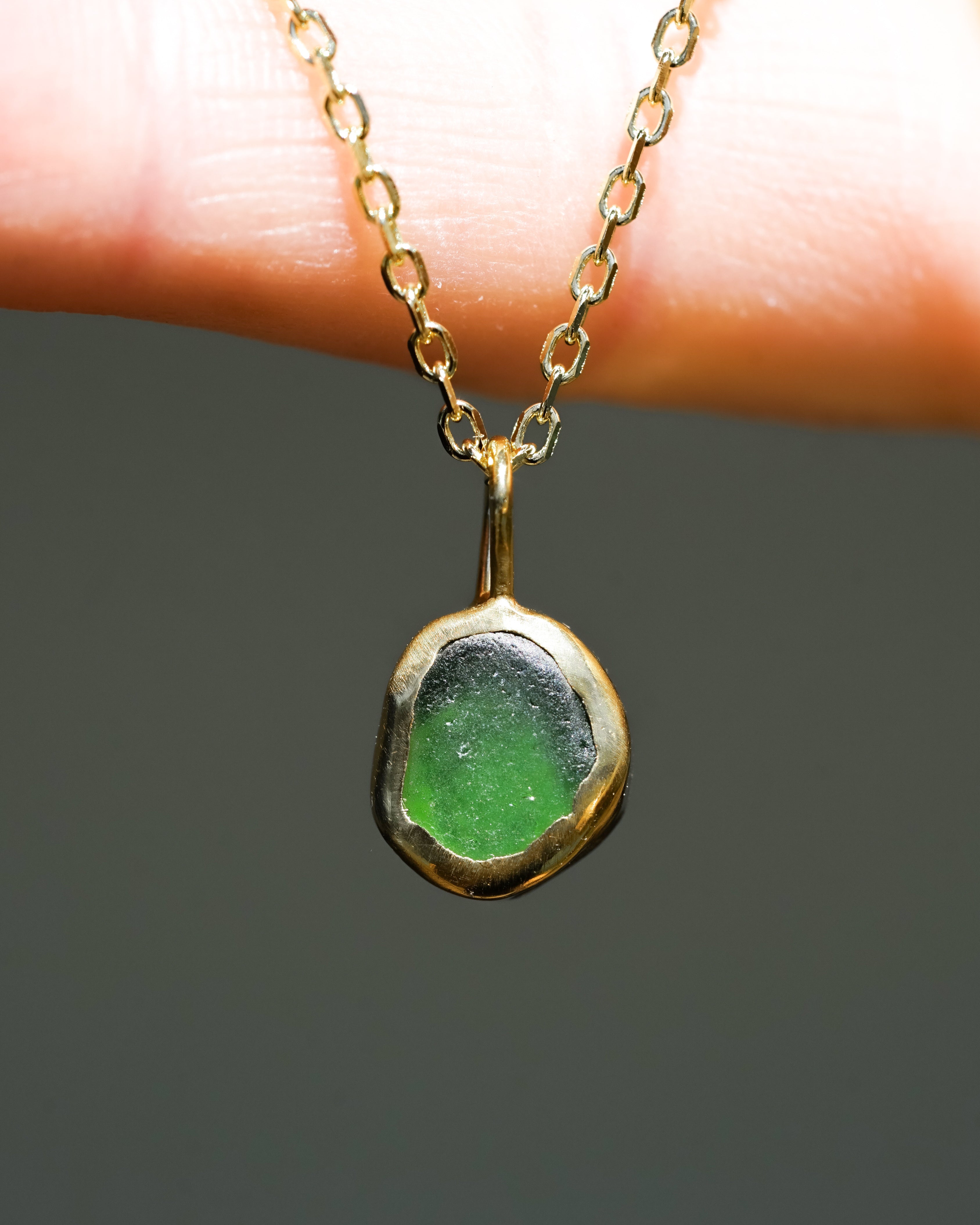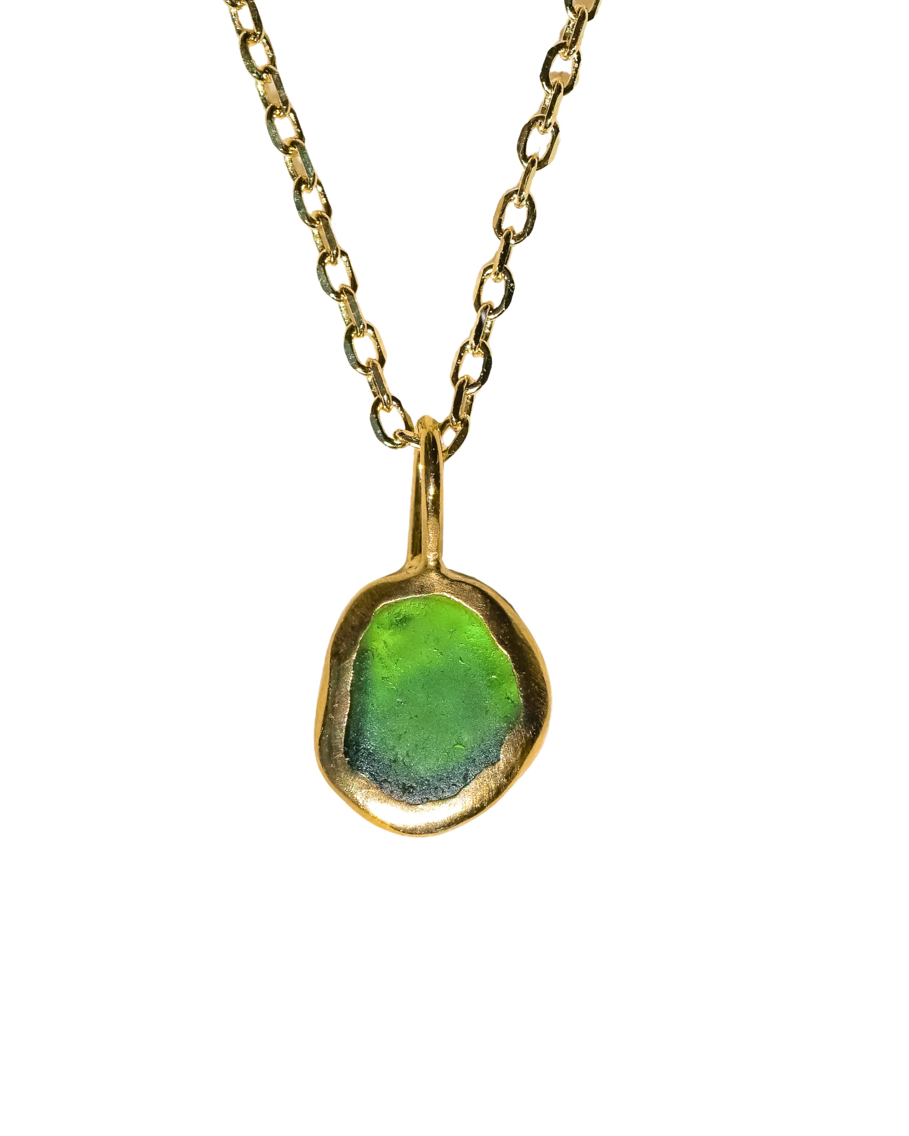 Green Sea Glass Necklace - Handmade from 925 Sterling Silver plated with a 10 micron thick and hard layer of 24K (Gold Vermeil)