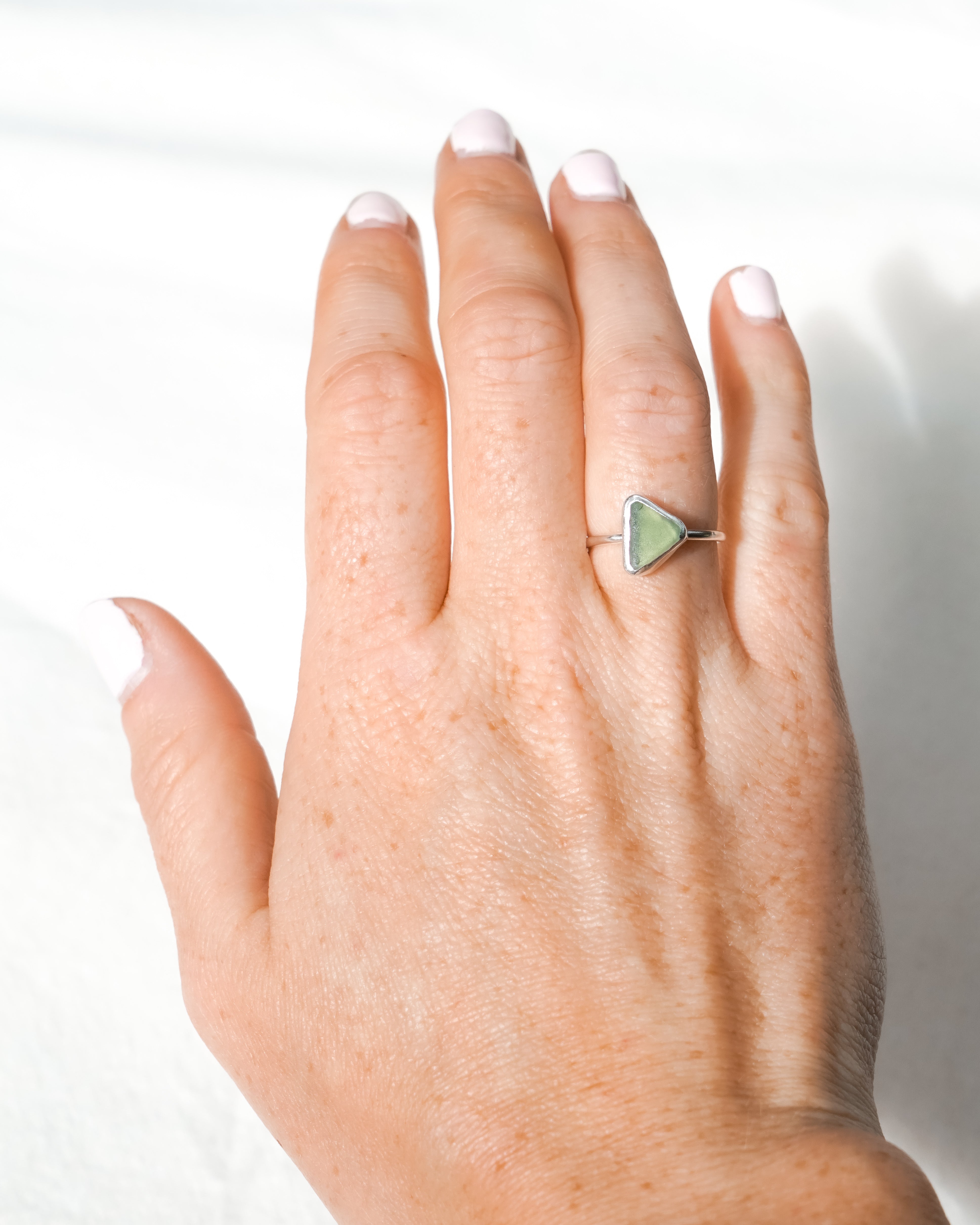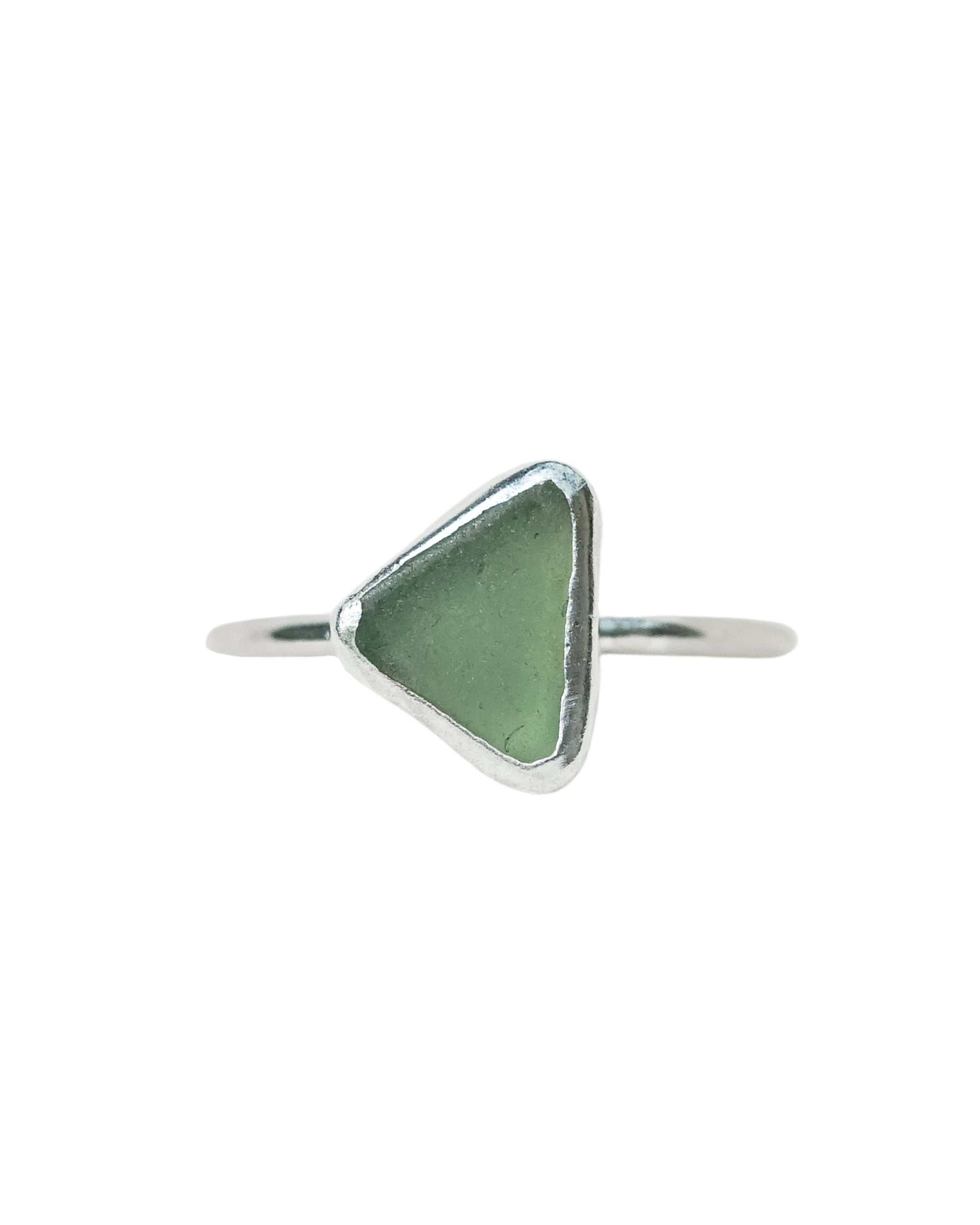 Green Sea Glass Ring - Handmade from 925 Sterling Silver
