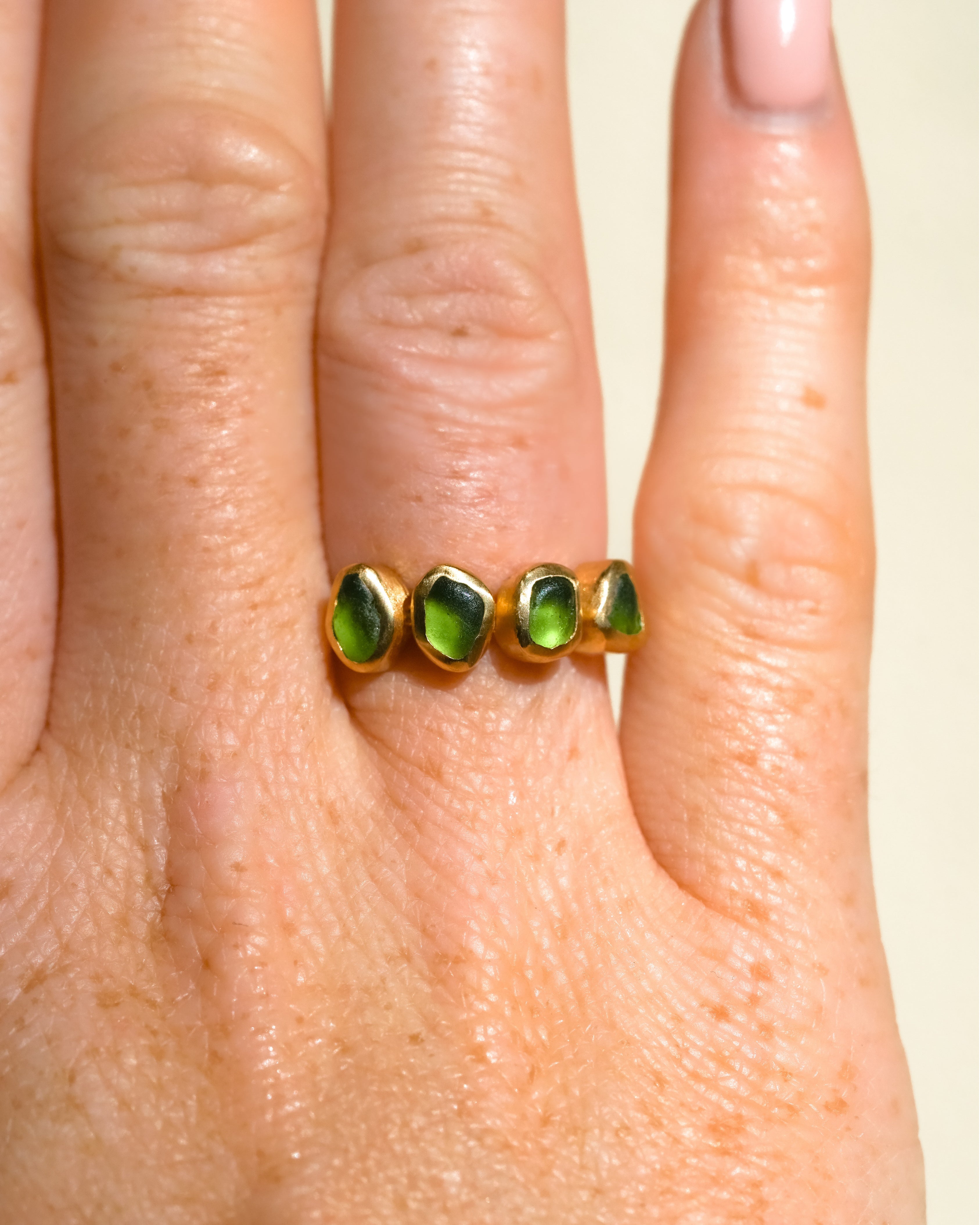 Green Sea Glass, Gold Vermeil - Size N