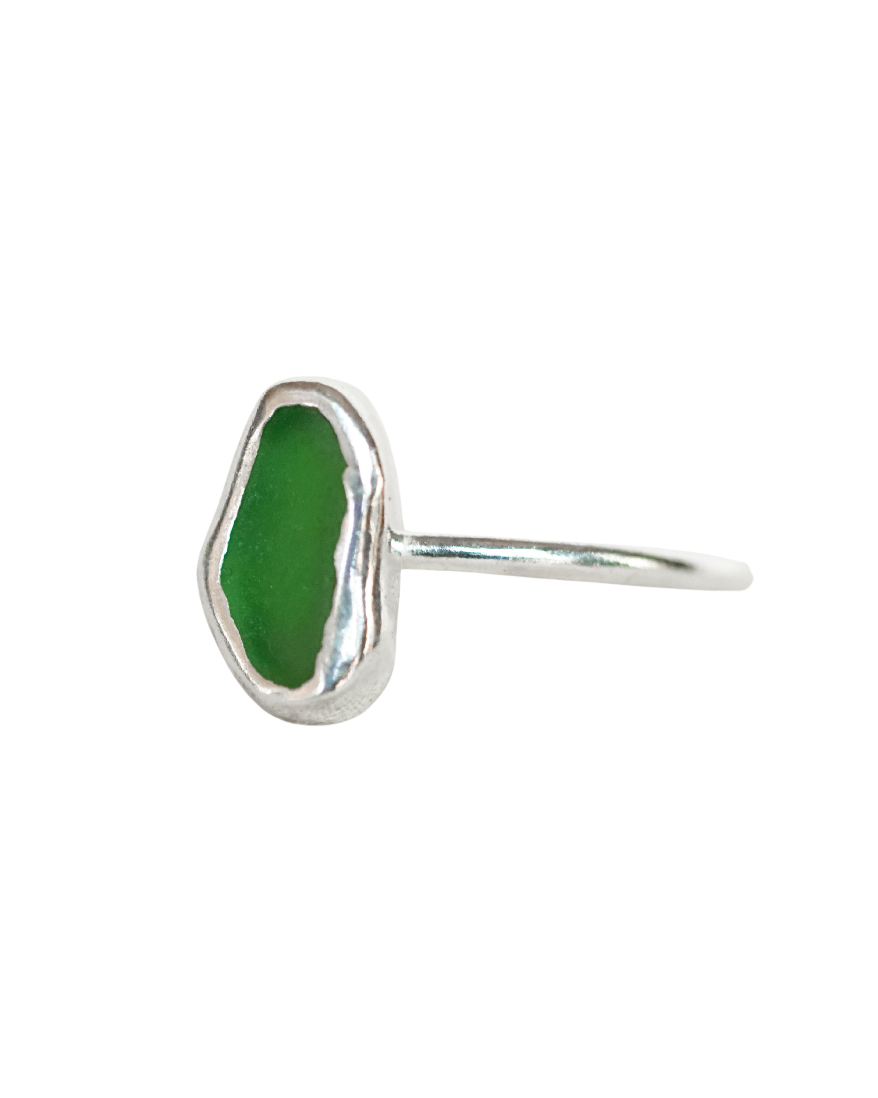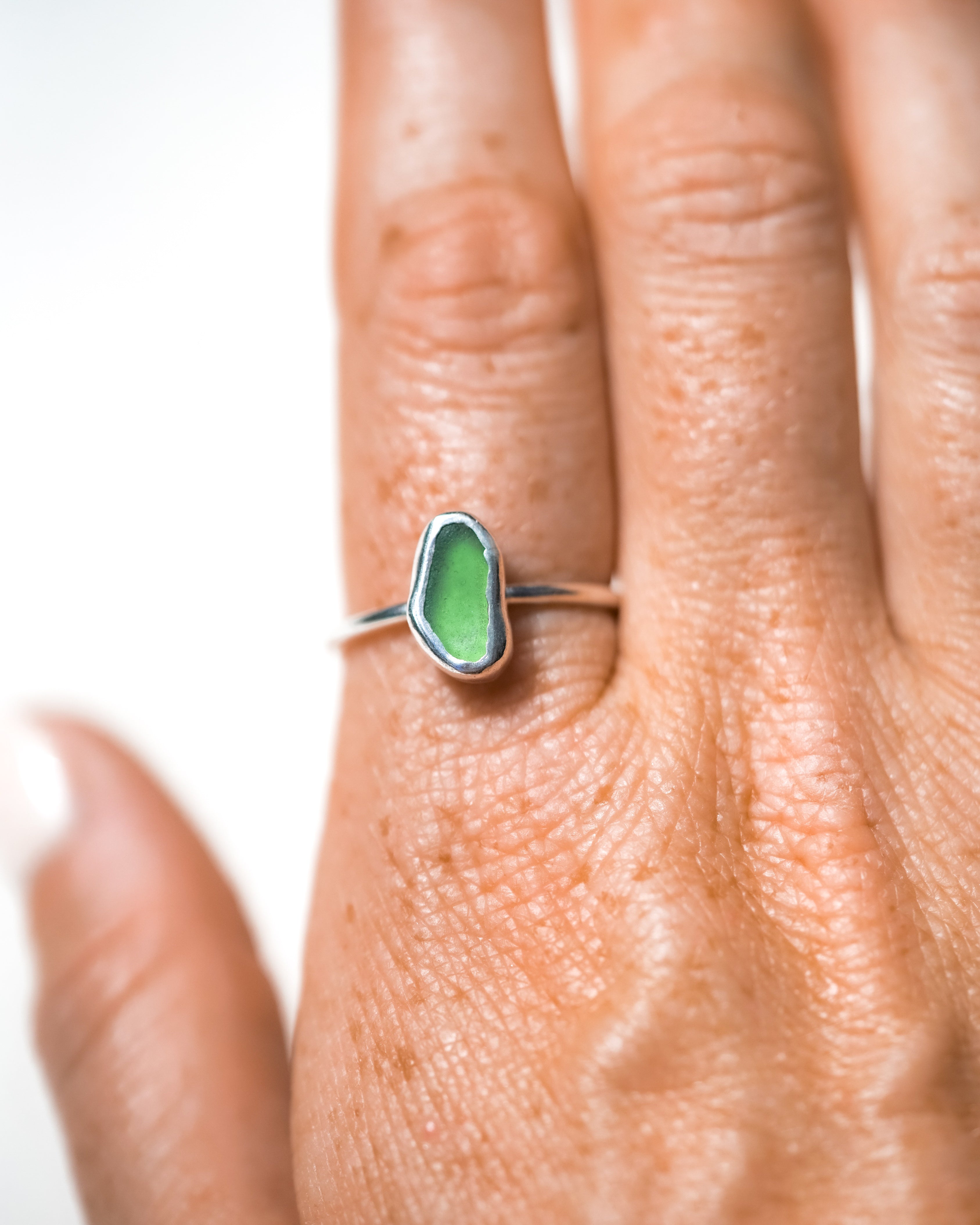 Green Sea Glass Ring - Handmade from 925 Sterling Silver