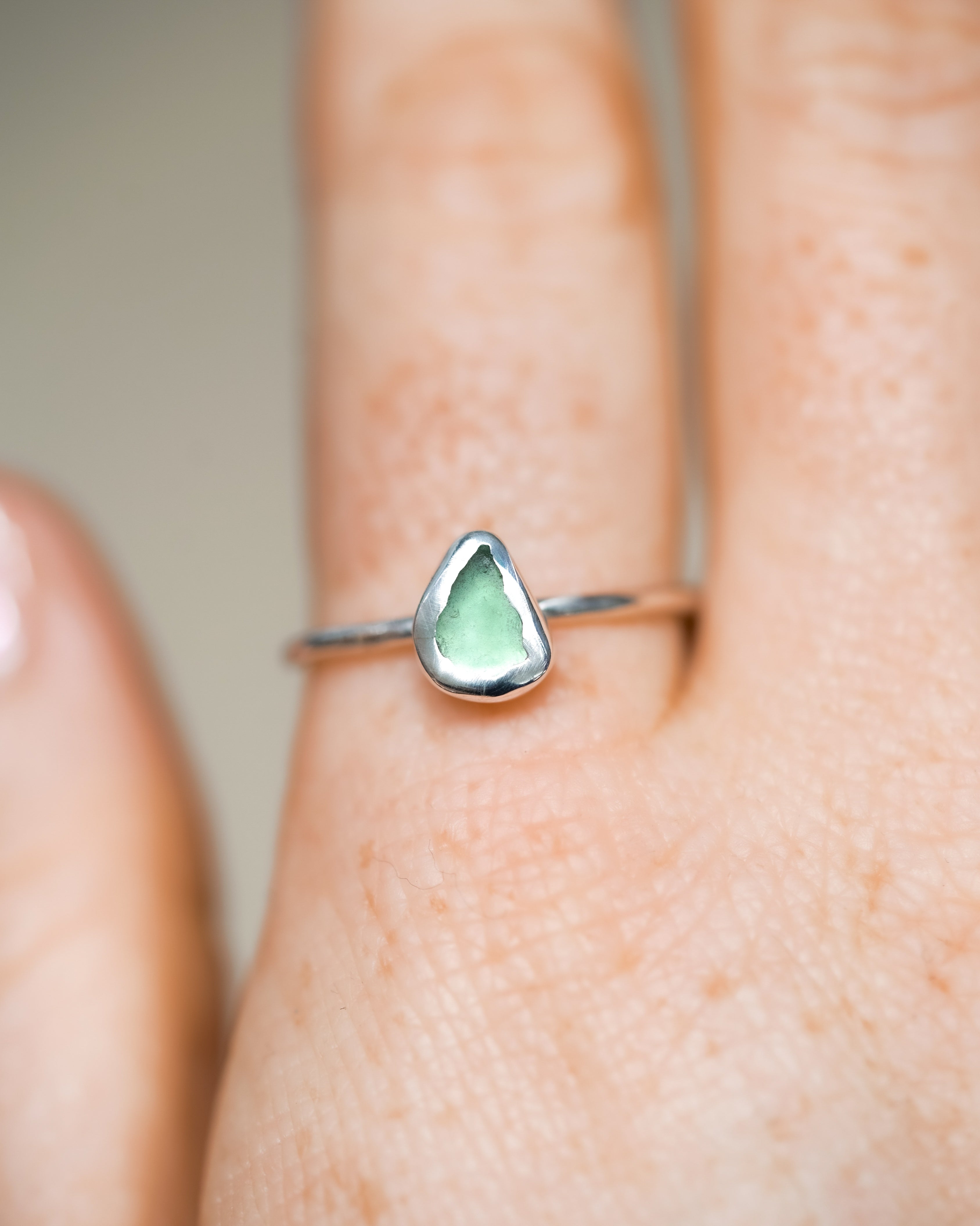Green Sea Glass Ring - Handmade from 925 Sterling Silver