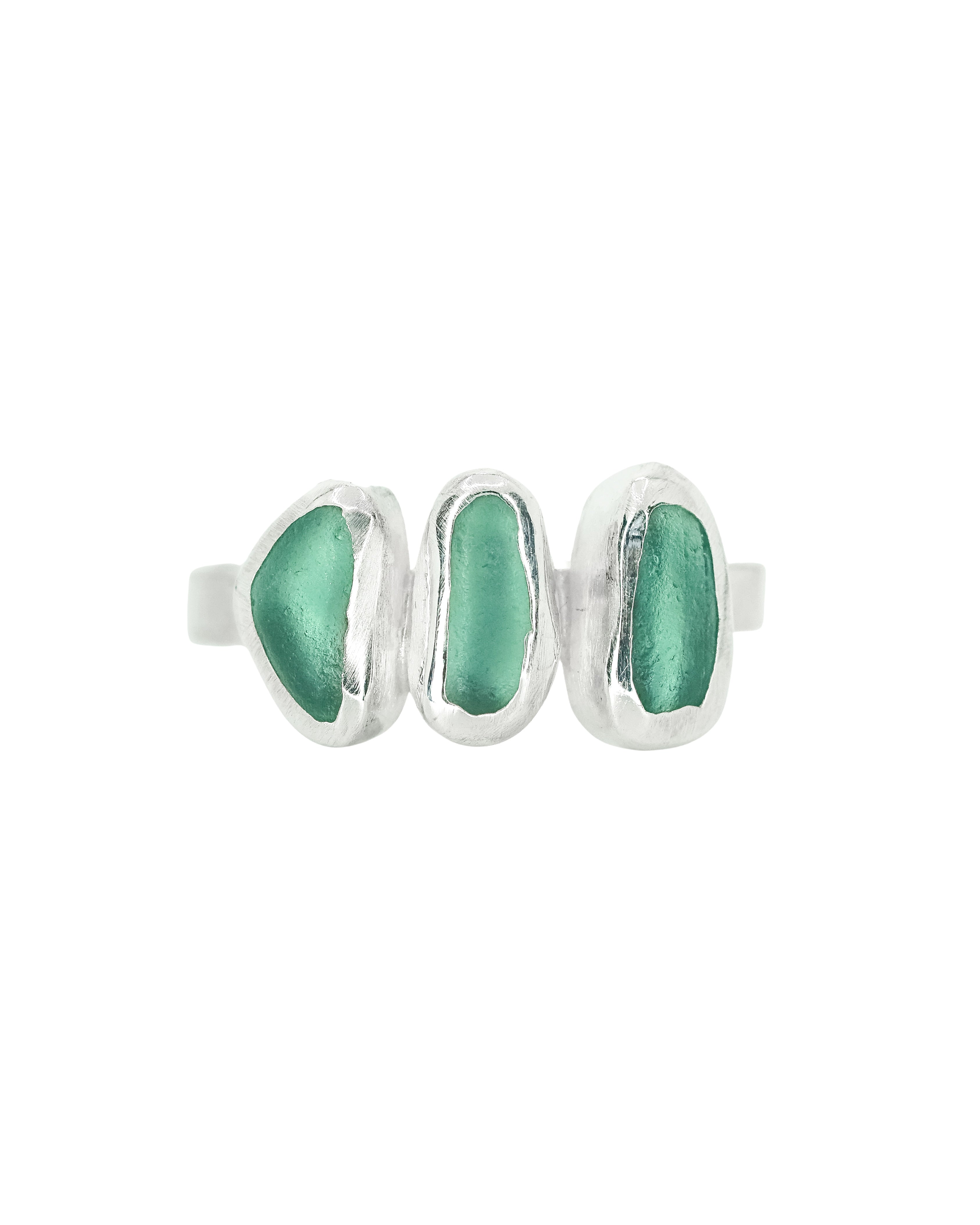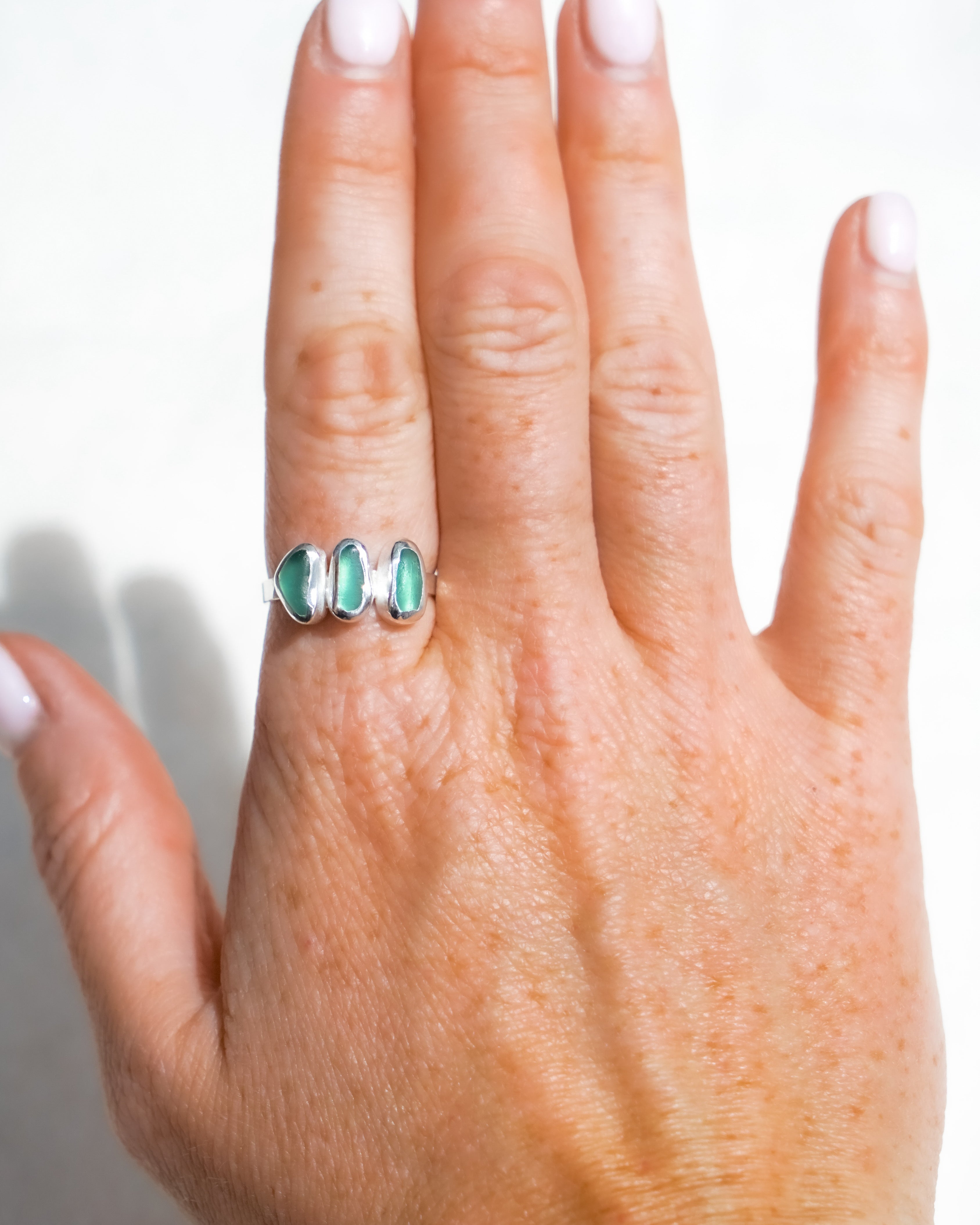 Green Sea Glass Ring - Handmade from 925 Sterling Silver