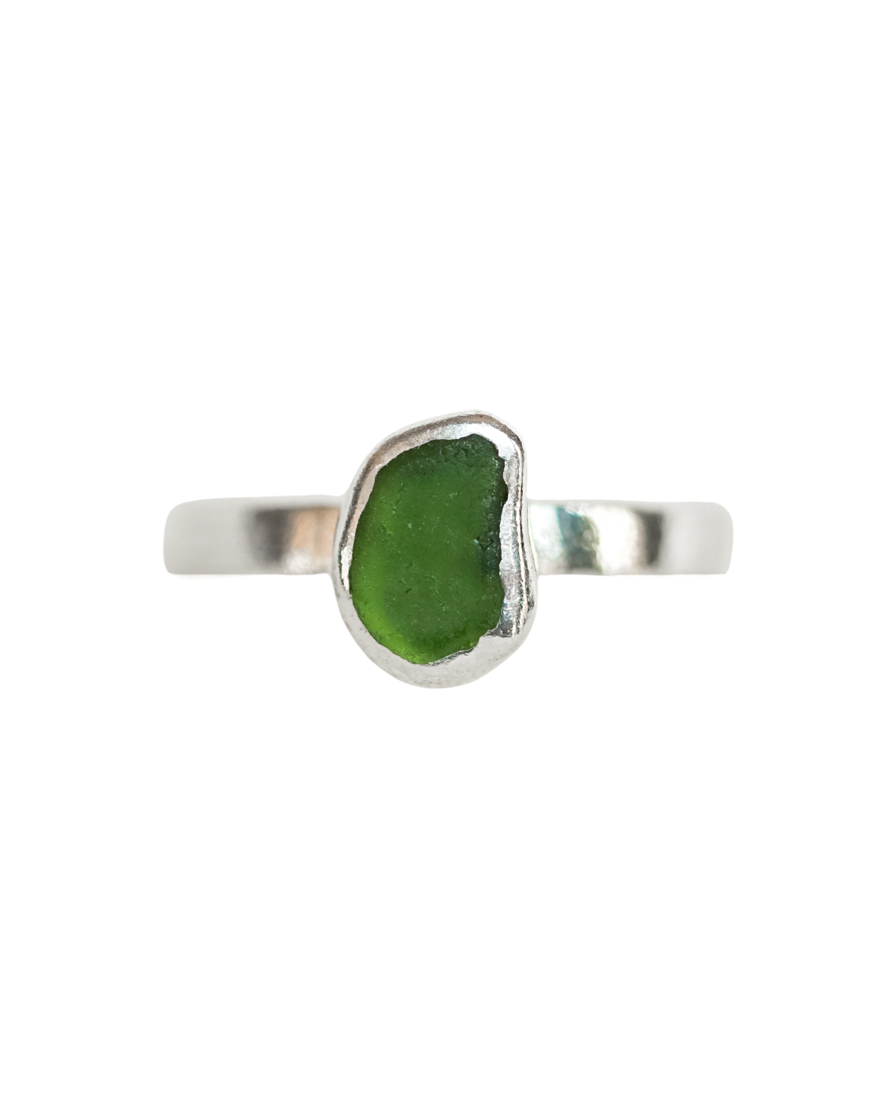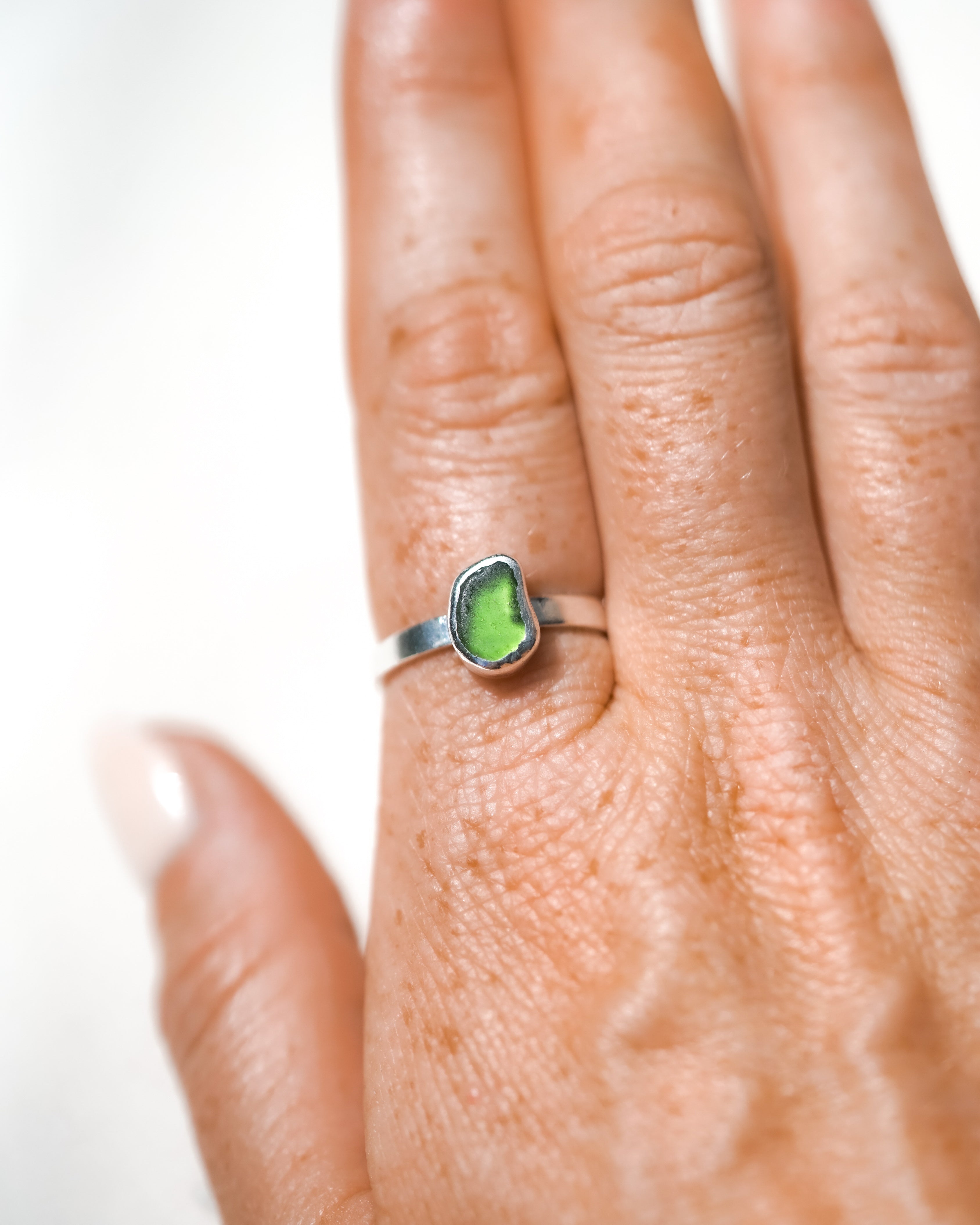 Green Sea Glass Ring - Handmade from 925 Sterling Silver