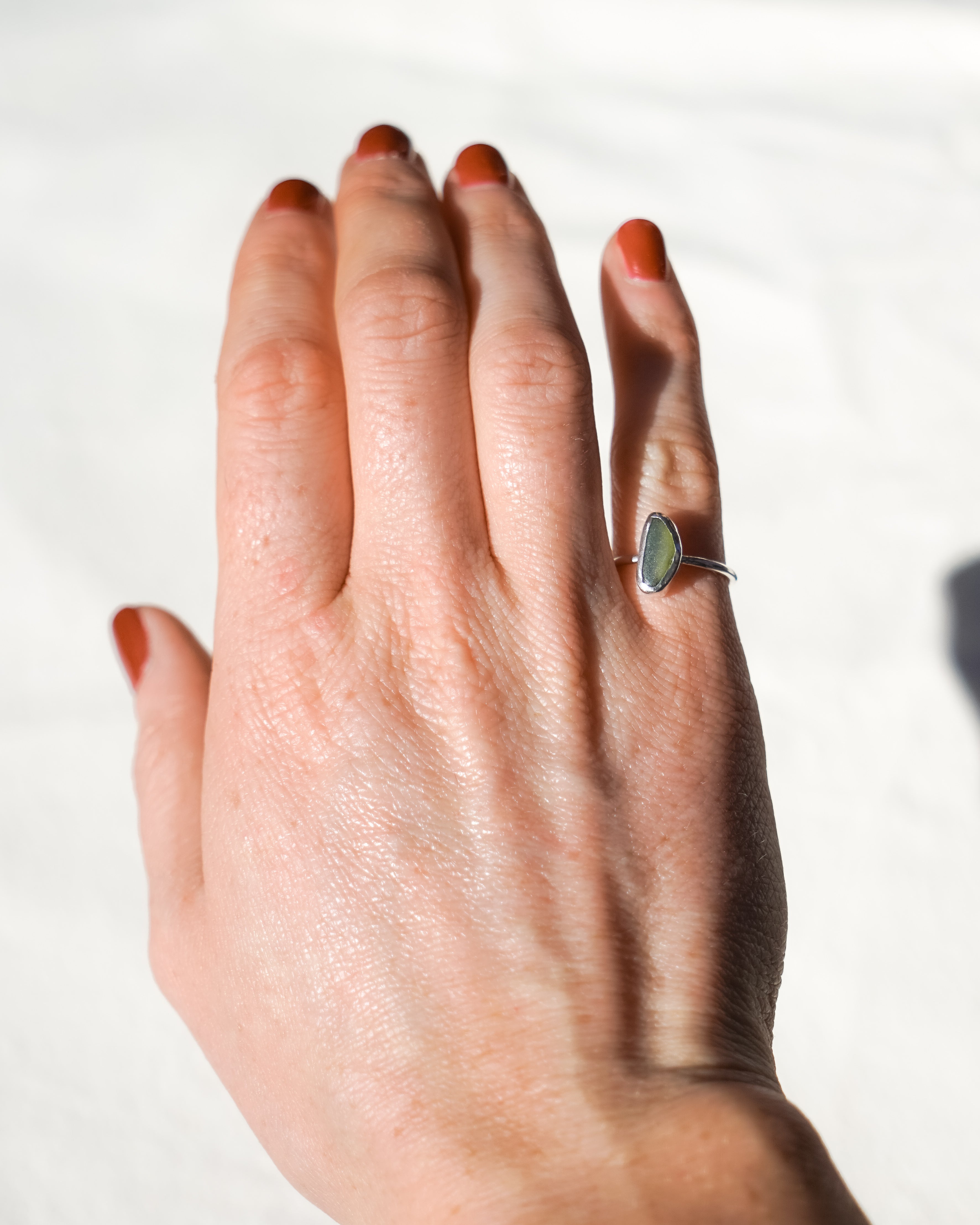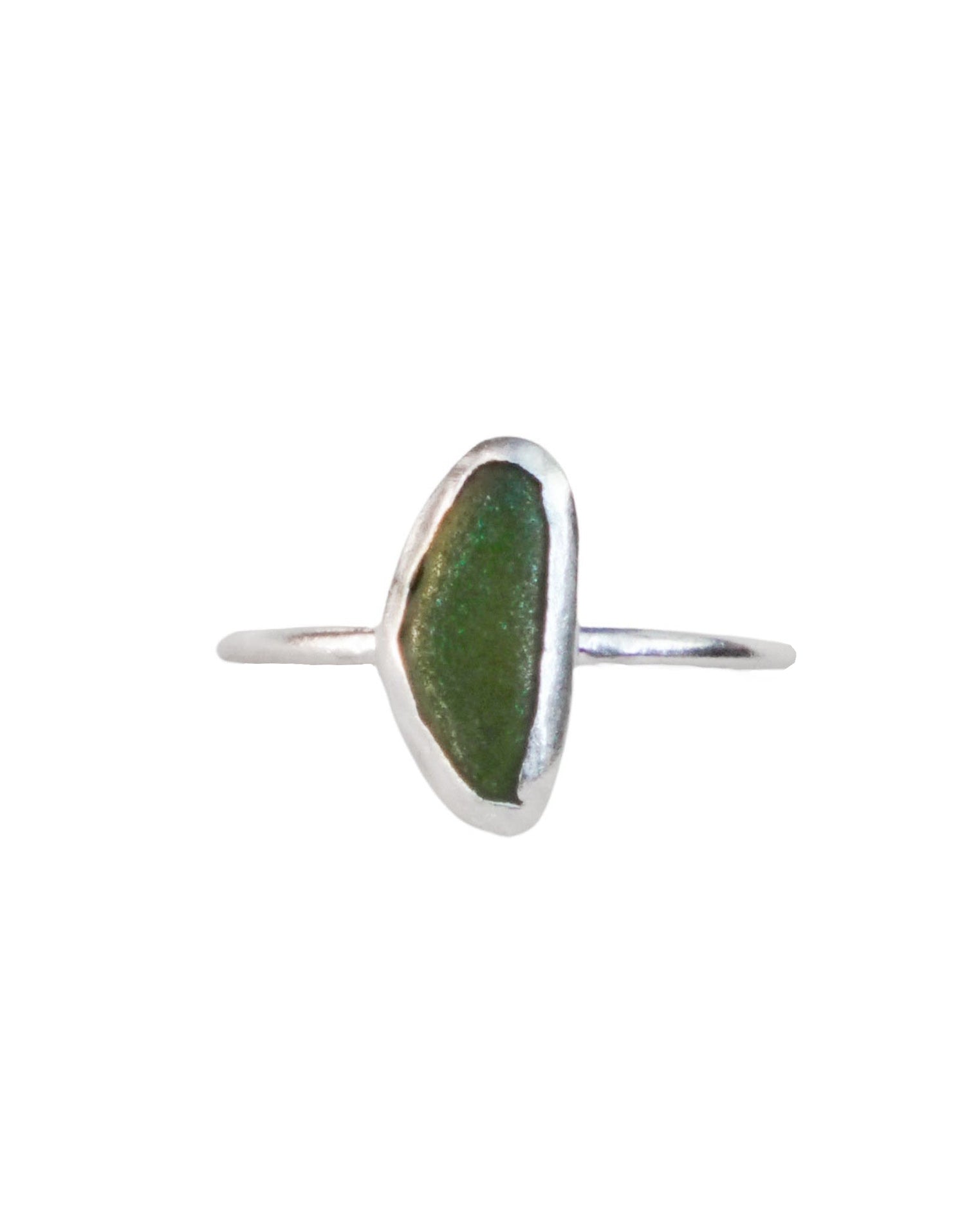 Green Sea Glass Ring - Handmade from 925 Sterling Silver, set on Half Round Wire