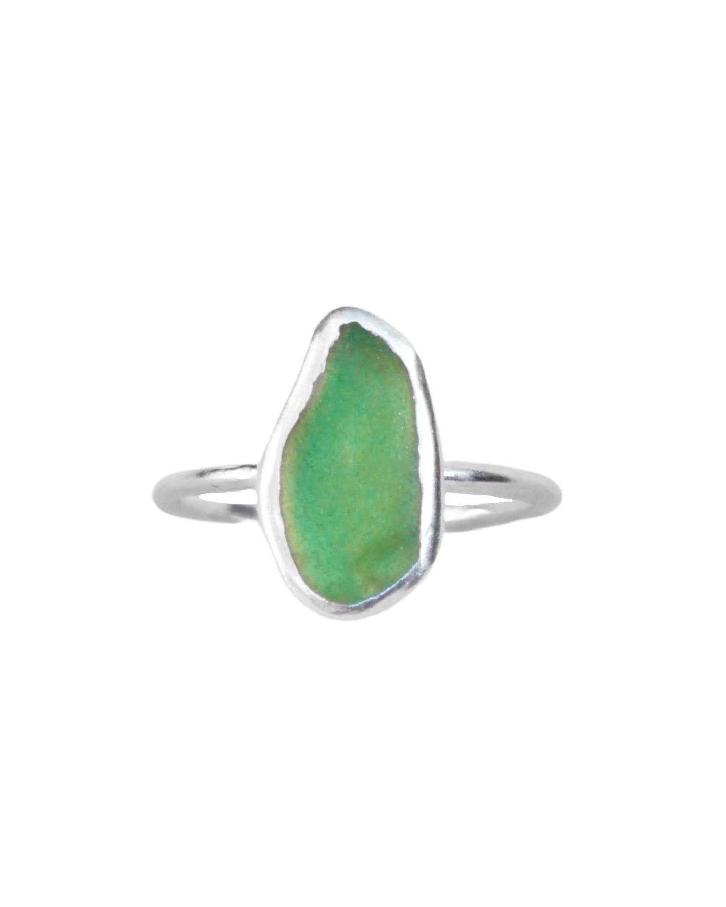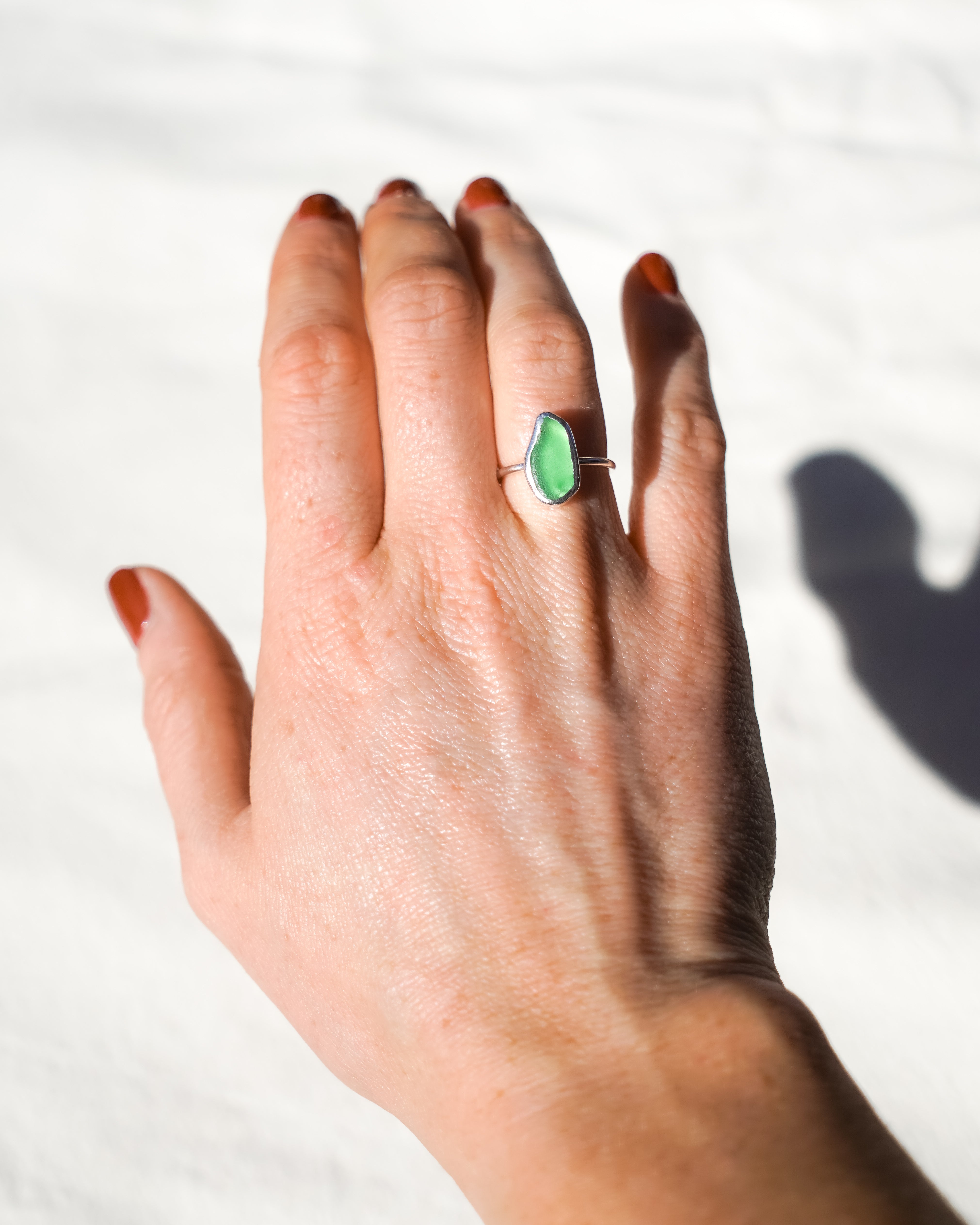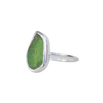 Green Sea Glass Ring - Handmade from 925 Sterling Silver, set on Half Round Wire