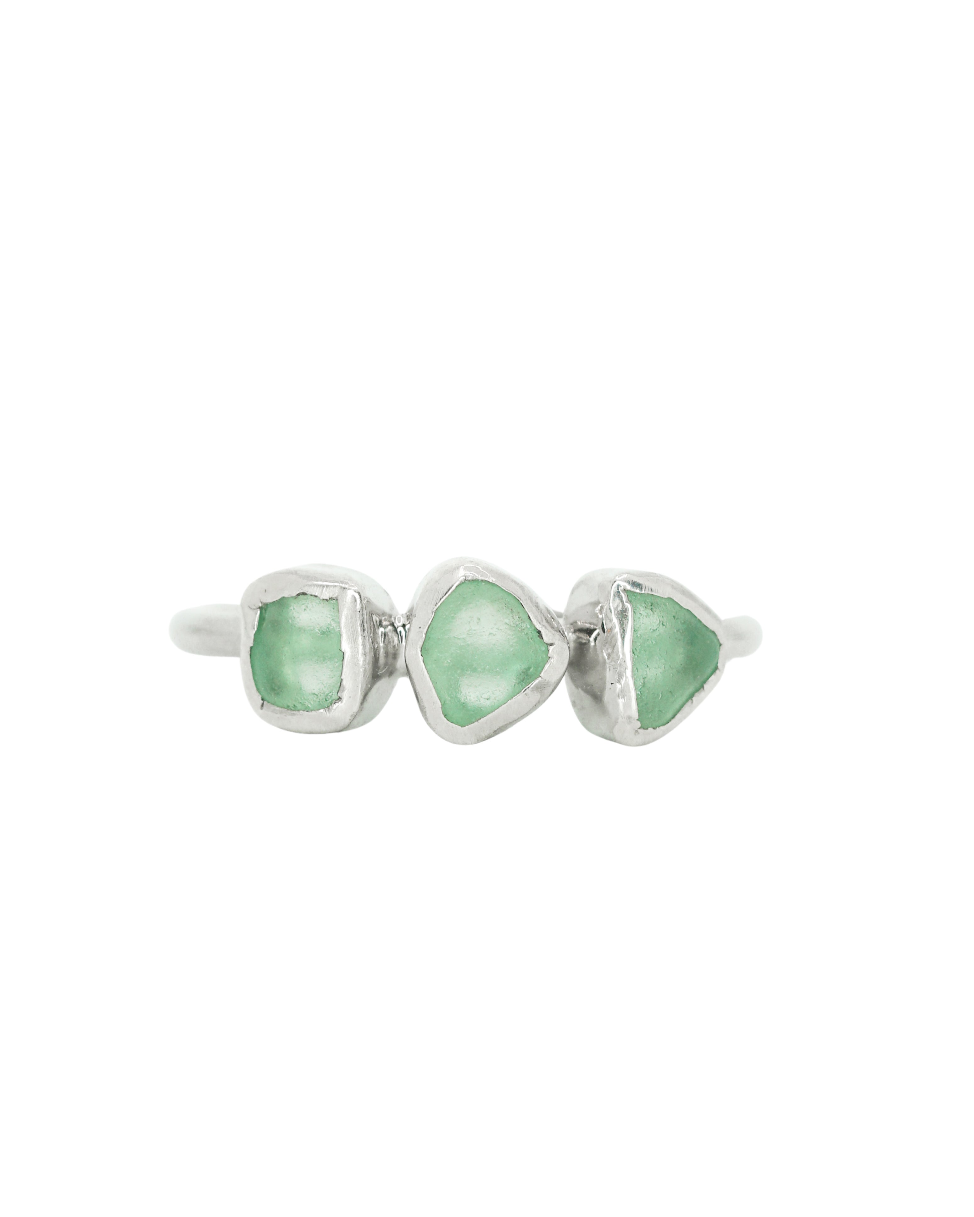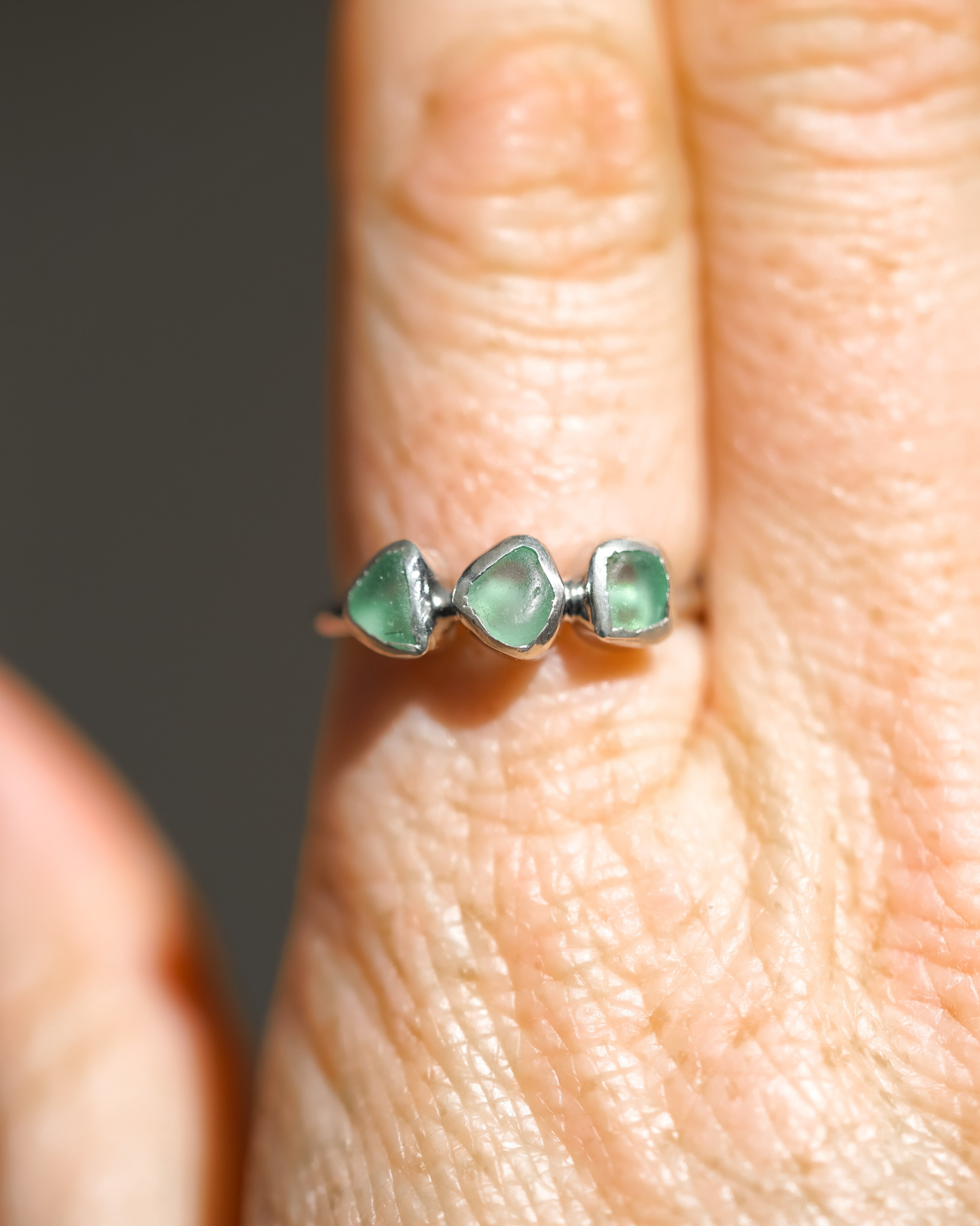 Green Sea Glass Ring - Handmade from 925 Sterling Silver