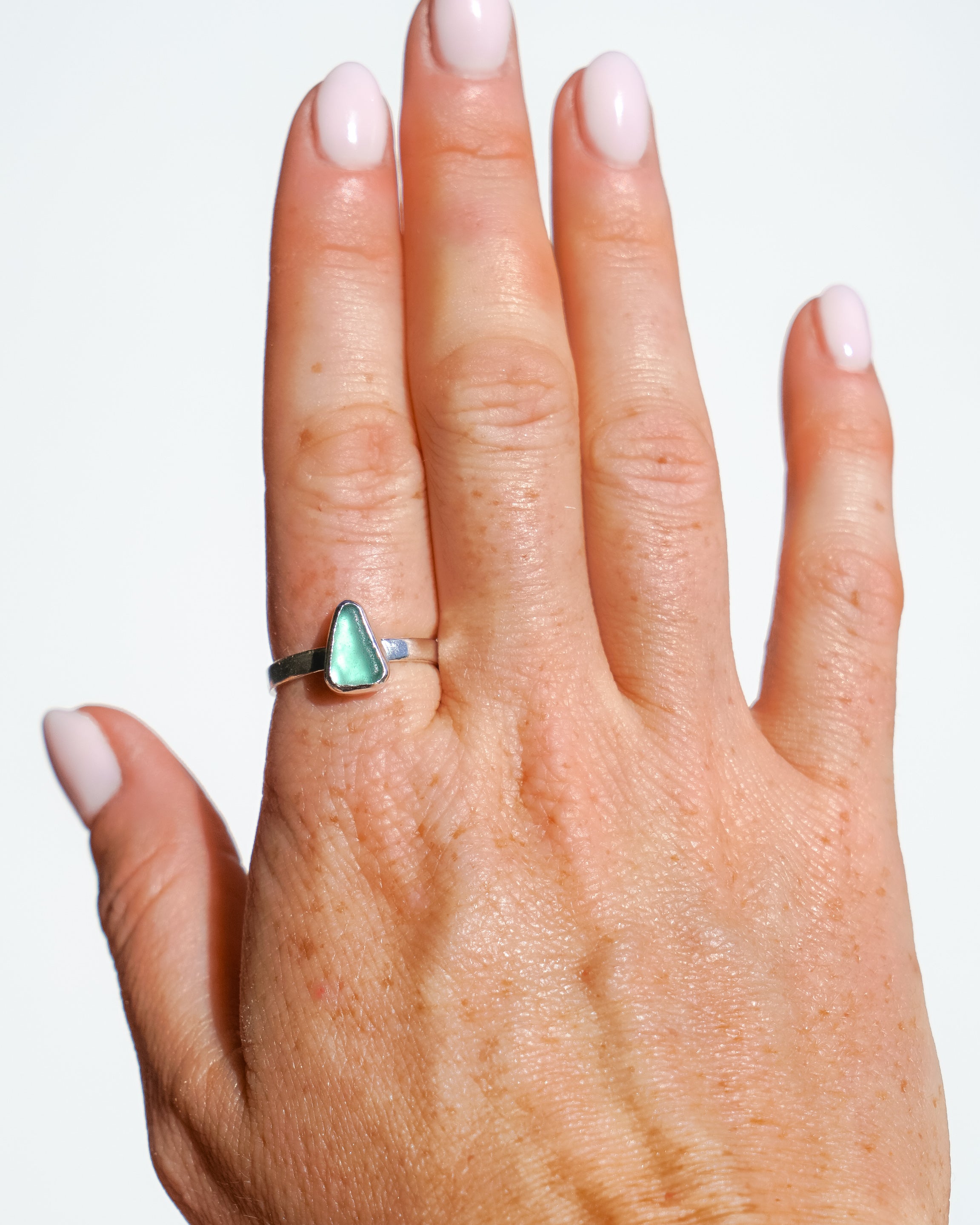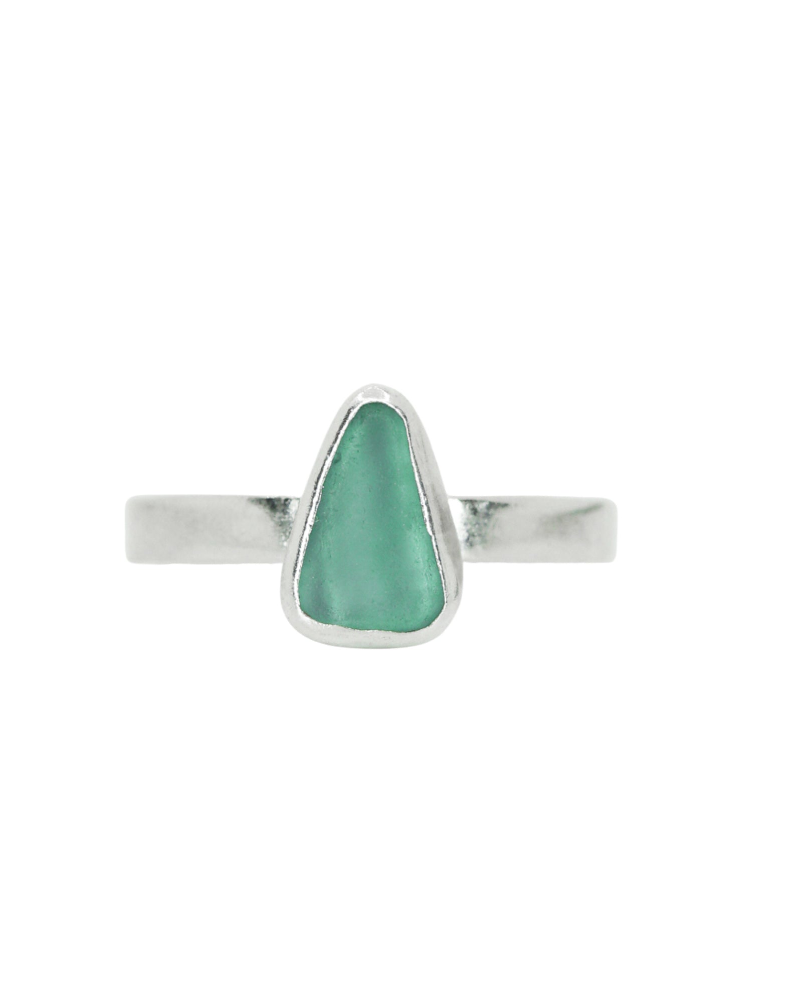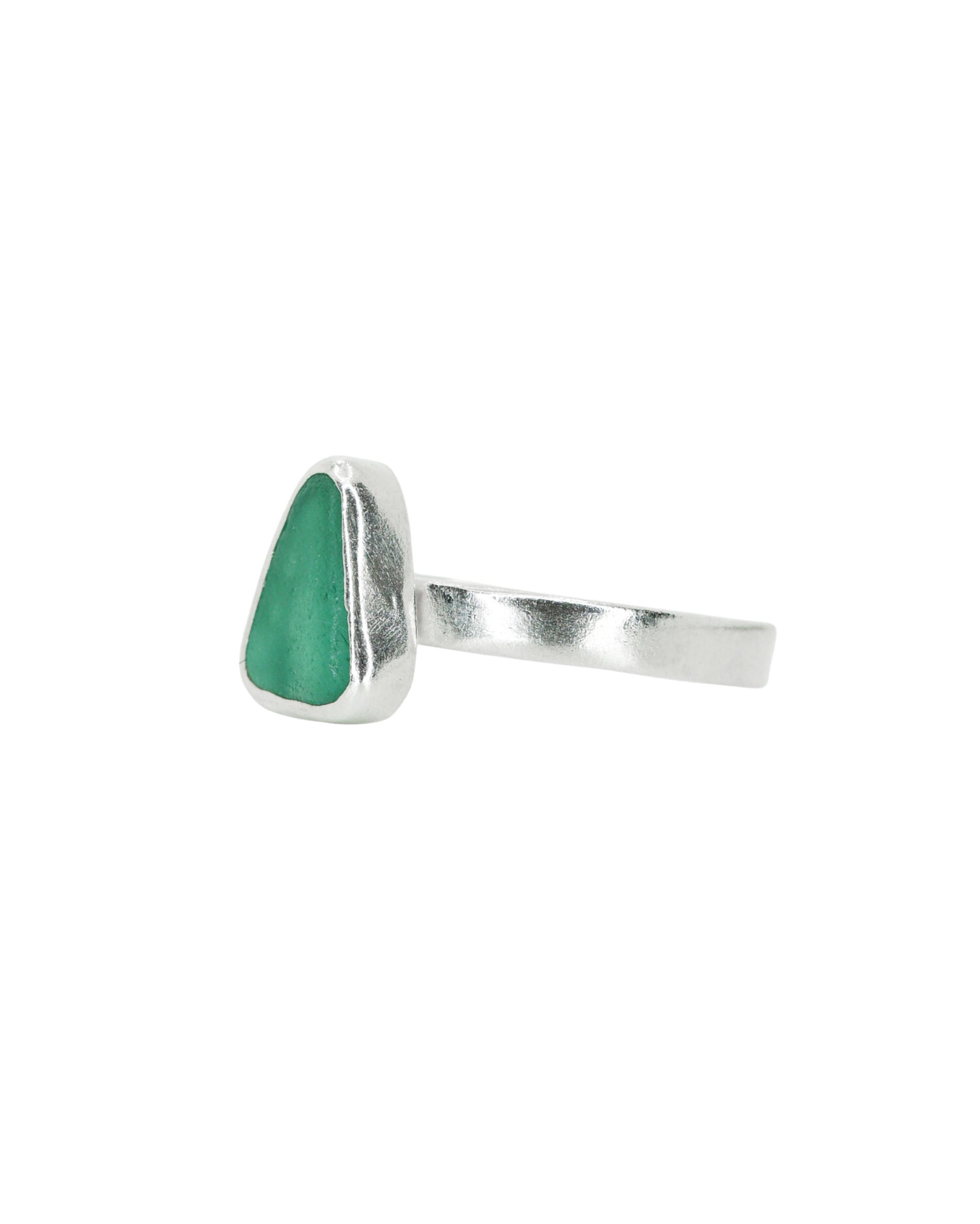 Green Sea Glass Ring - Handmade from 925 Sterling Silver
