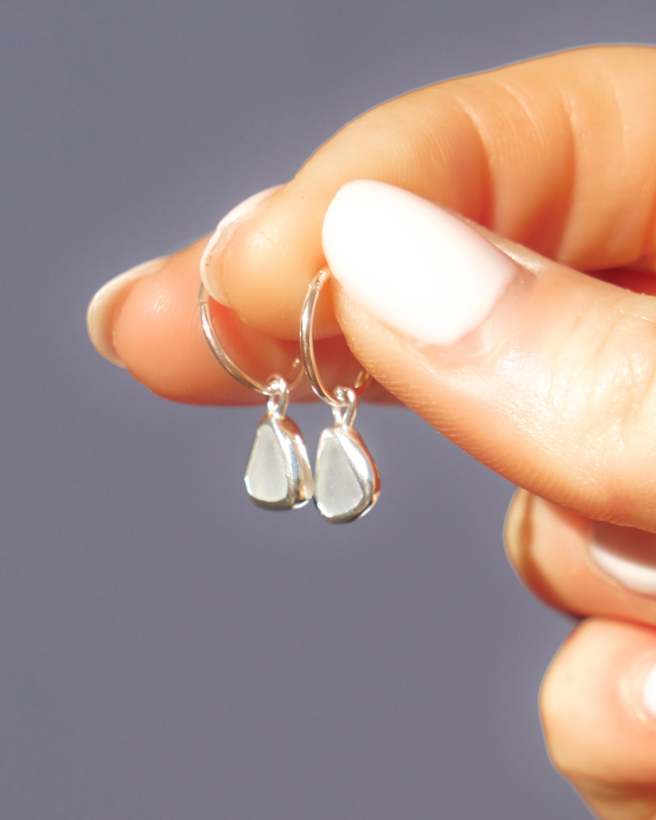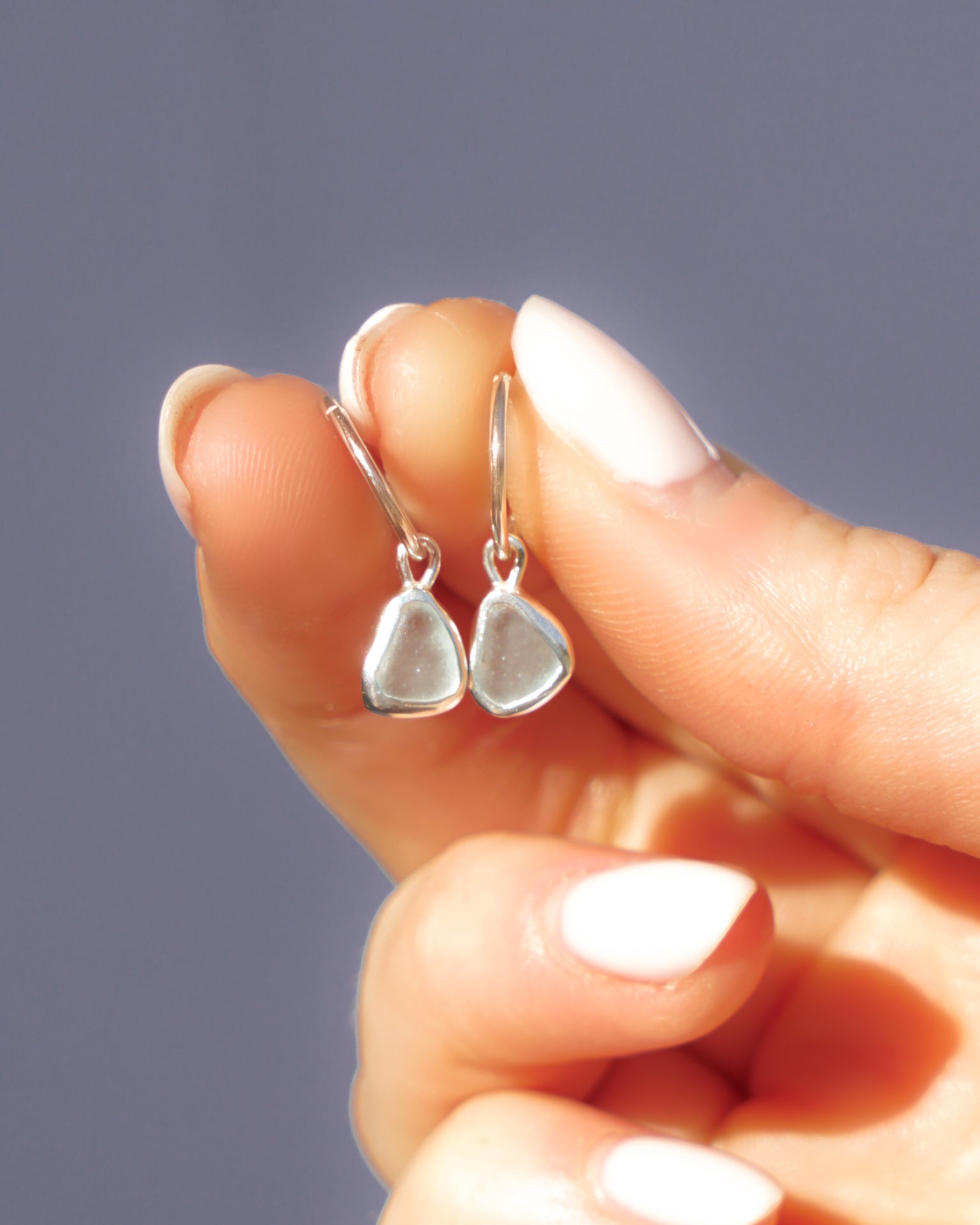 Sea Glass Jewellery (Closed Back Designs) - Closed back sea glass pieces should be kept out of water whenever possible. As the glass is transparent, moisture may affect the colouring due to the silver underneath, mainly the lighter shades. To help preserve their beauty, we recommend removing them before showering or swimming.