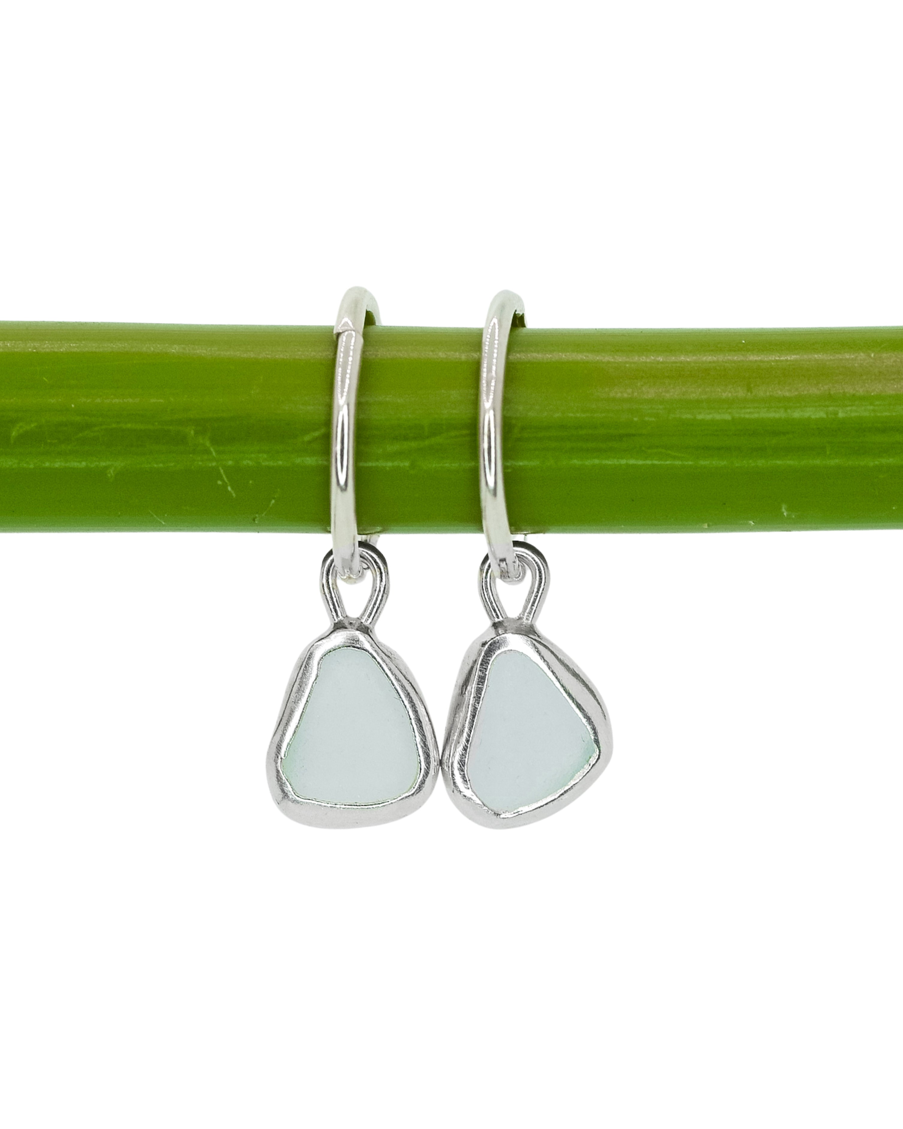 Light Blue Sea Glass Hoops - Handmade from 925 sterling silver