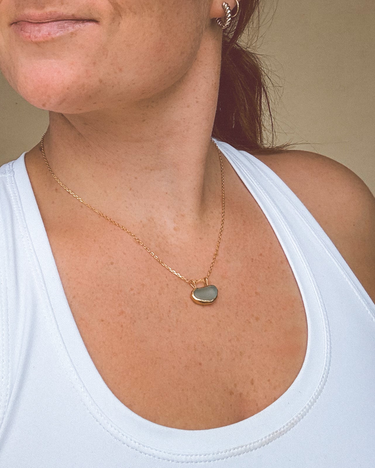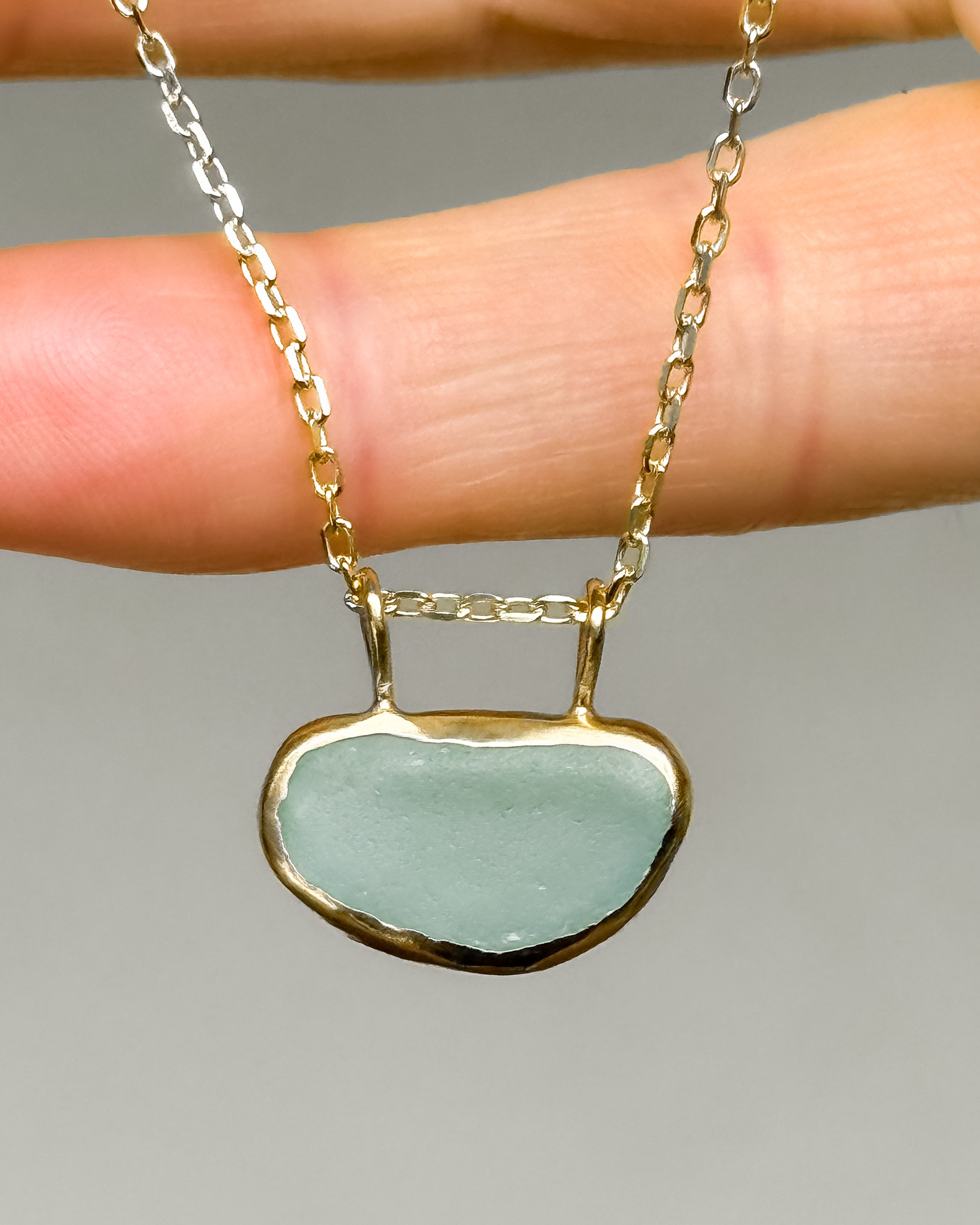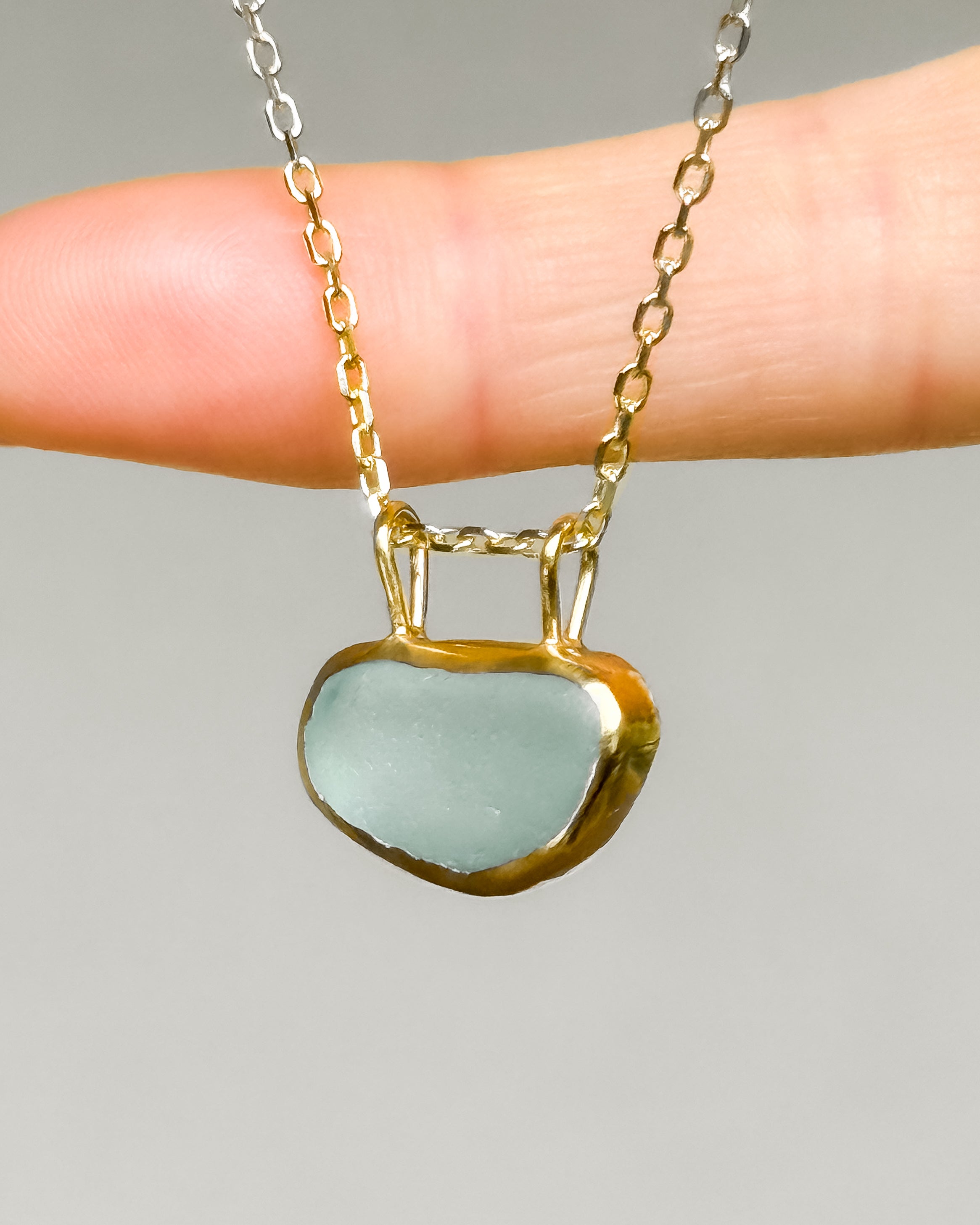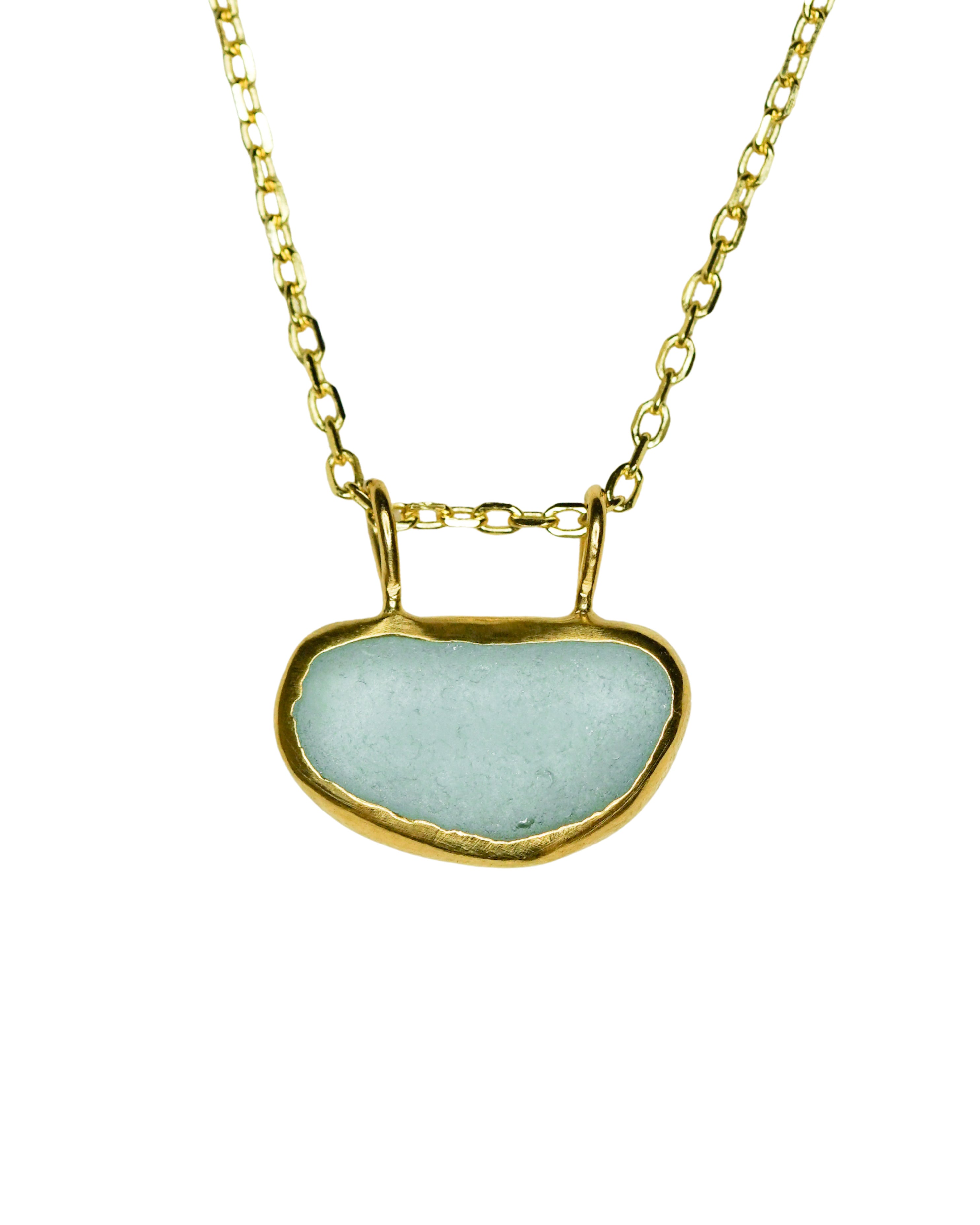 Light Blue Sea Glass Necklace - Gold Vermeil