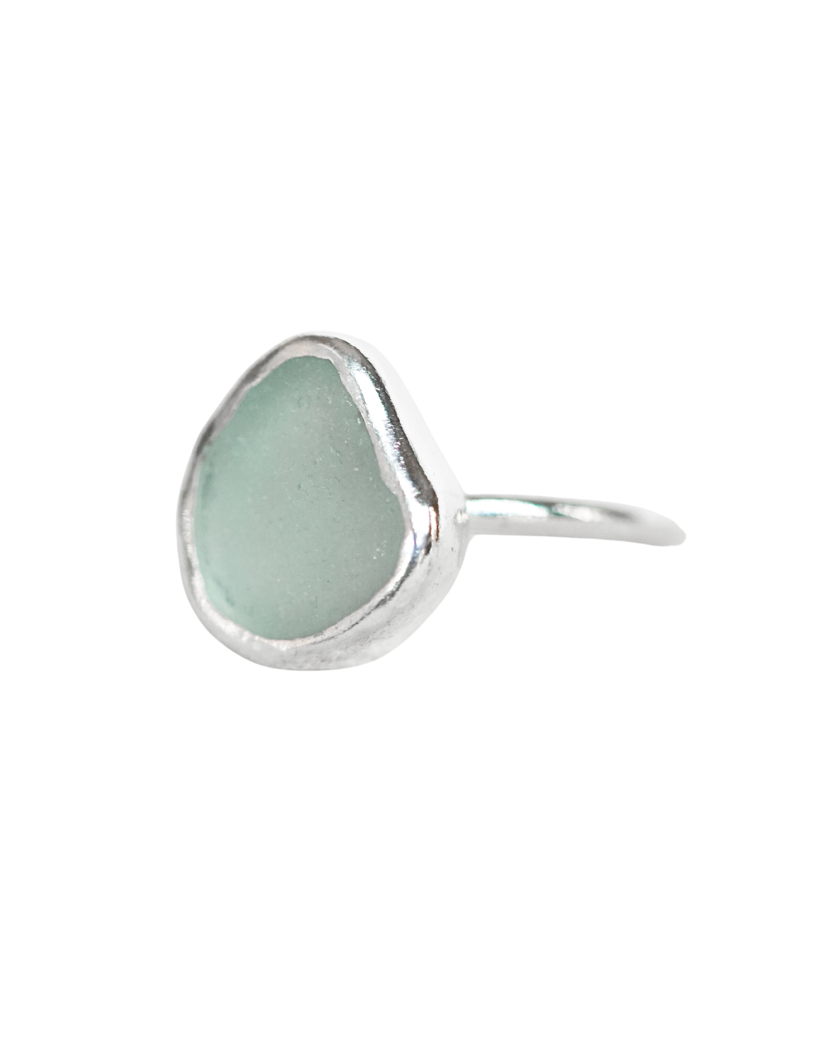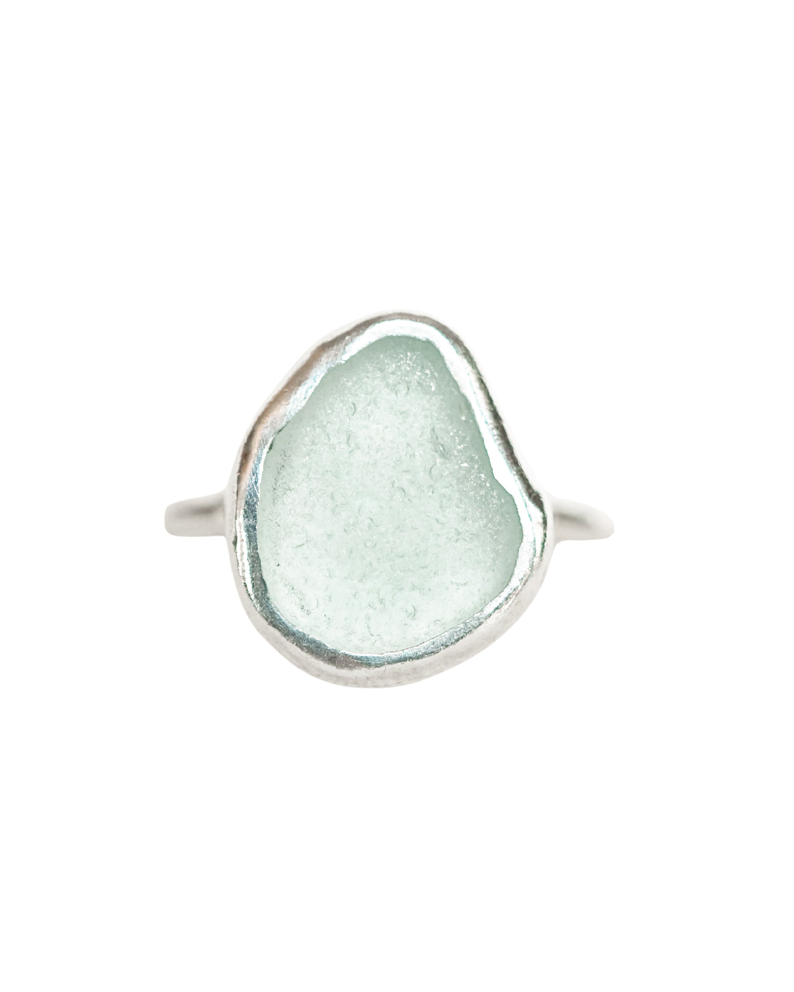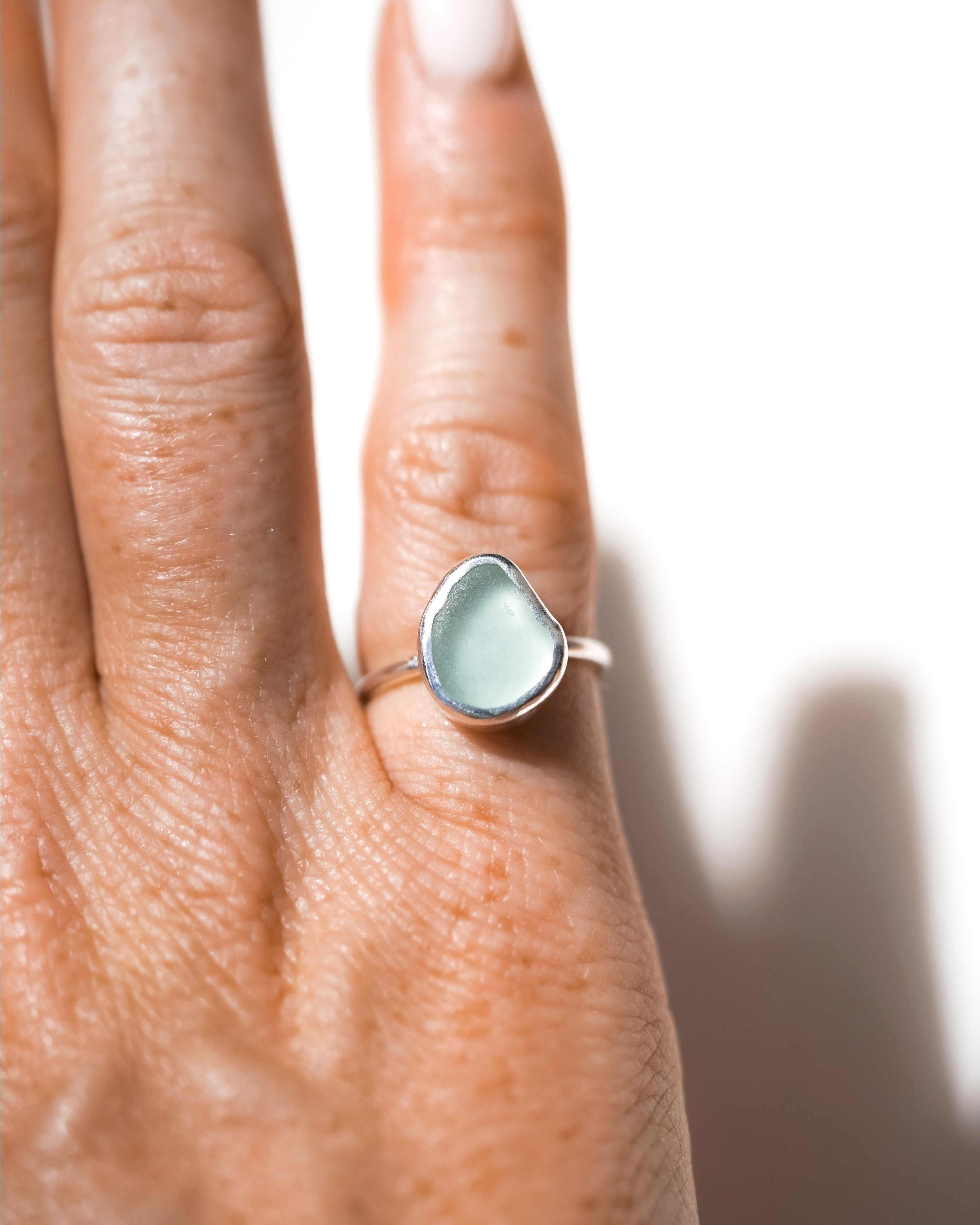 Light Blue Sea Glass Ring - Handmade from 925 Sterling Silver