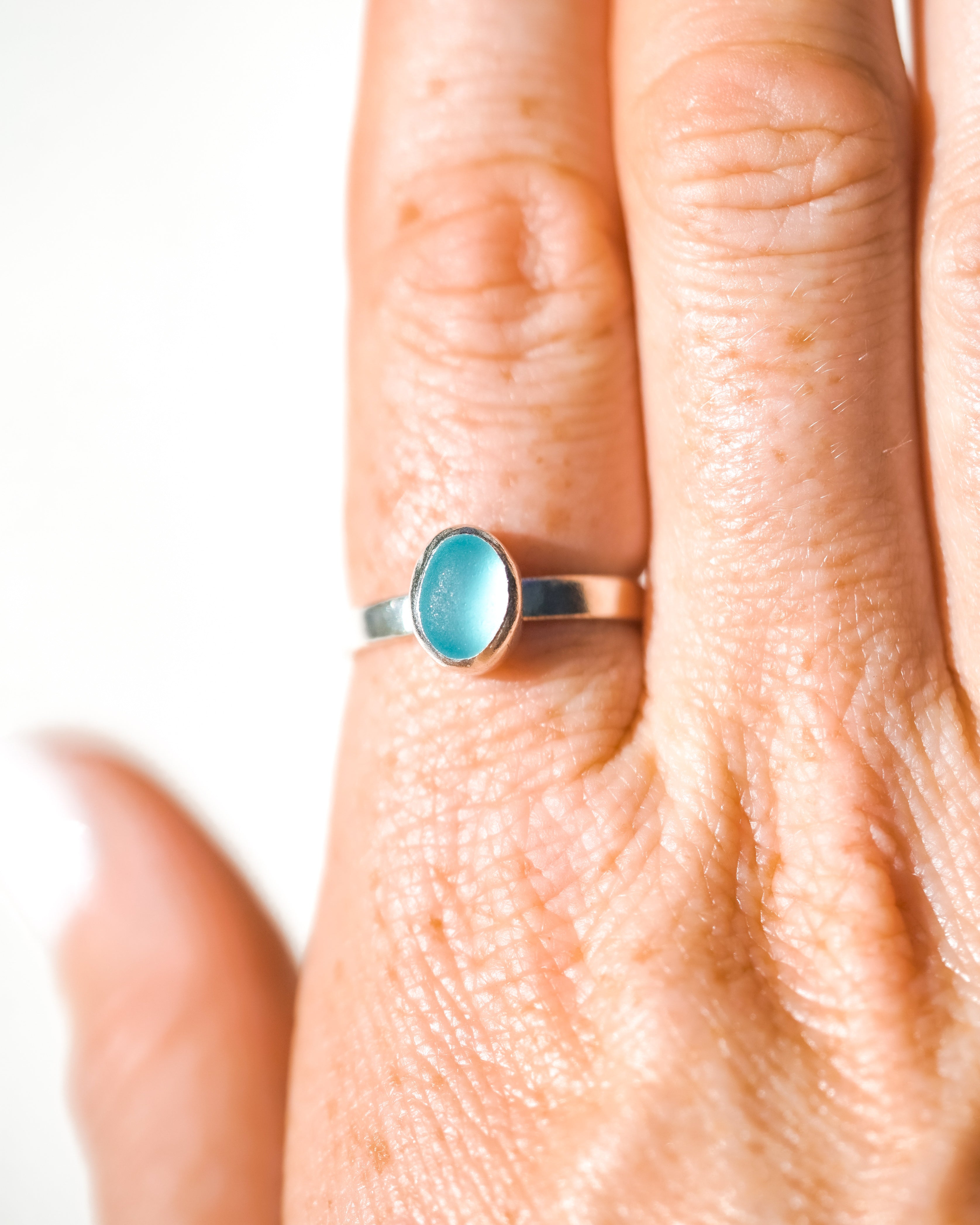 Light Blue Sea Glass Ring - Handmade from 925 Sterling Silver