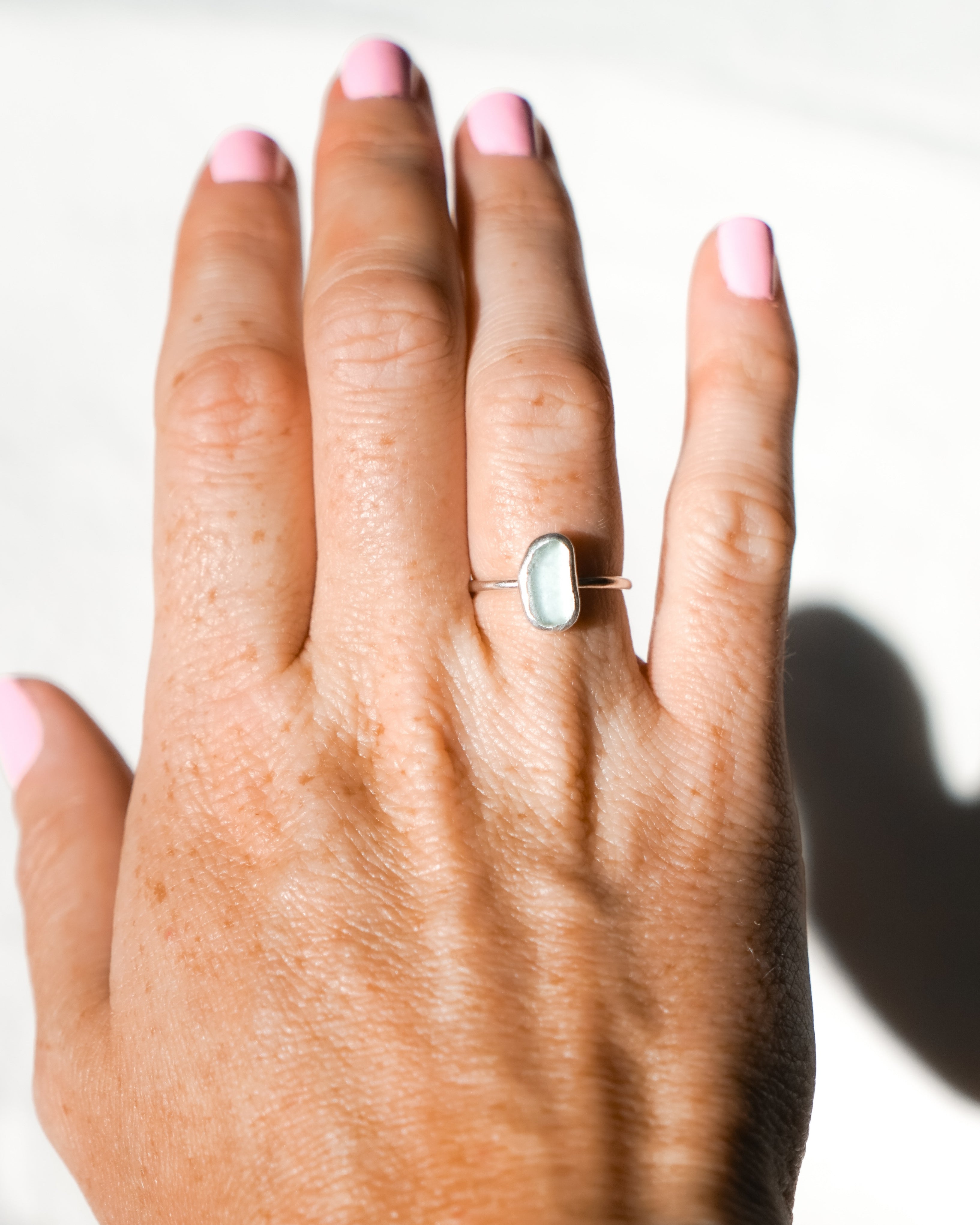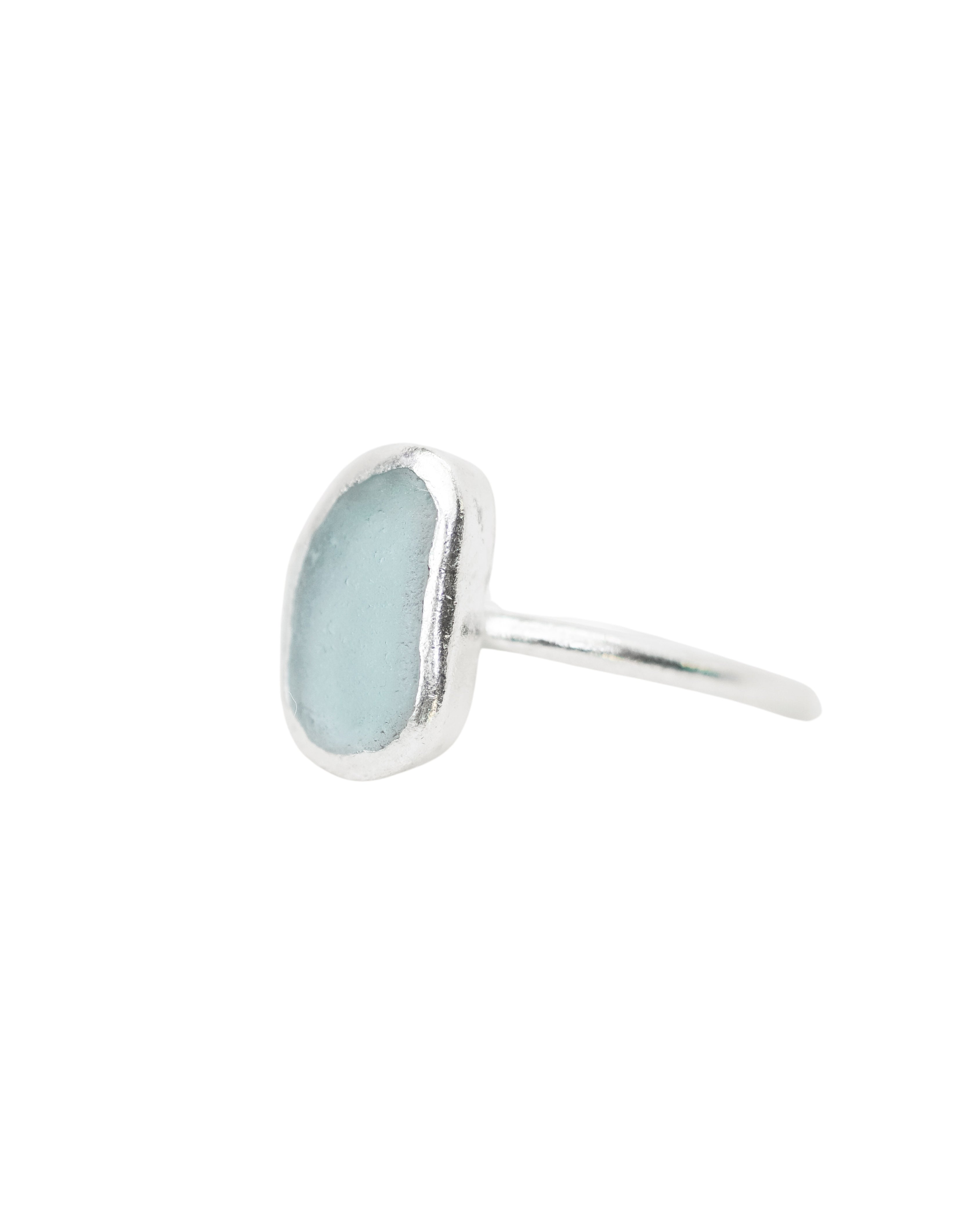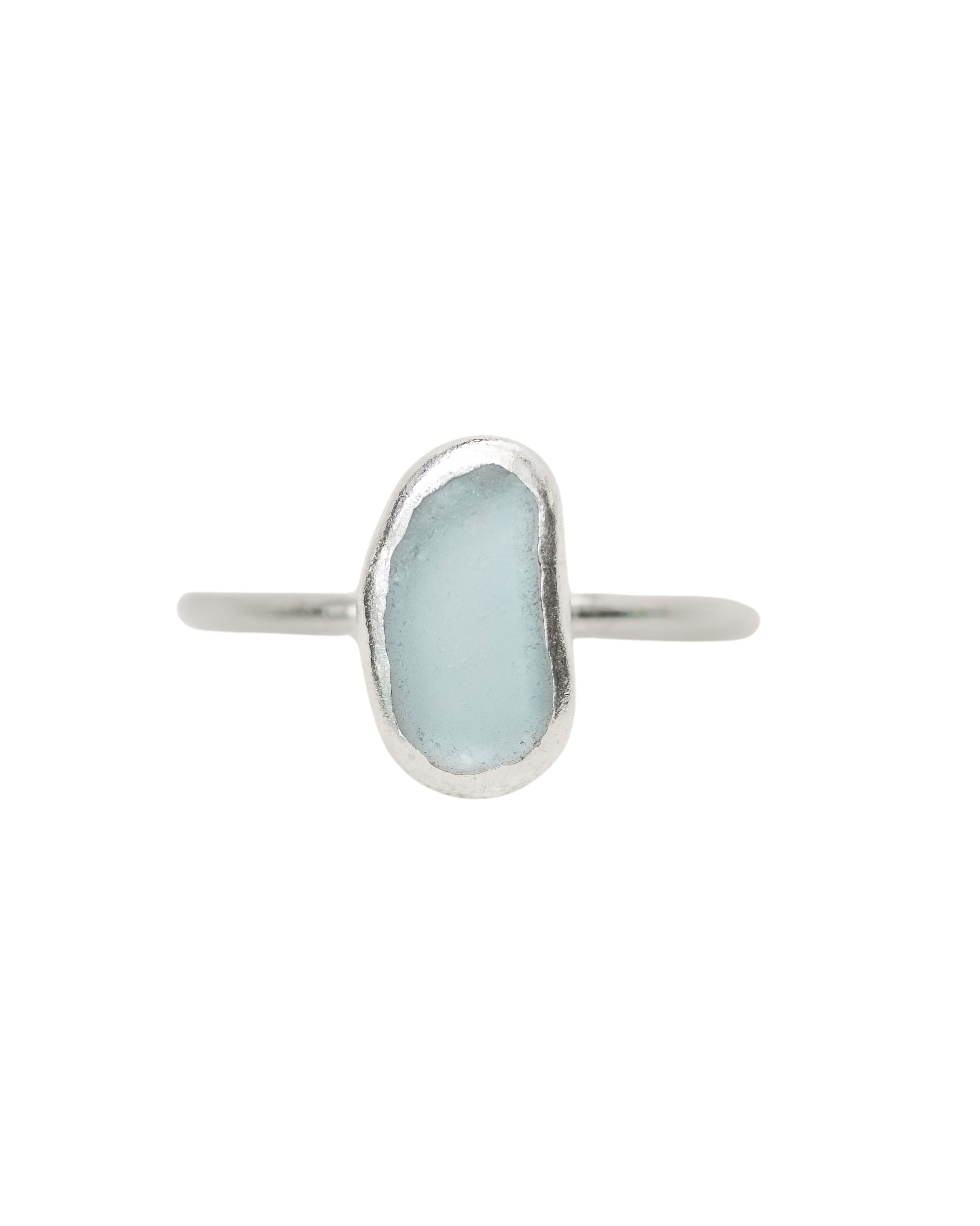 Light Blue Sea Glass Ring - Handmade from 925 Sterling Silver