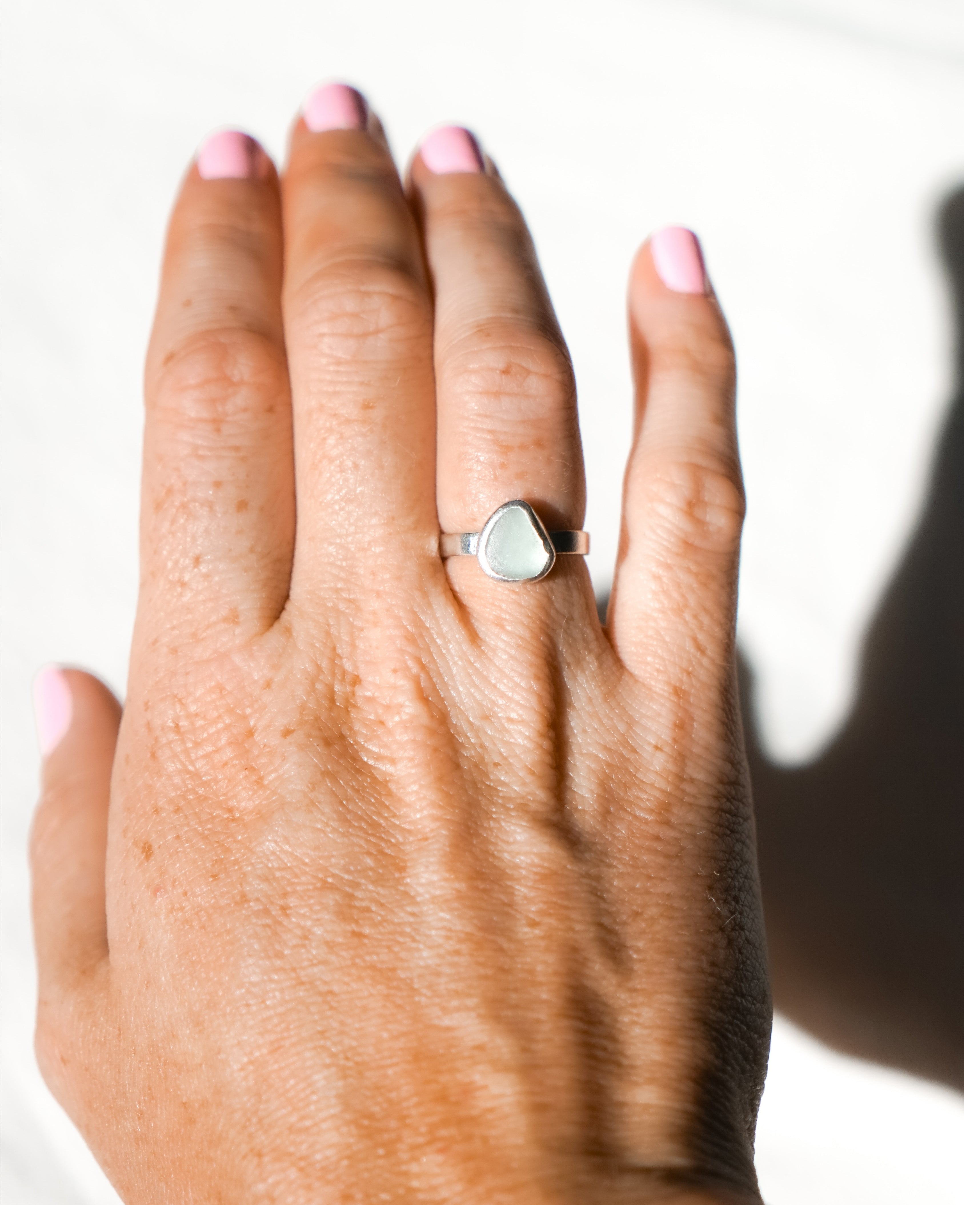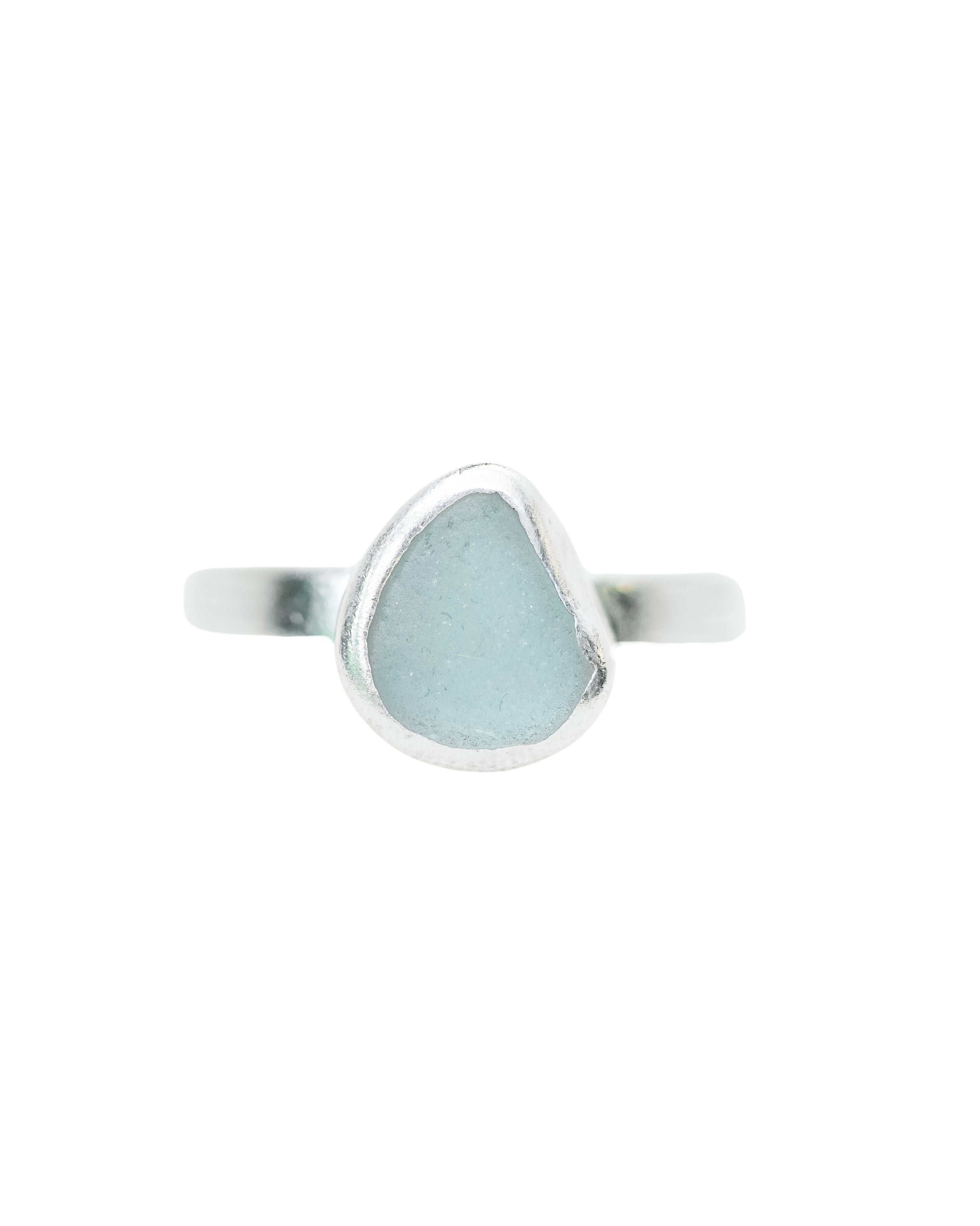 Light Blue Sea Glass Ring - Handmade from 925 Sterling Silver