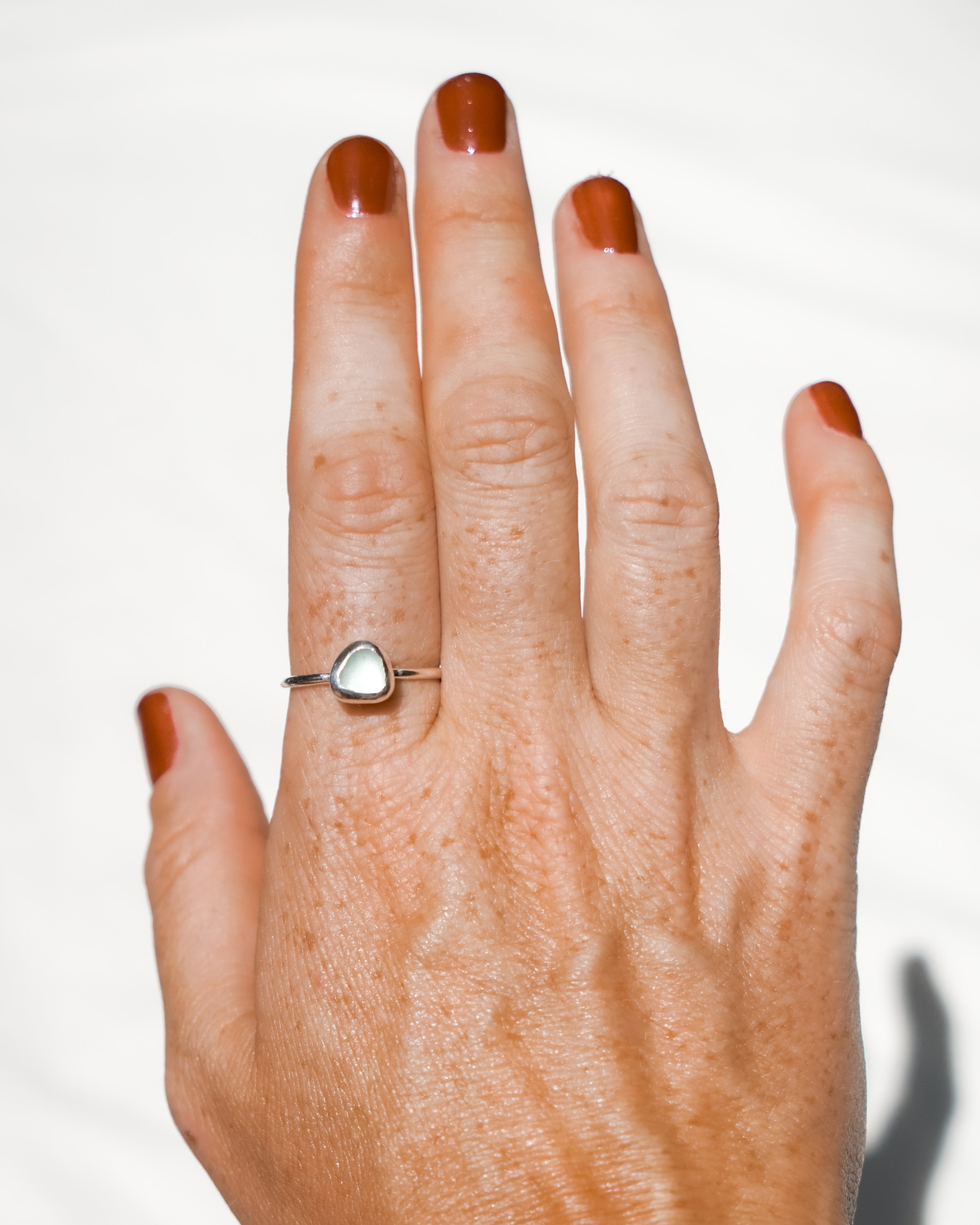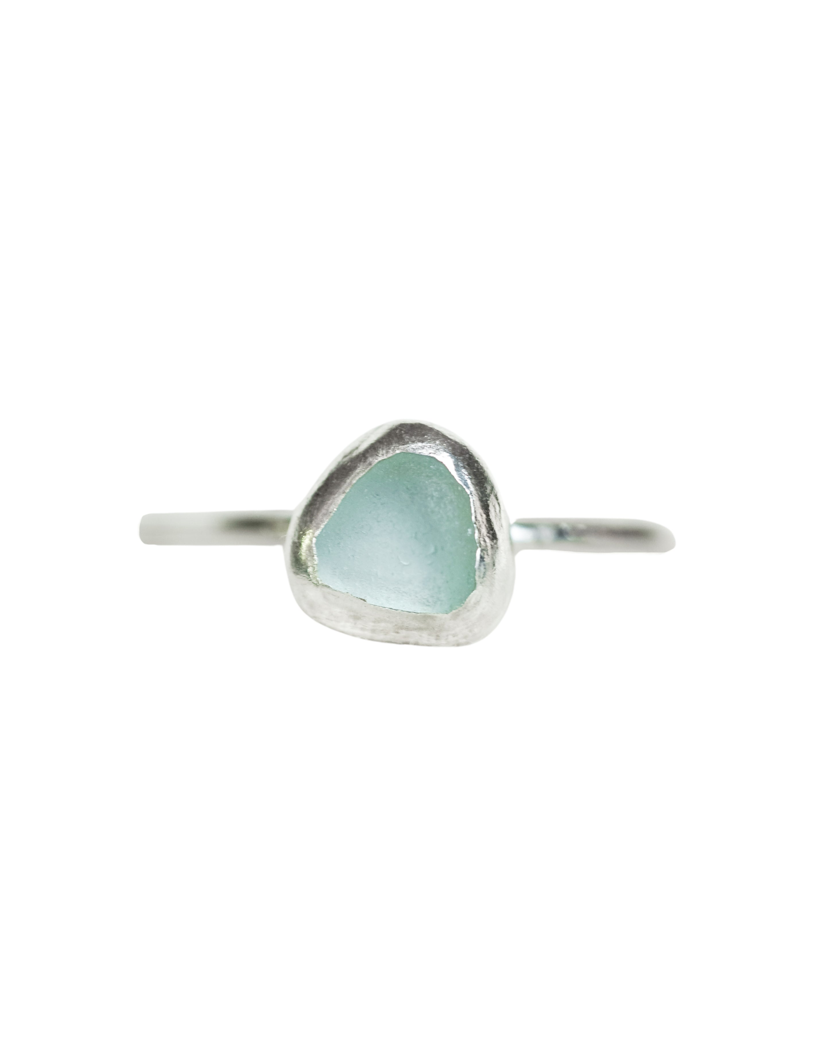 Light Blue Sea Glass Ring - Handmade from 925 Sterling Silver