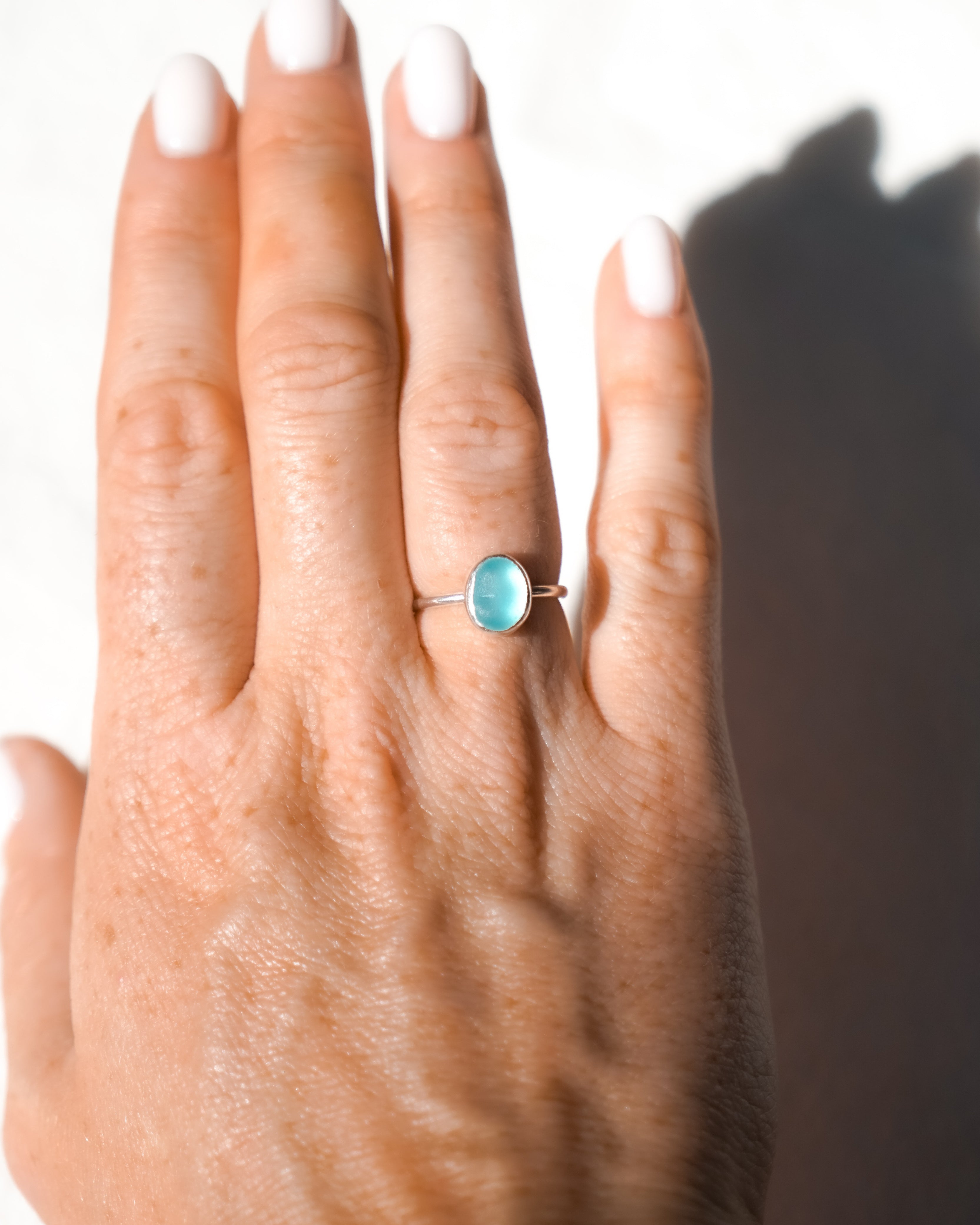 Light Blue Sea Glass Ring - Handmade from 925 Sterling Silver
