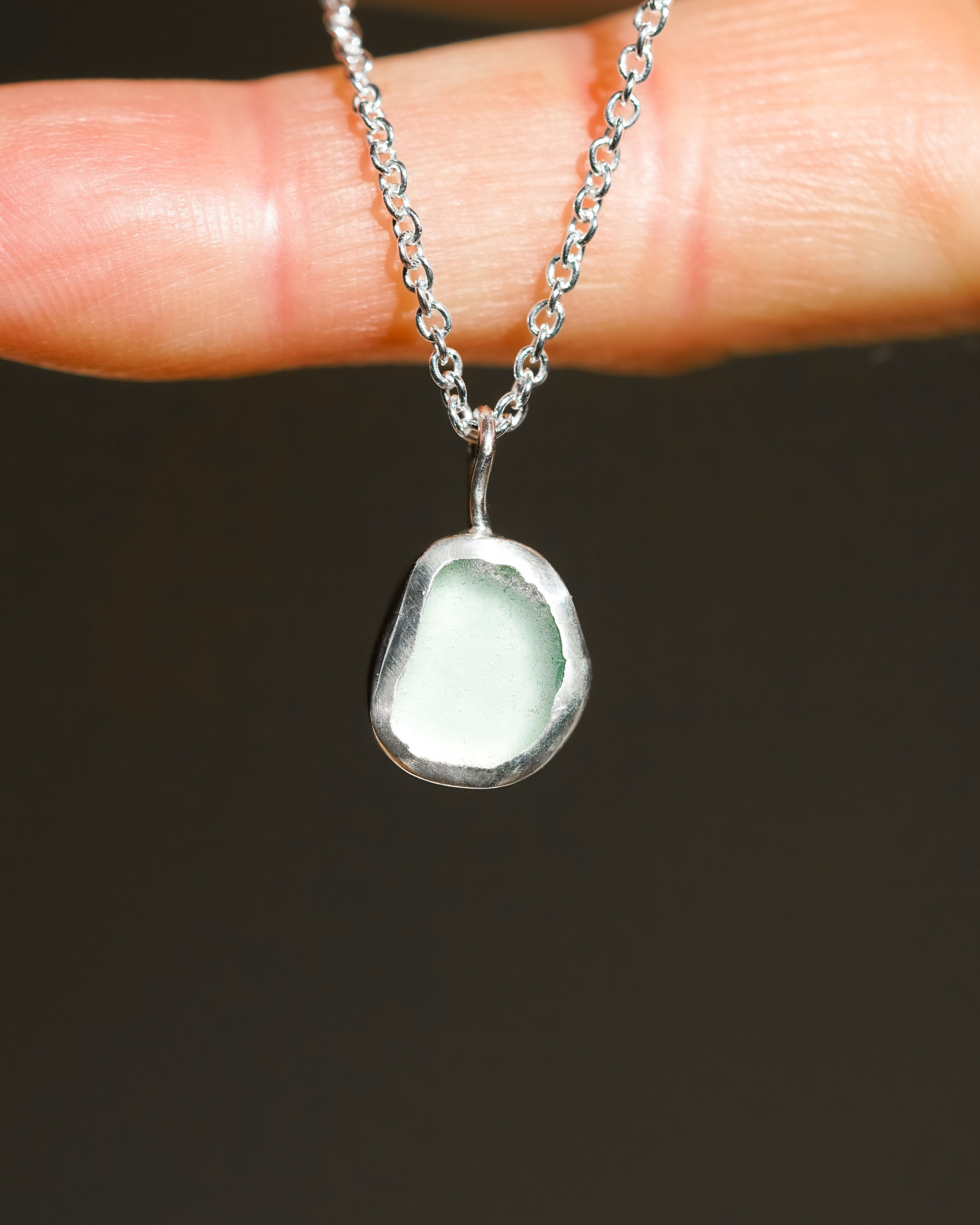 Light Blue Sea Glass Necklace - Handmade from 925 sterling silver