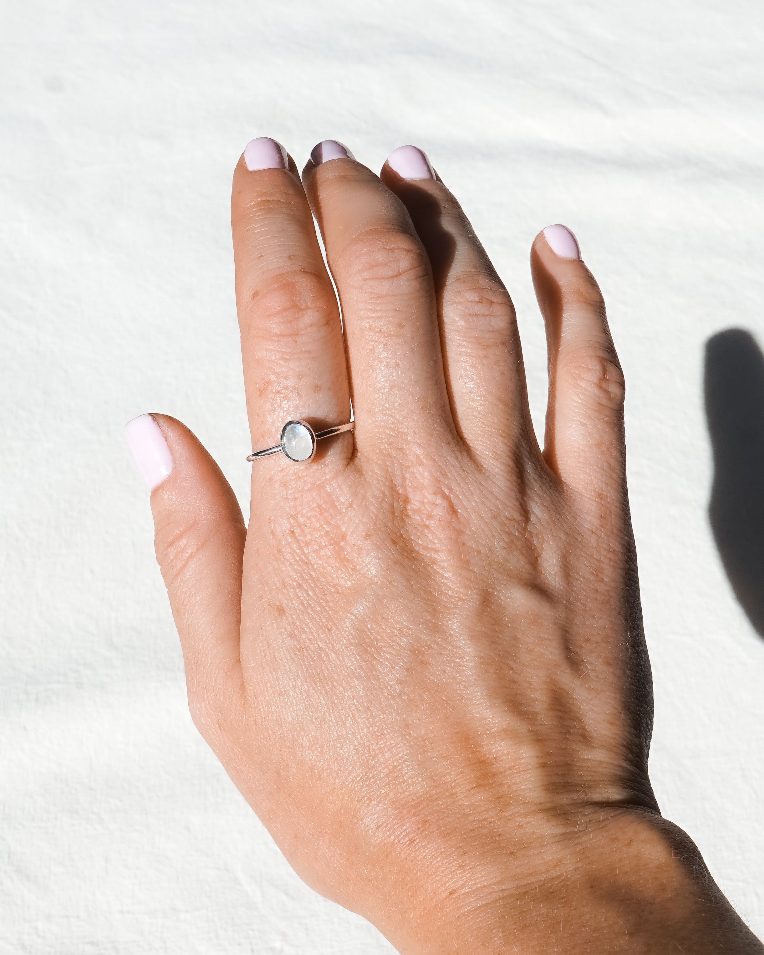 Oval Rainbow Moonstone Ring - Handmade from 925 Sterling Silver