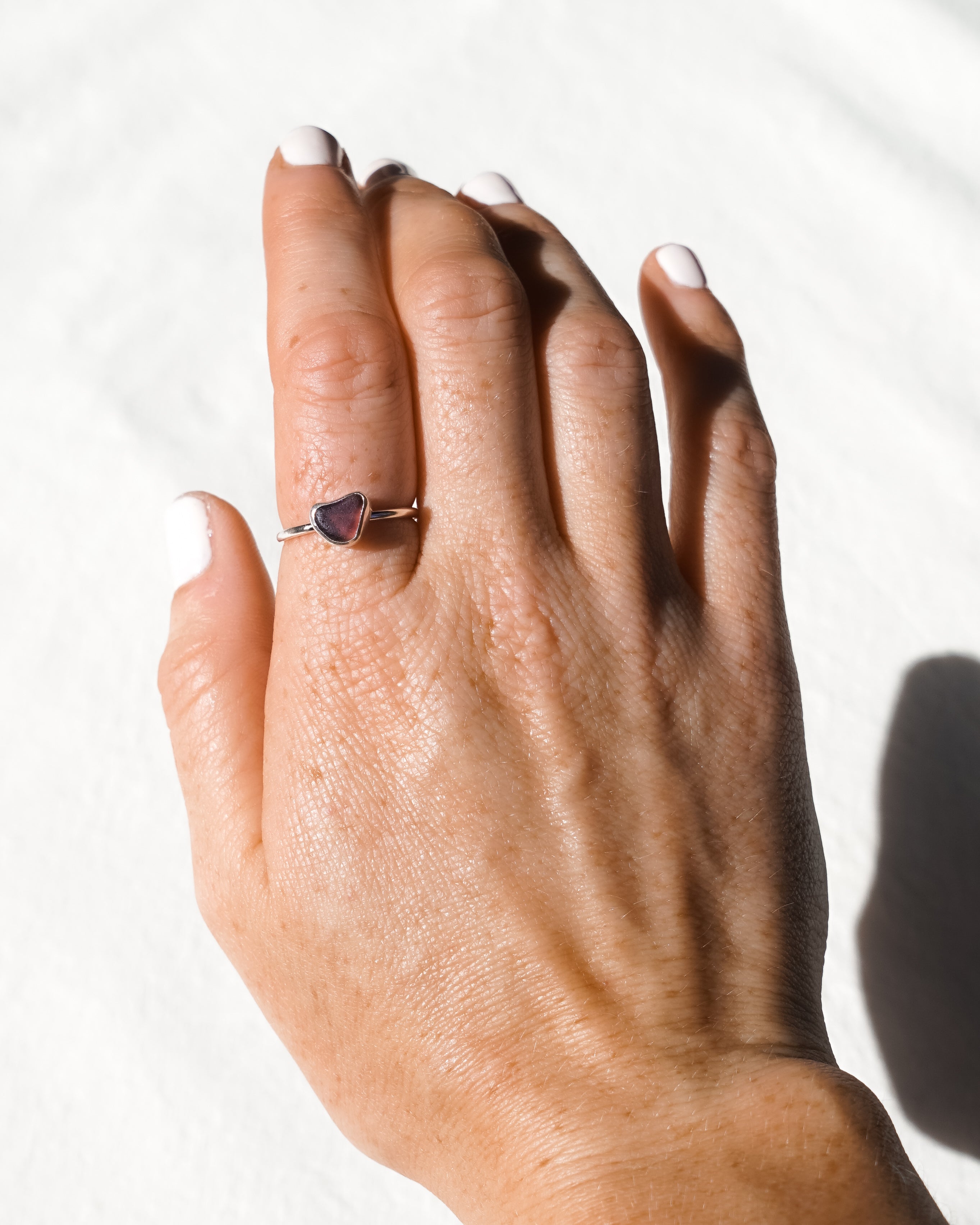 Pink/Purple Sea Glass Heart Ring - Handmade from 925 Sterling Silver