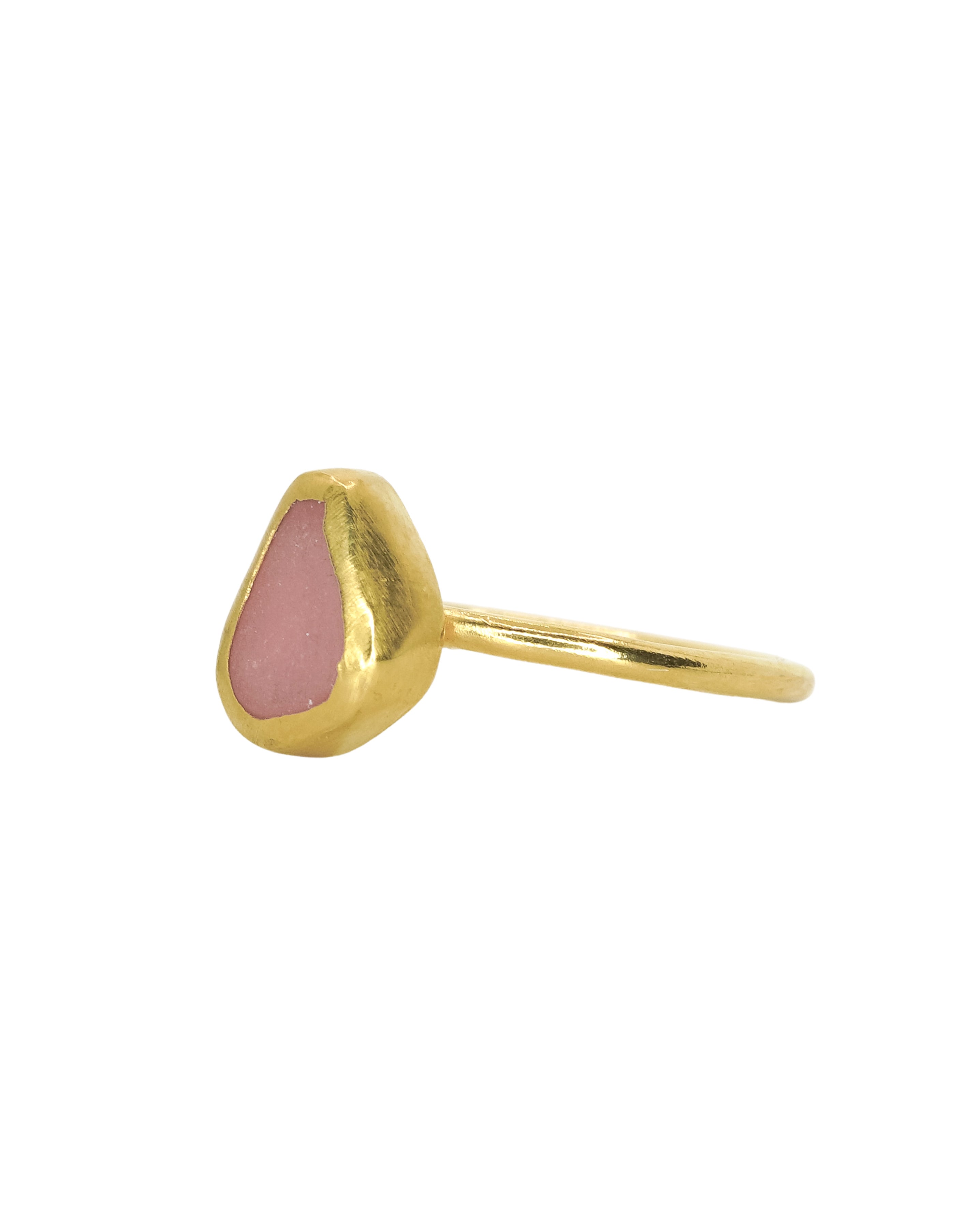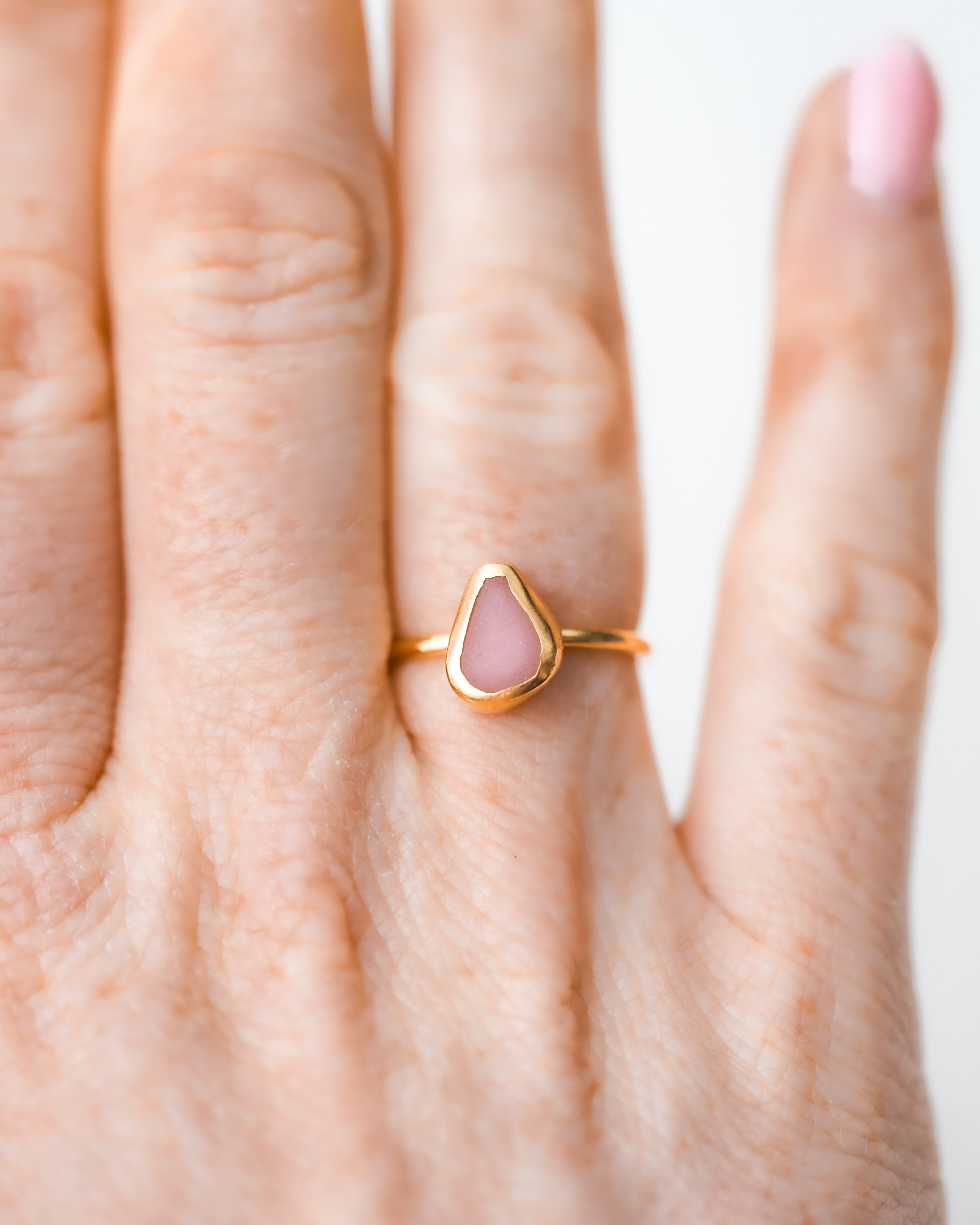 Pink Sea Glass Ring - Handmade from 925 Sterling Silver plated with a 10 micron thick and hard layer of 24K (Gold Vermeil)