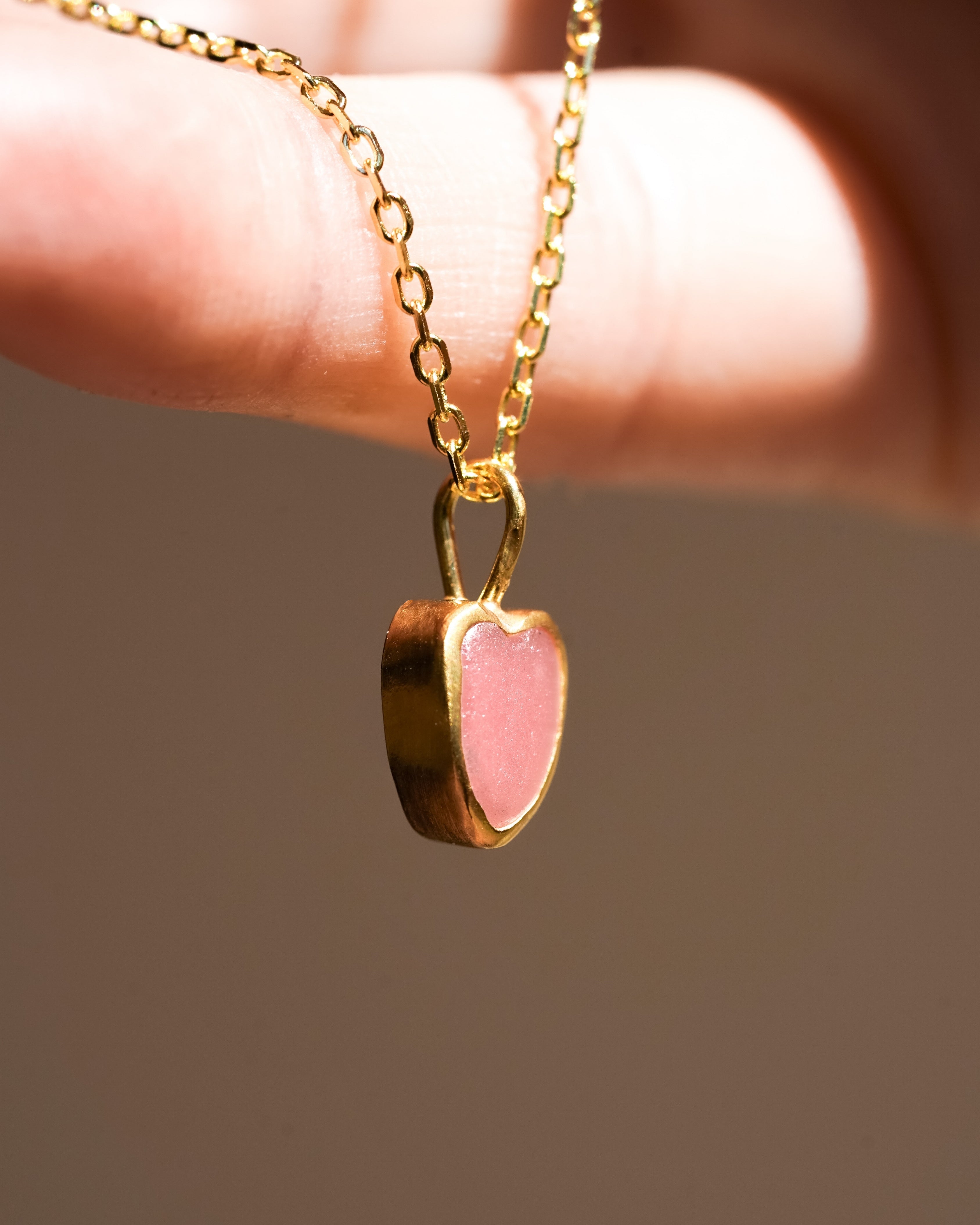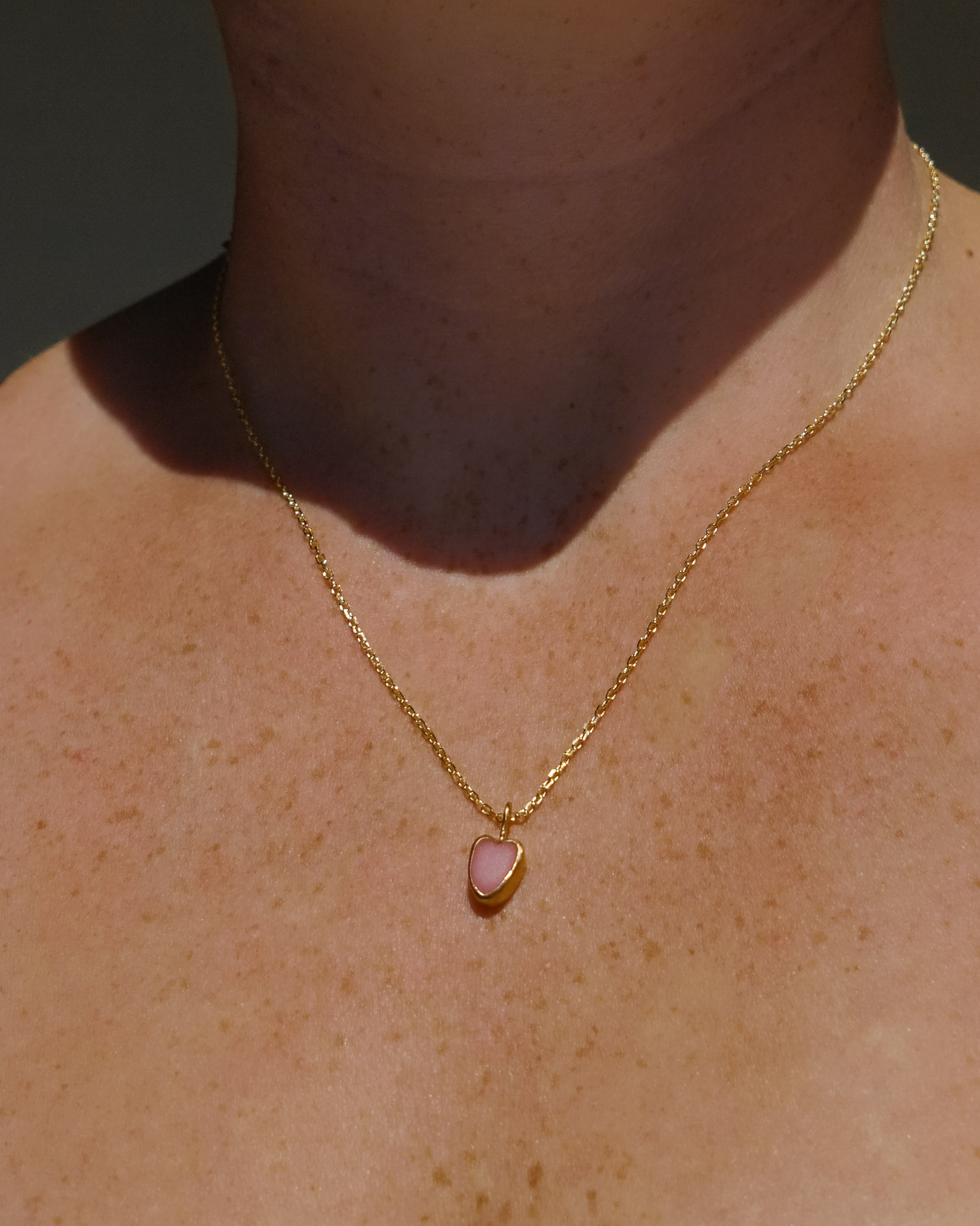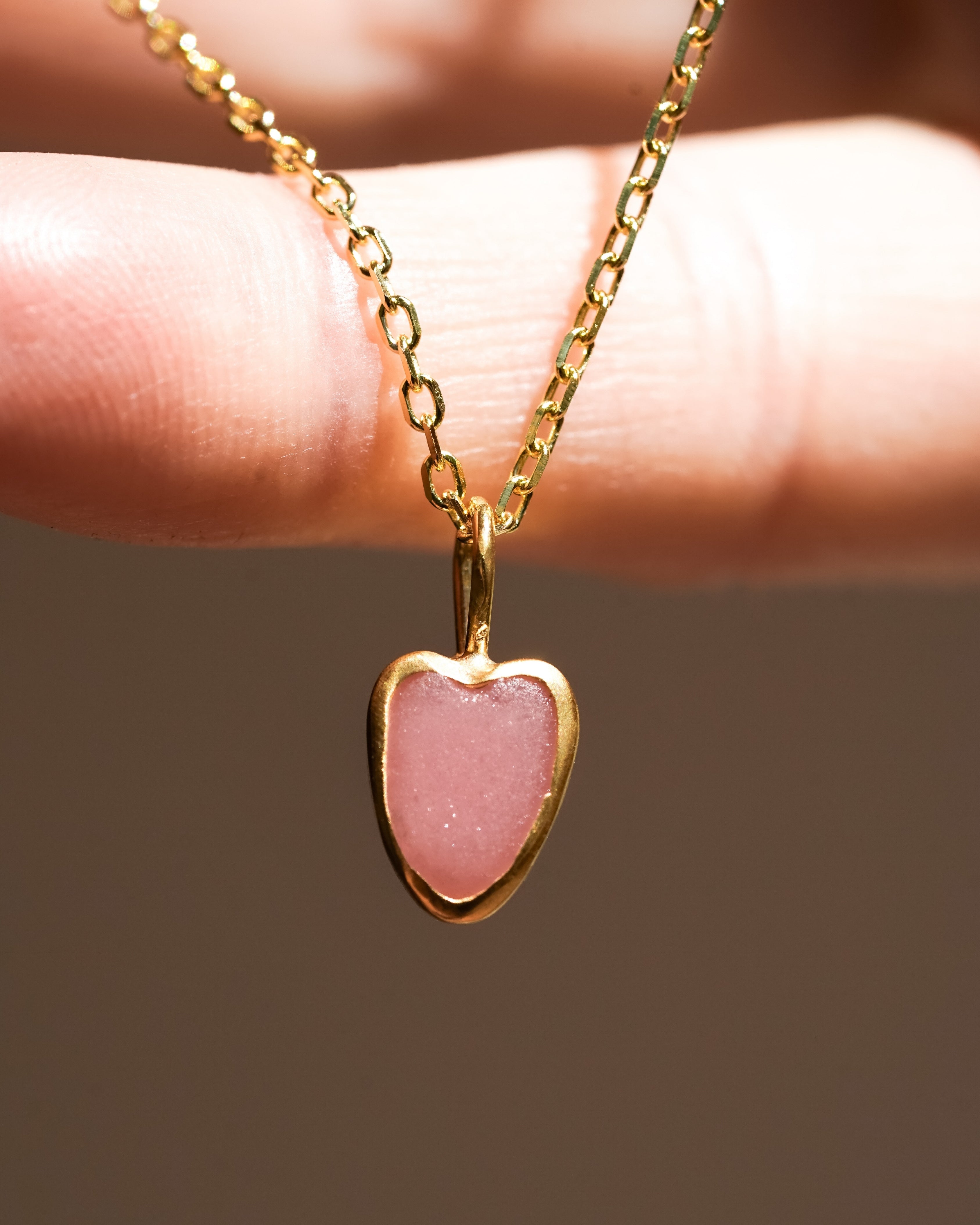 Pink Sea Glass Heart Necklace, Gold Vermeil