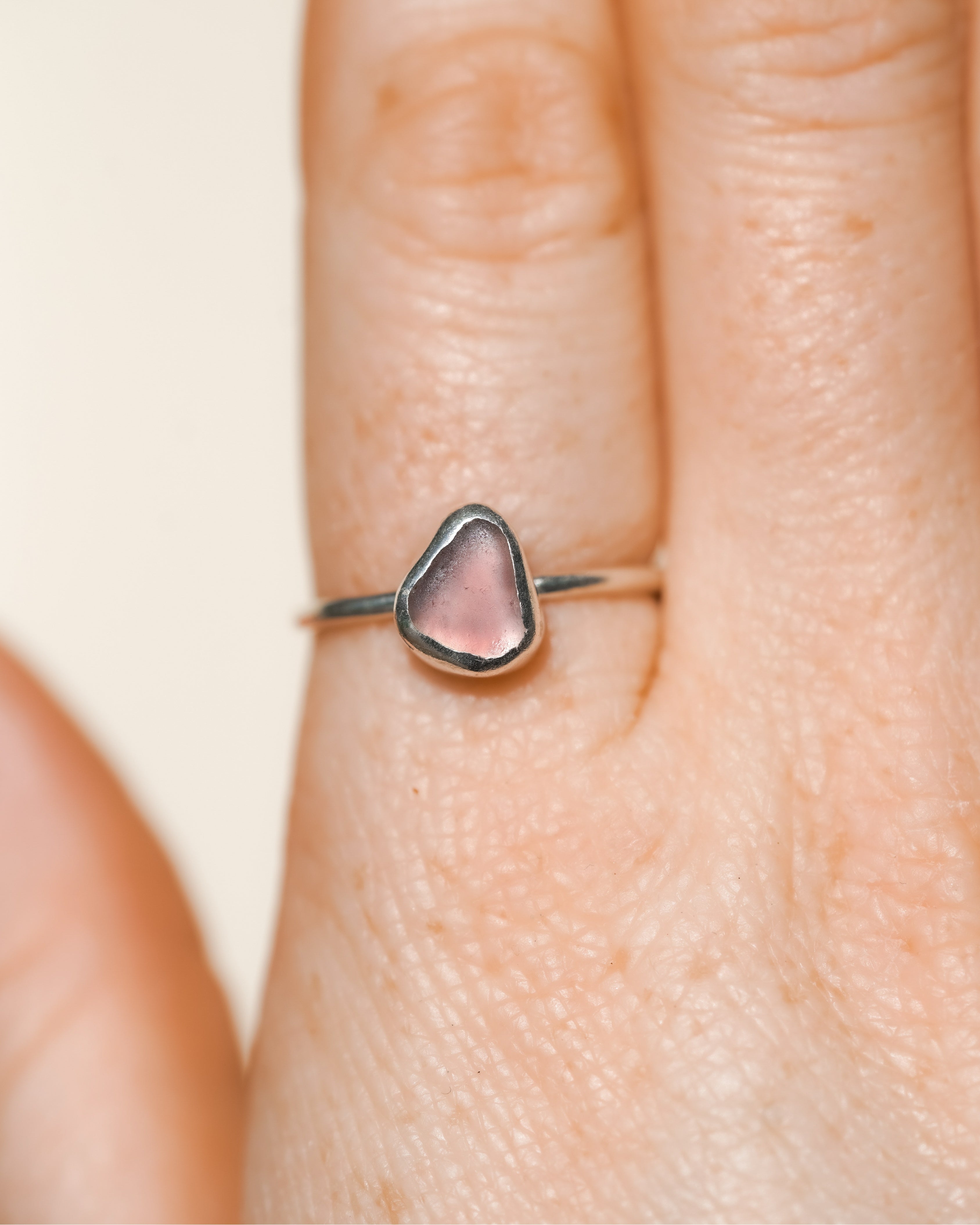 Pink Sea Glass Ring - Handmade from 925 Sterling Silver