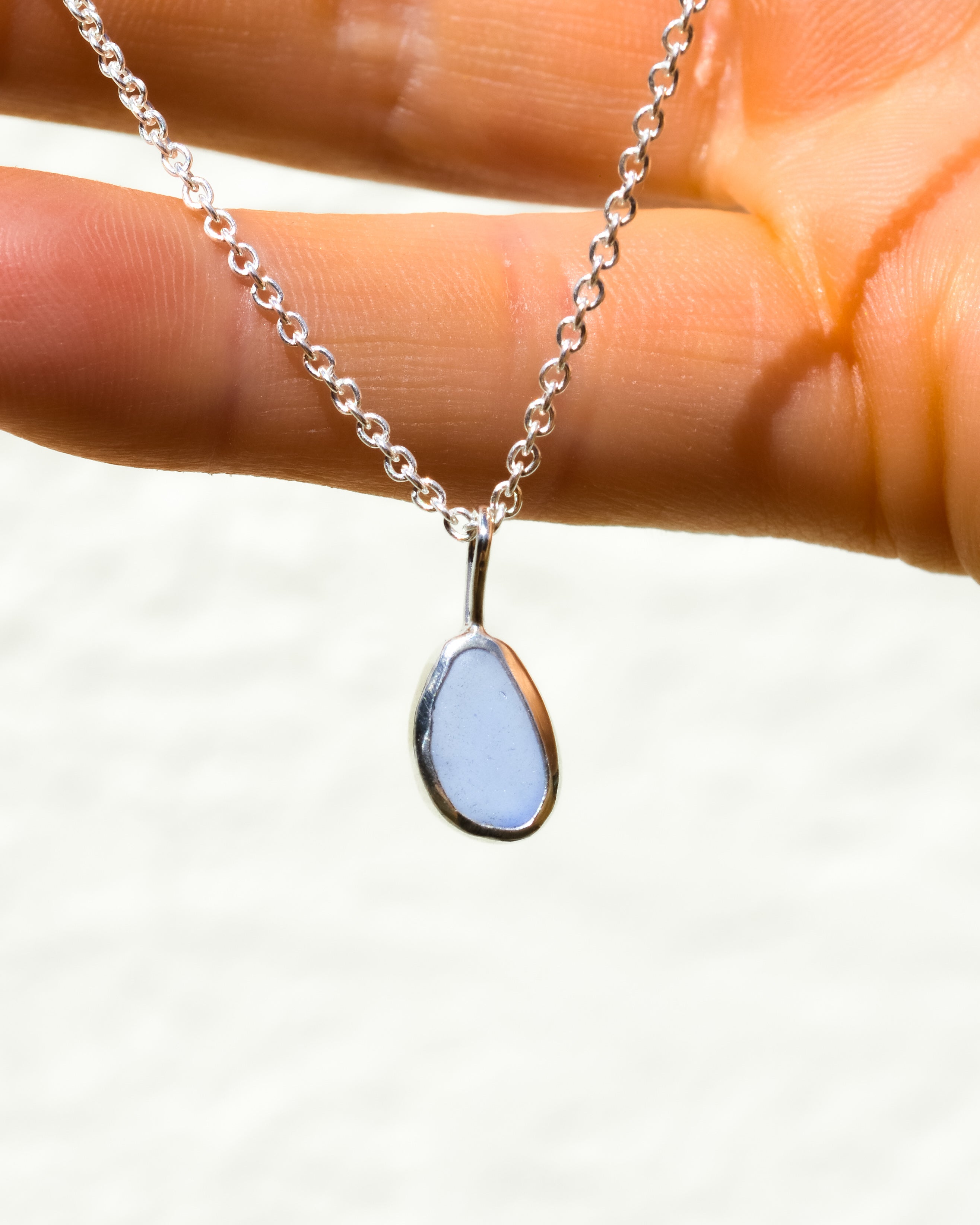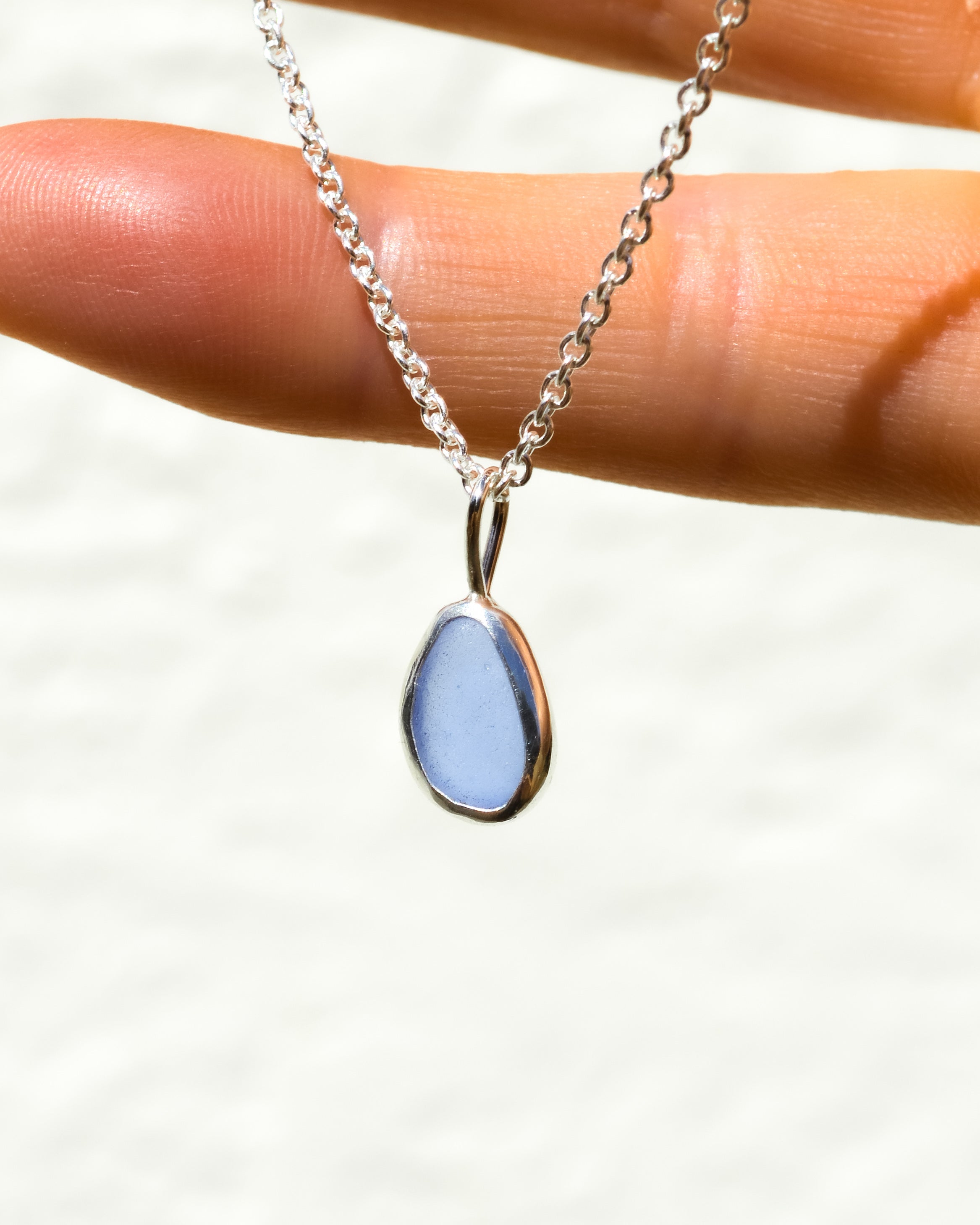 Sea Glass Jewellery (Closed Back Designs) - Closed back sea glass pieces should be kept out of water whenever possible. As the glass is transparent, moisture may affect the colouring due to the silver underneath, mainly the lighter shades. To help preserve their beauty, we recommend removing them before showering or swimming.
