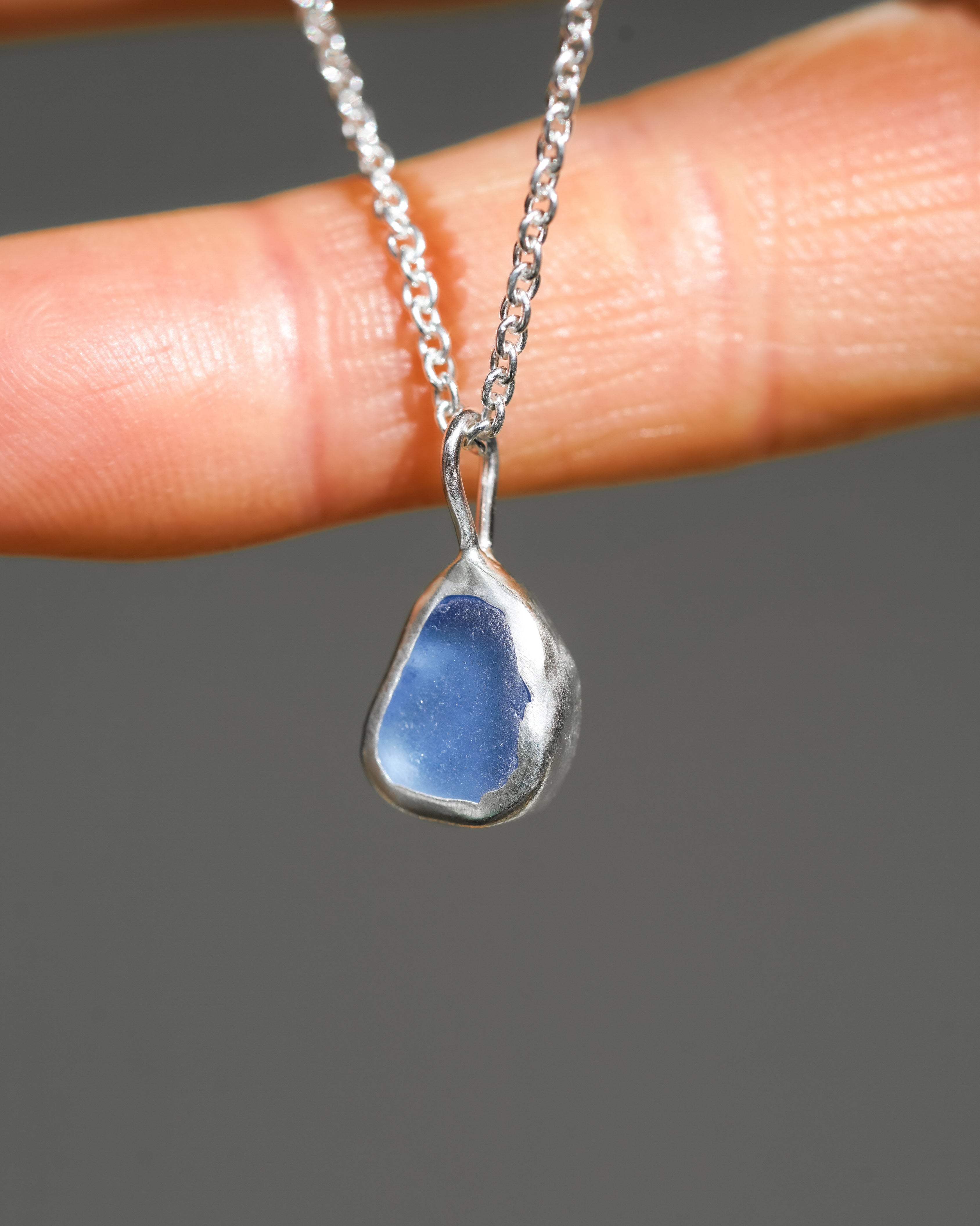 Avoid wearing sea glass jewellery in water as much as possible. It is transparent which in some cases may affect the colouring of the glass due to the silver tarnishing underneath, especially the lighter colours. Click here to find out more