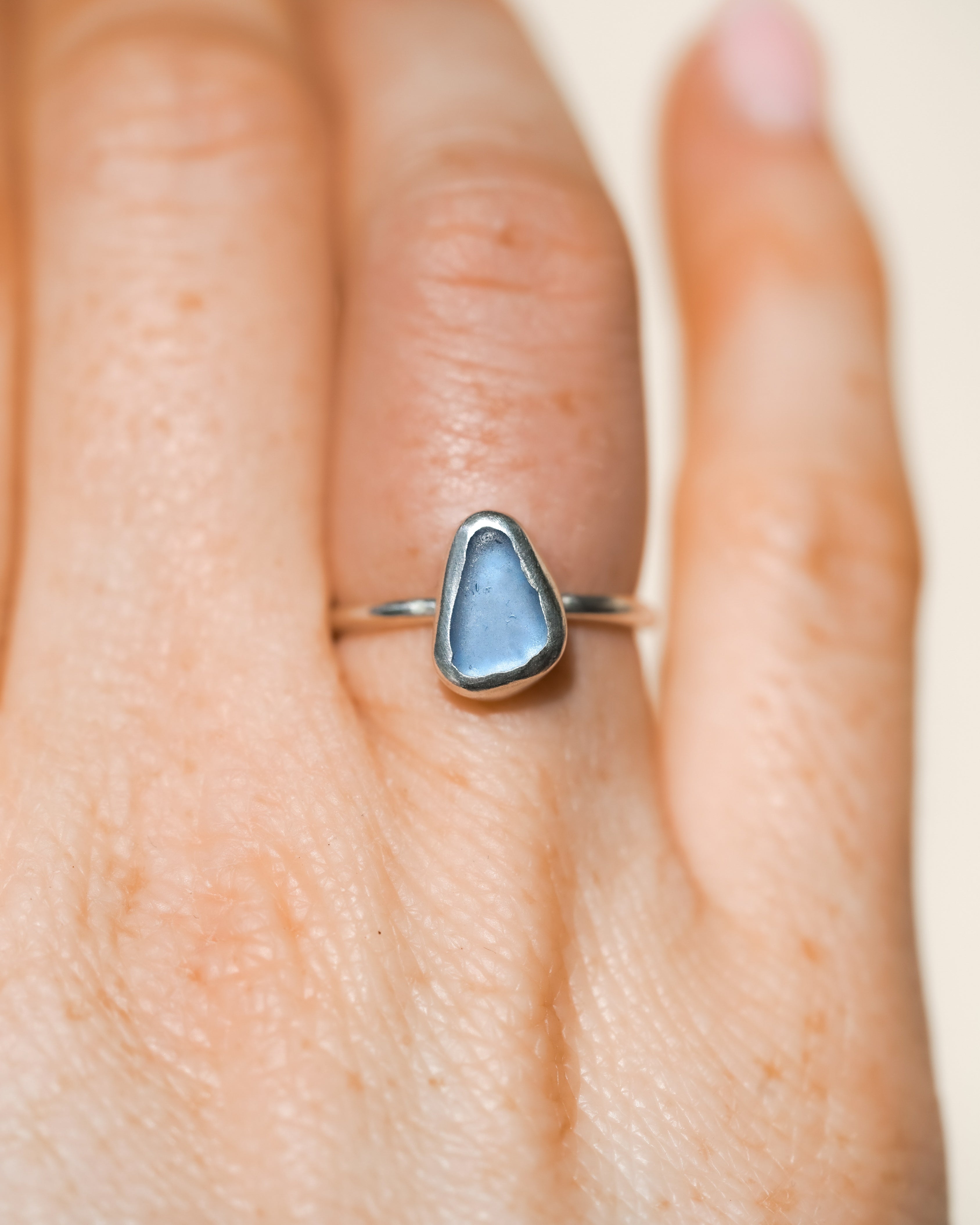 Sea Glass Jewellery (Closed Back Designs) - Closed back sea glass pieces should be kept out of water whenever possible. As the glass is transparent, moisture may affect the colouring due to the silver underneath, mainly the lighter shades. To help preserve their beauty, we recommend removing them before showering or swimming.