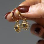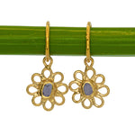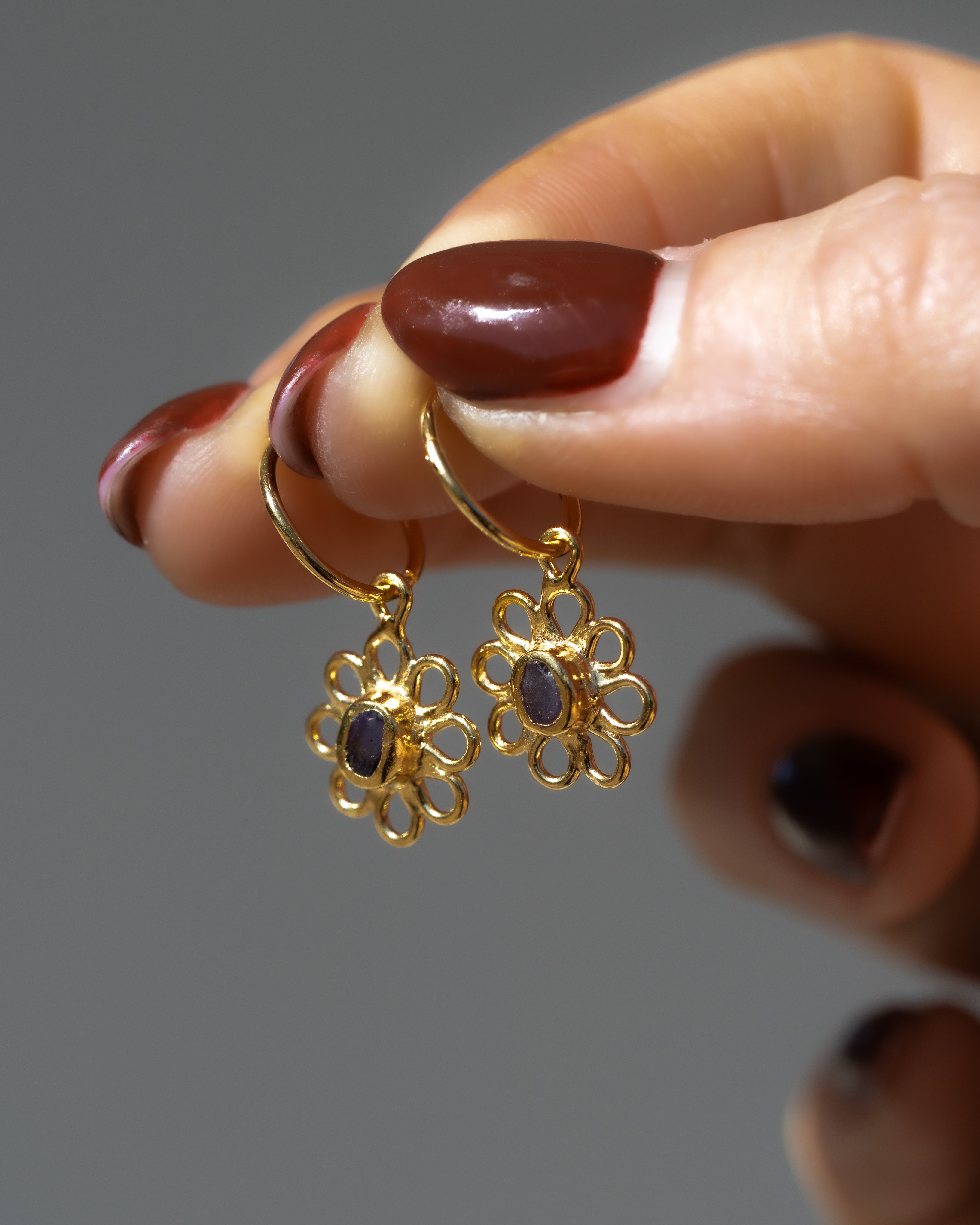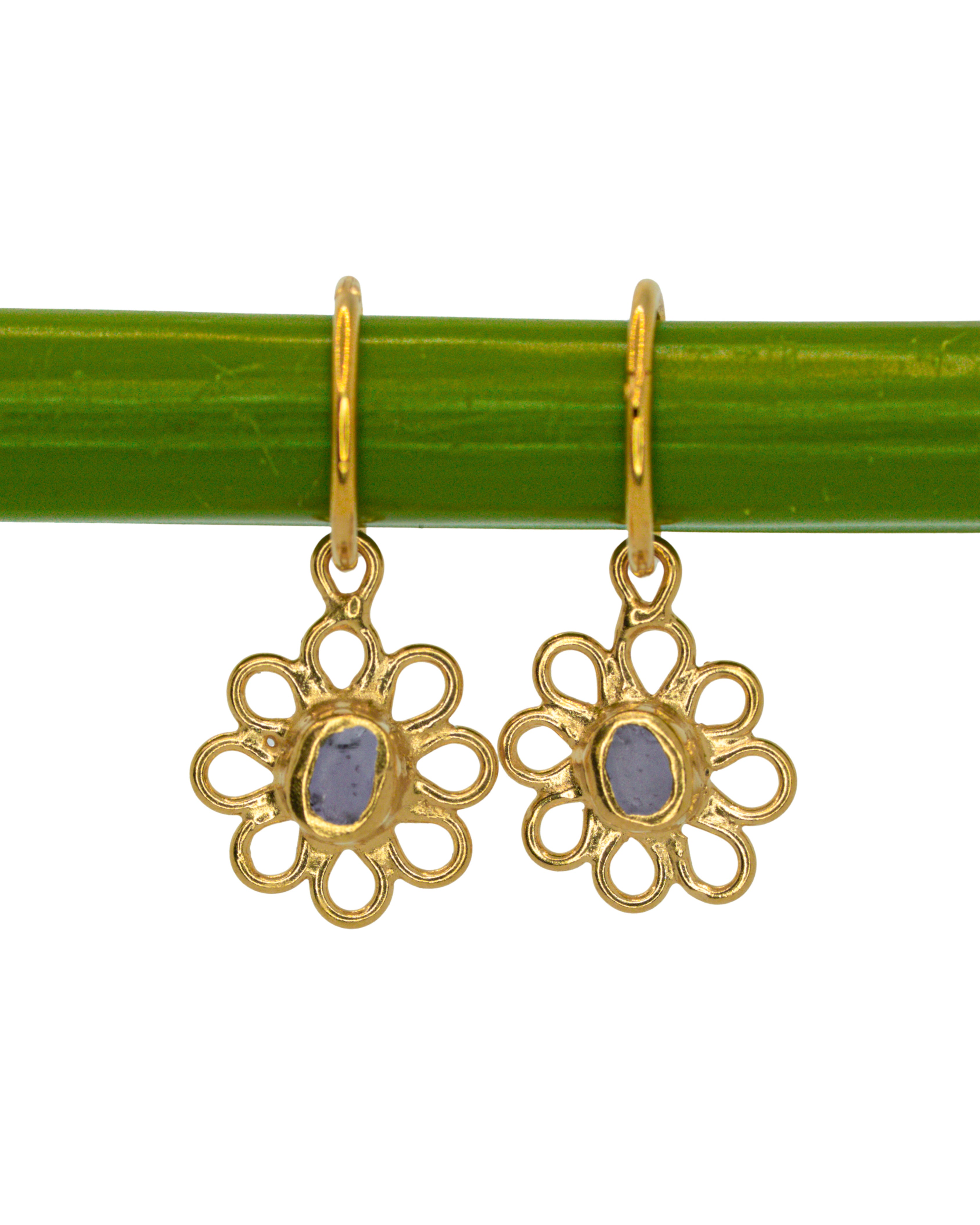 Purple Sea Glass Flower Hoops - Gold Vermeil
